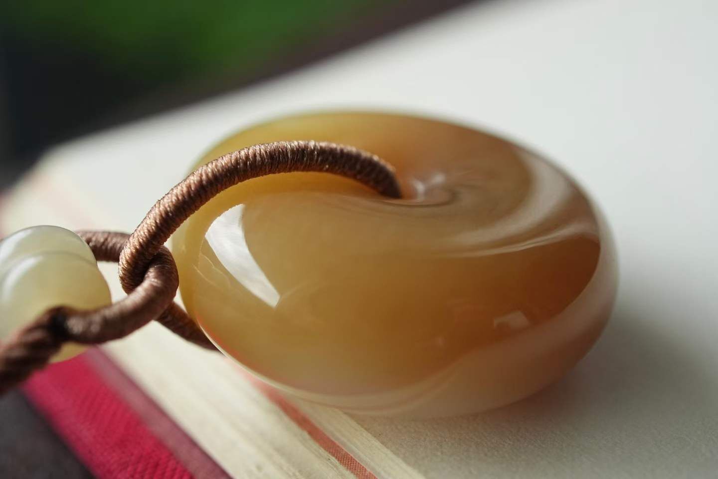 • 和田玉老礦糖白平安扣掛件 (26mm直徑),天然和田玉軟玉