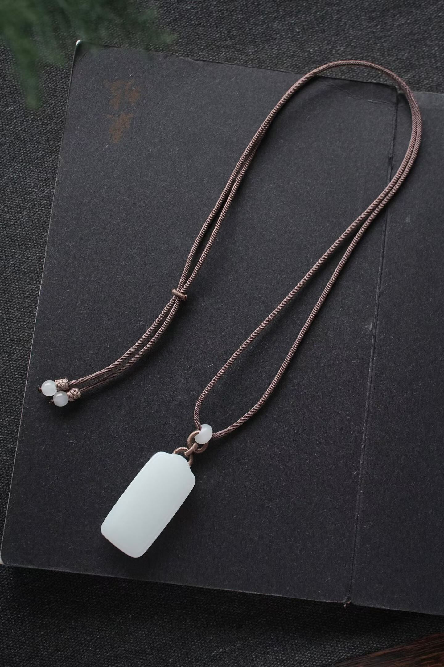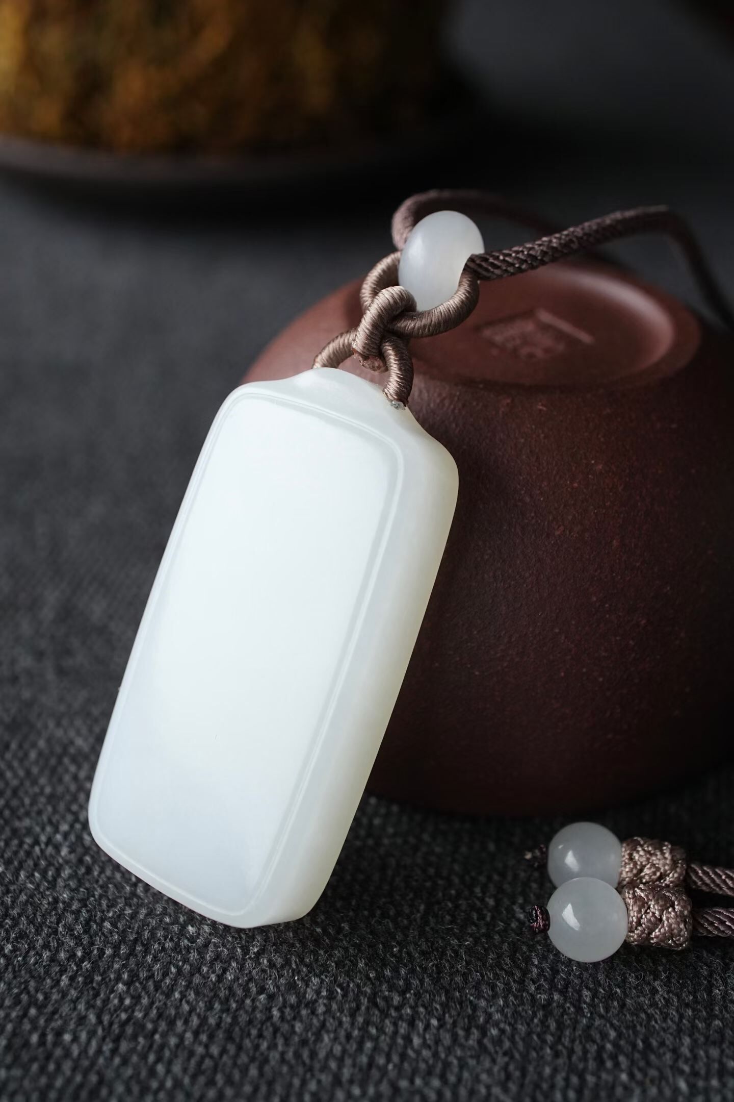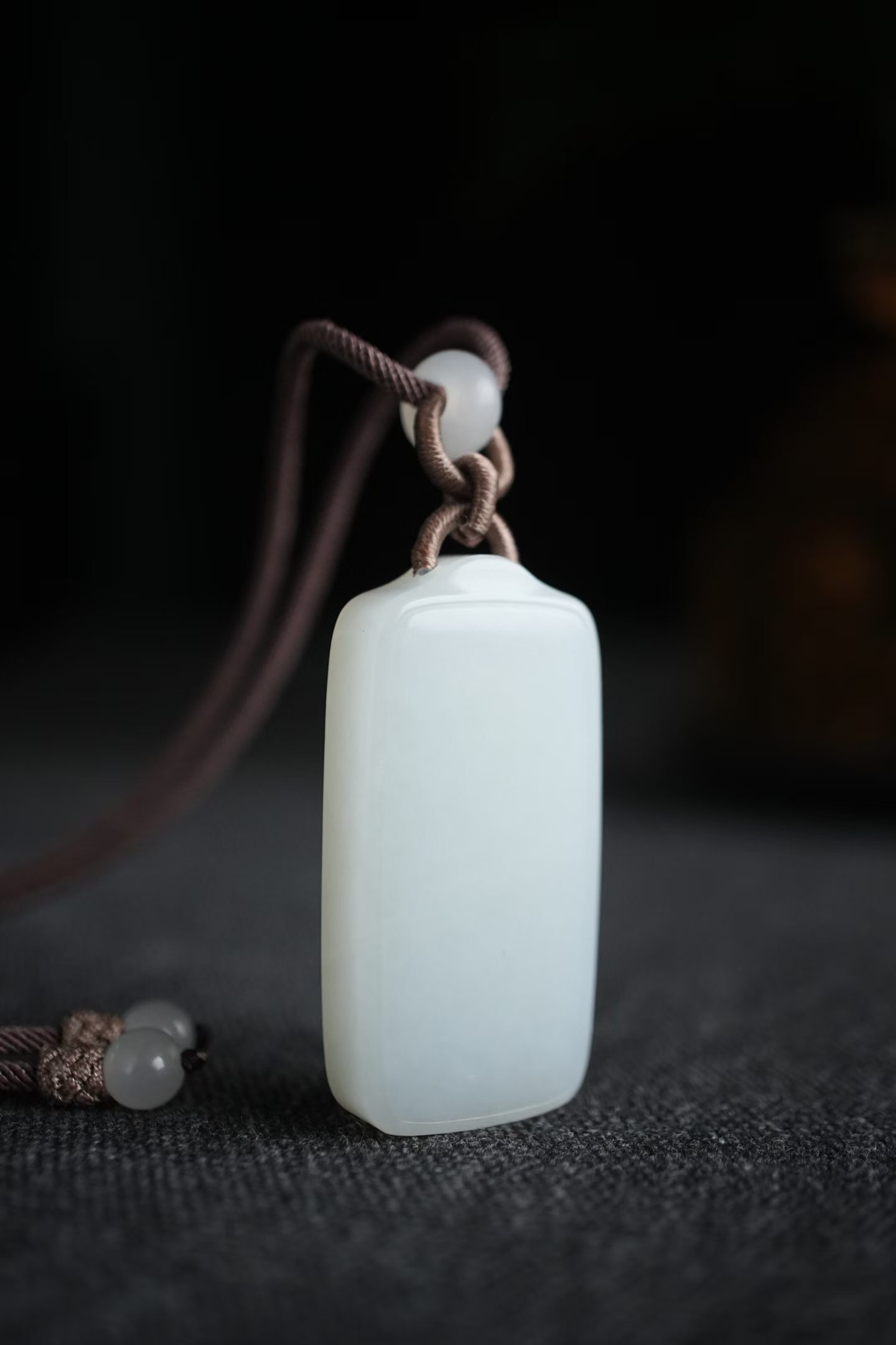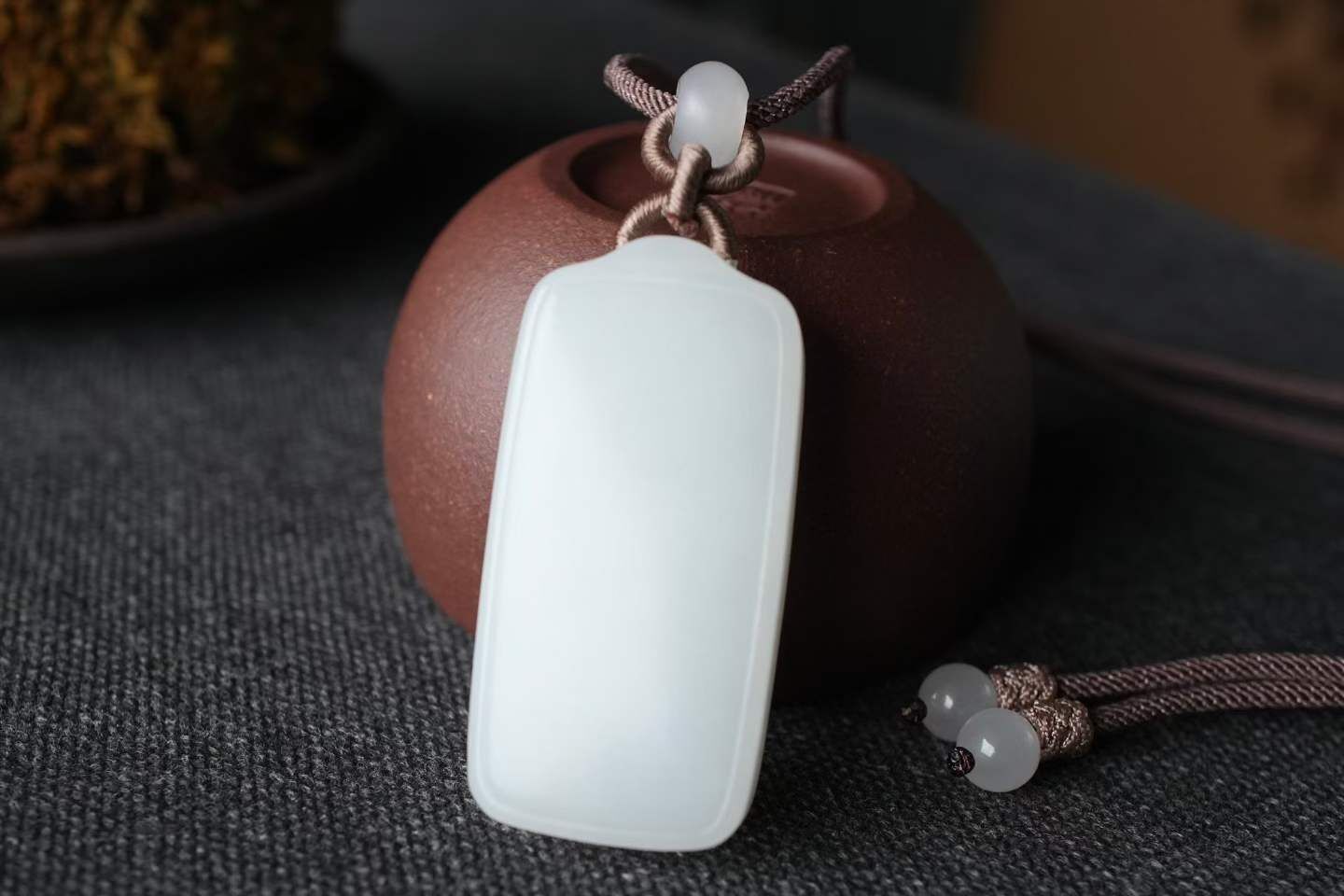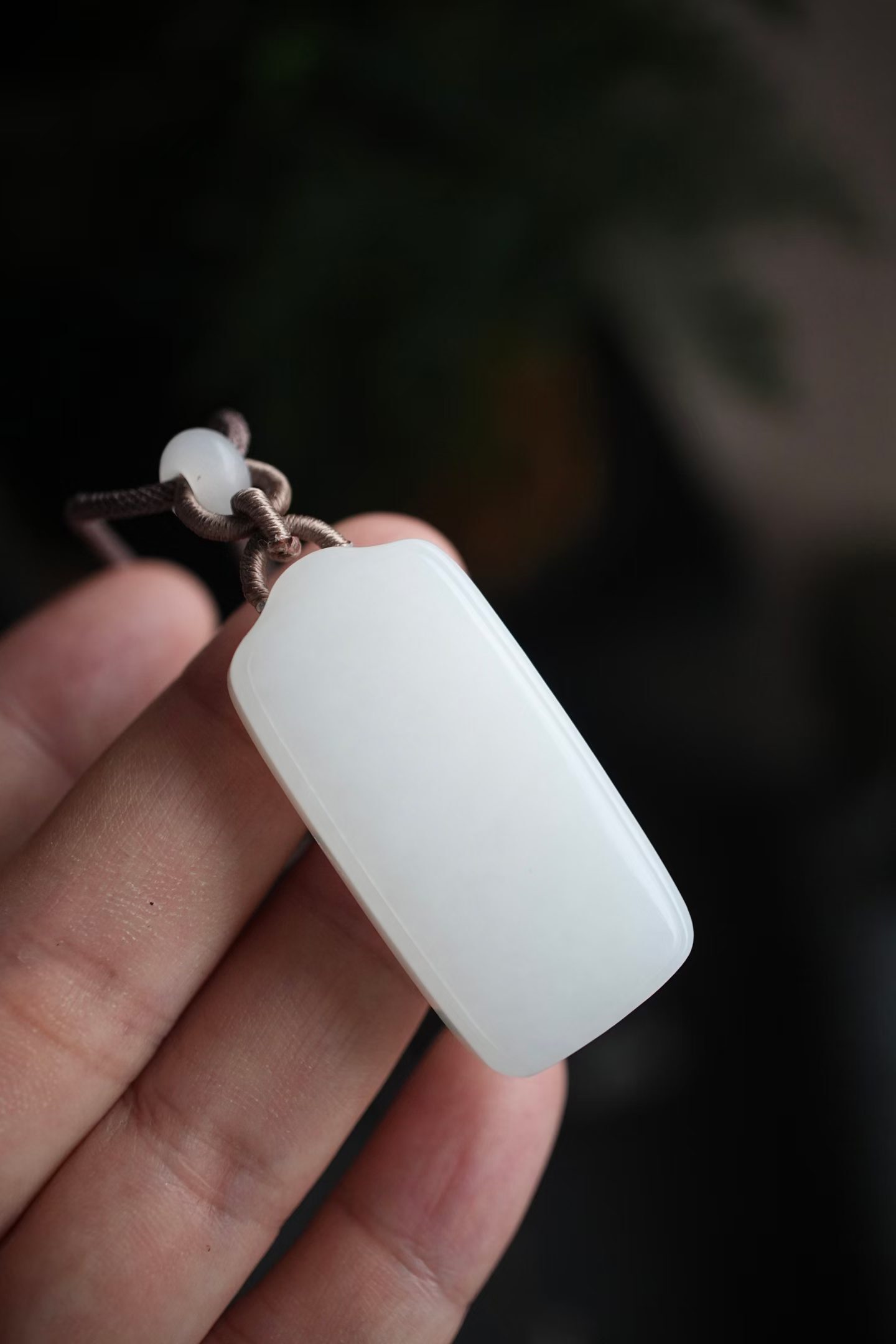 • 和田玉白玉平安無事牌掛件,天然和田玉軟玉