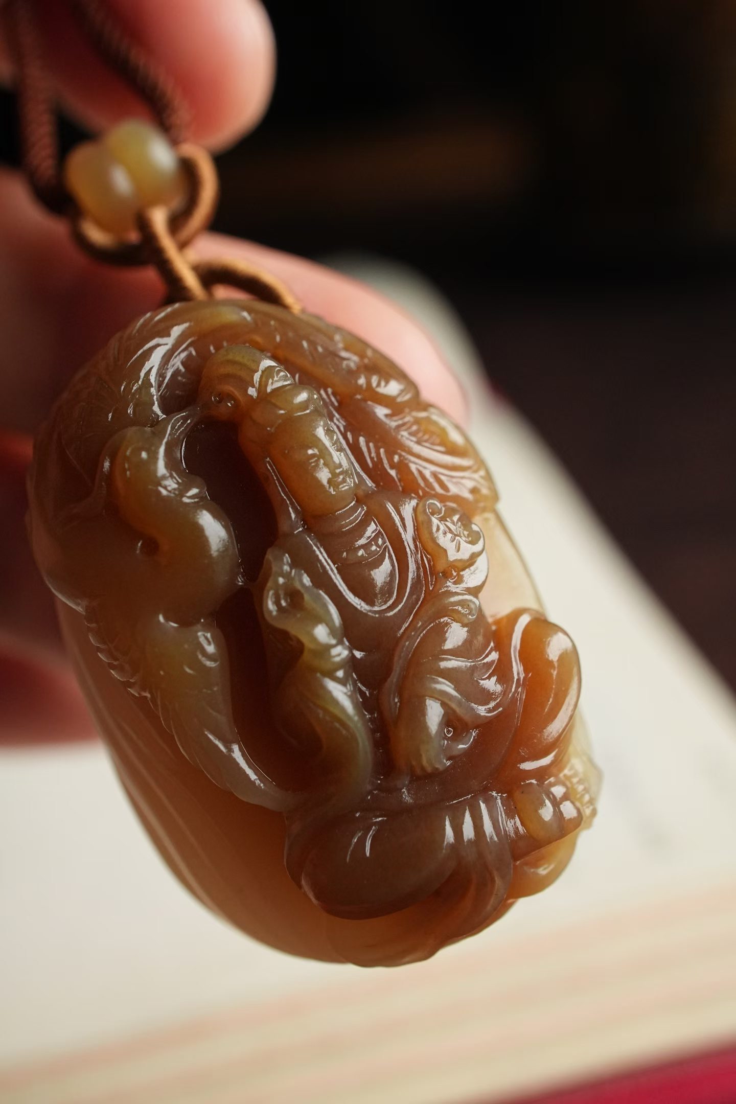 • 和田玉糖白“鳳鳴觀音”掛件,天然和田玉軟玉