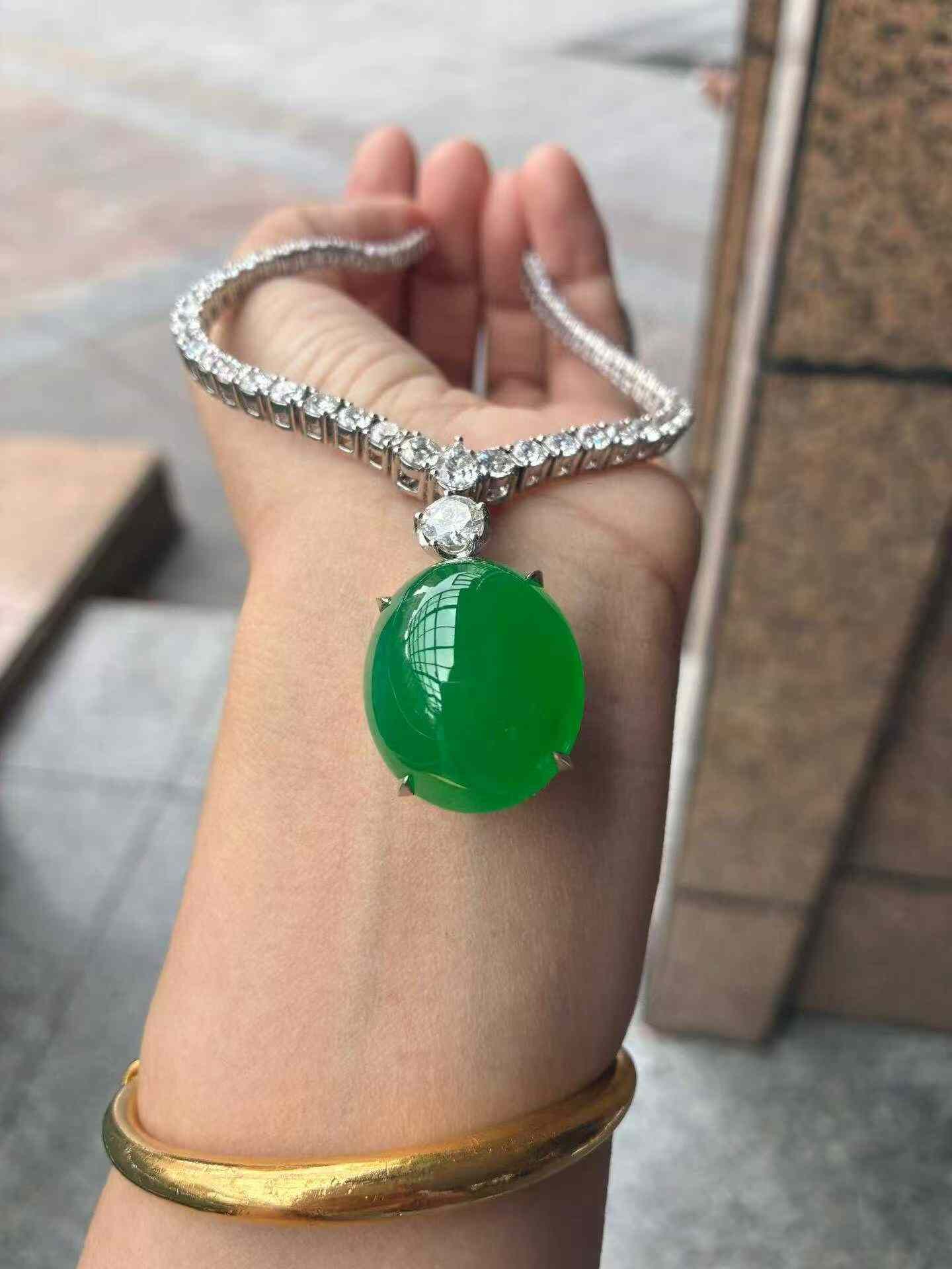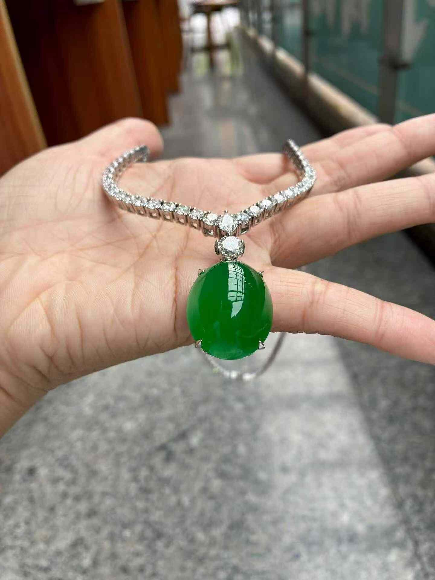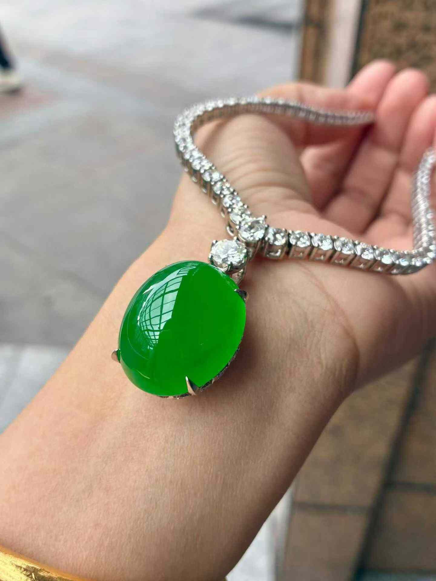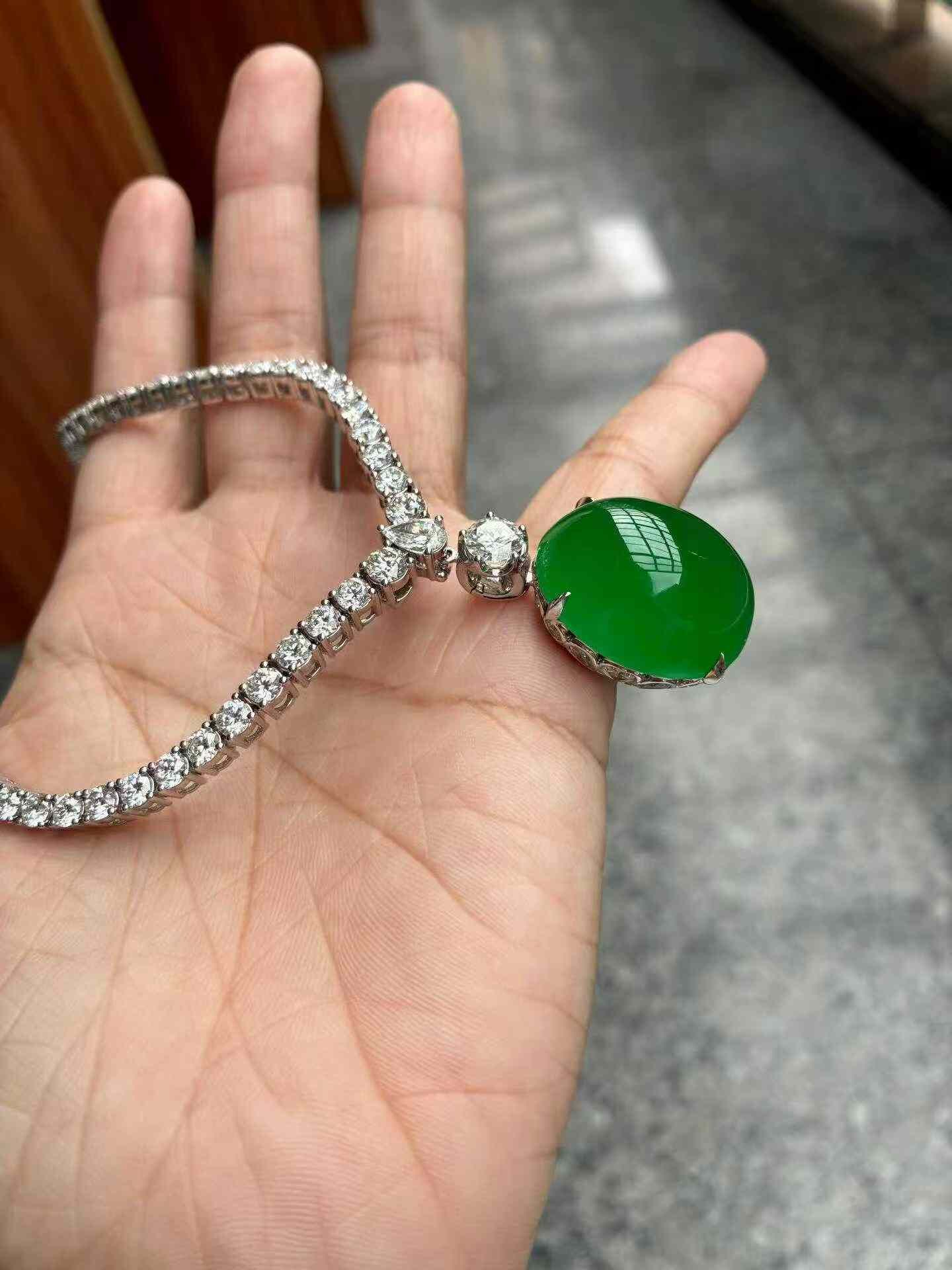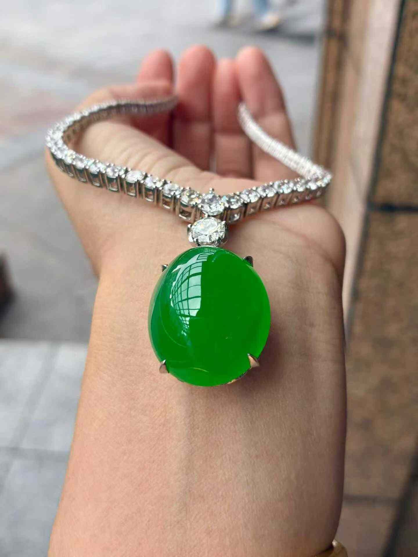 414536 翡翠高冰辣綠鴿子蛋套鏈