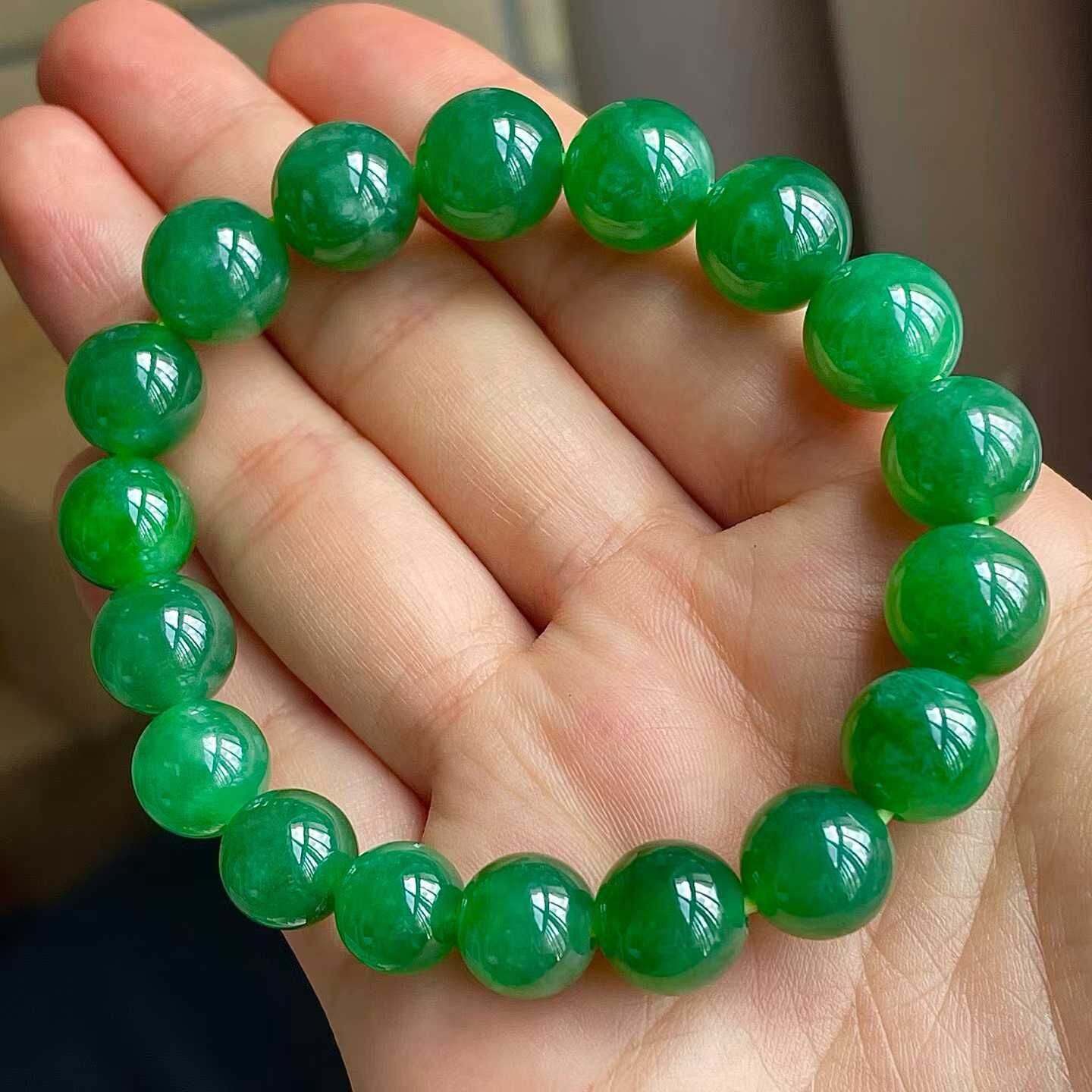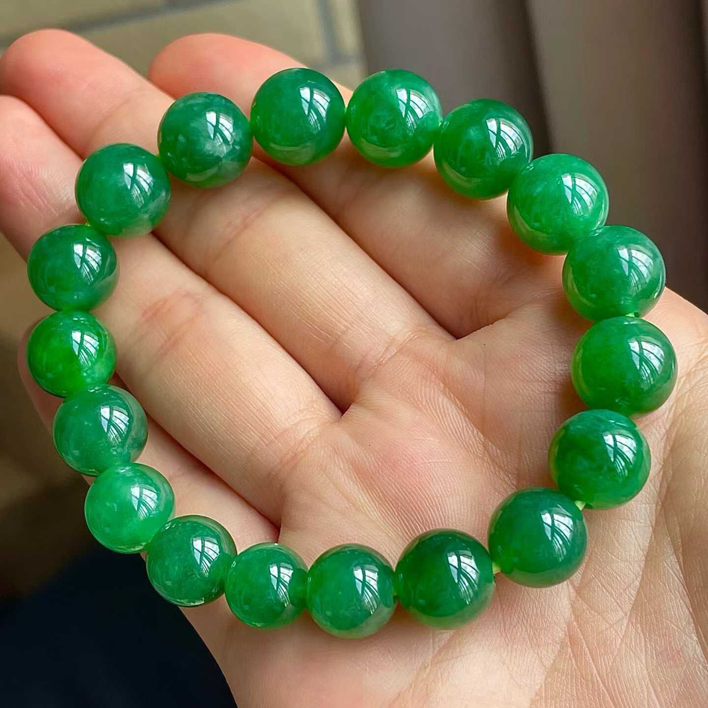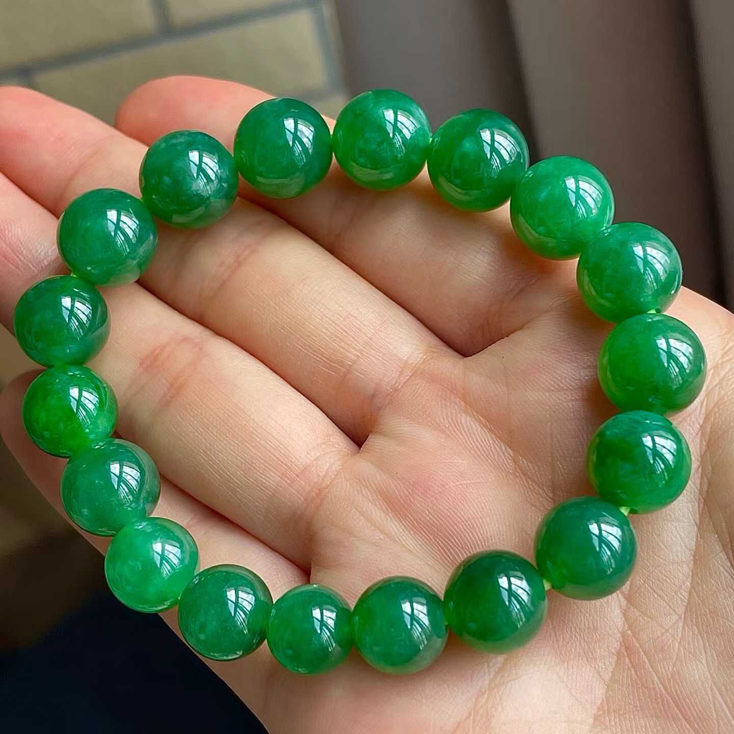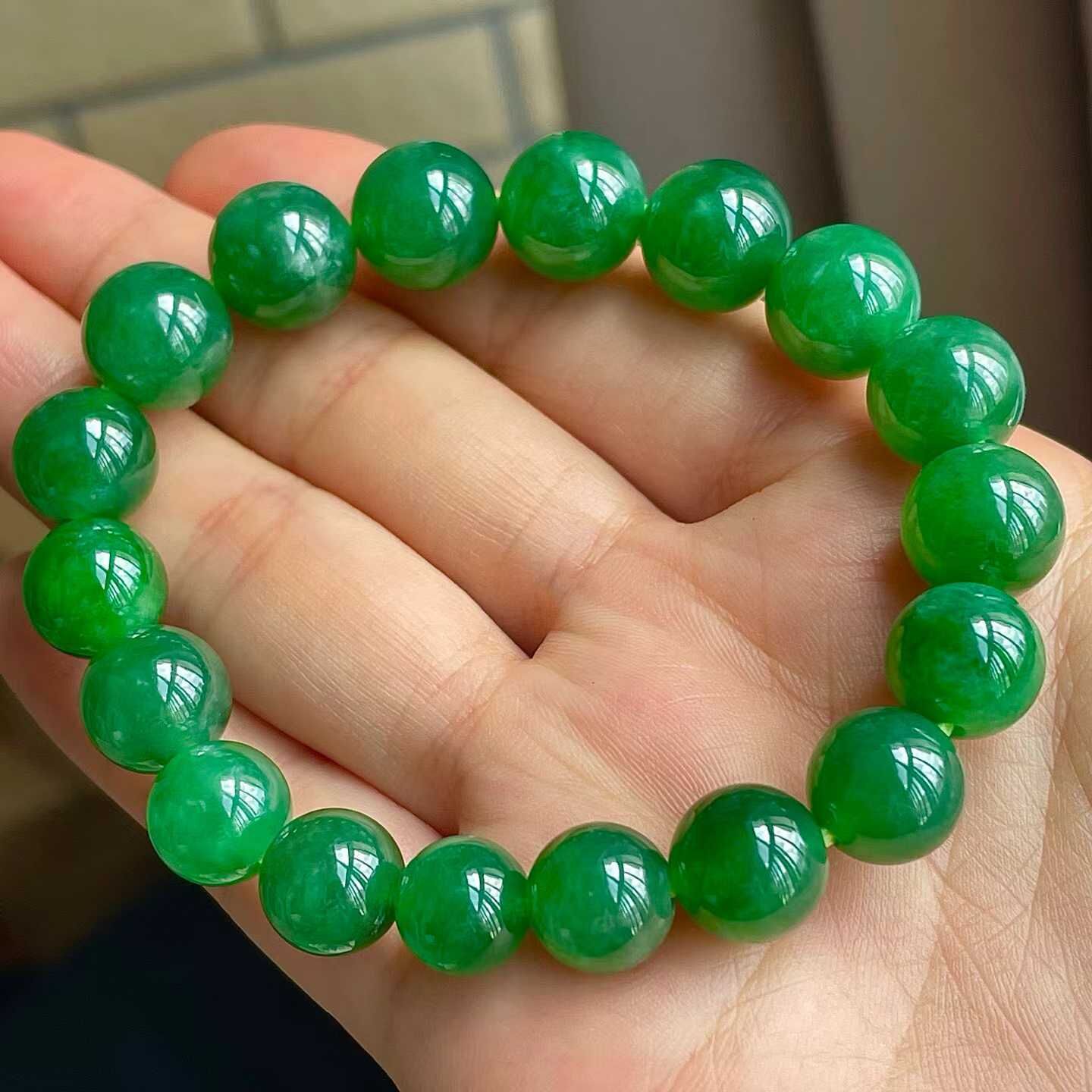 • 翡翠冰辣綠手串 (10mm直徑),天然翡翠A玉, 緬甸玉, Jade, Jadeite