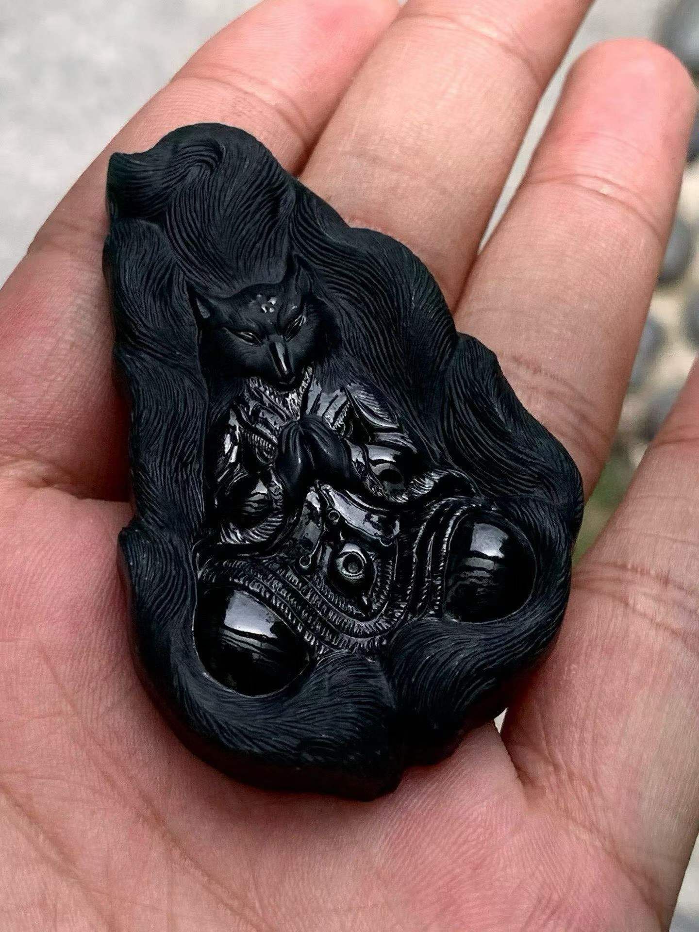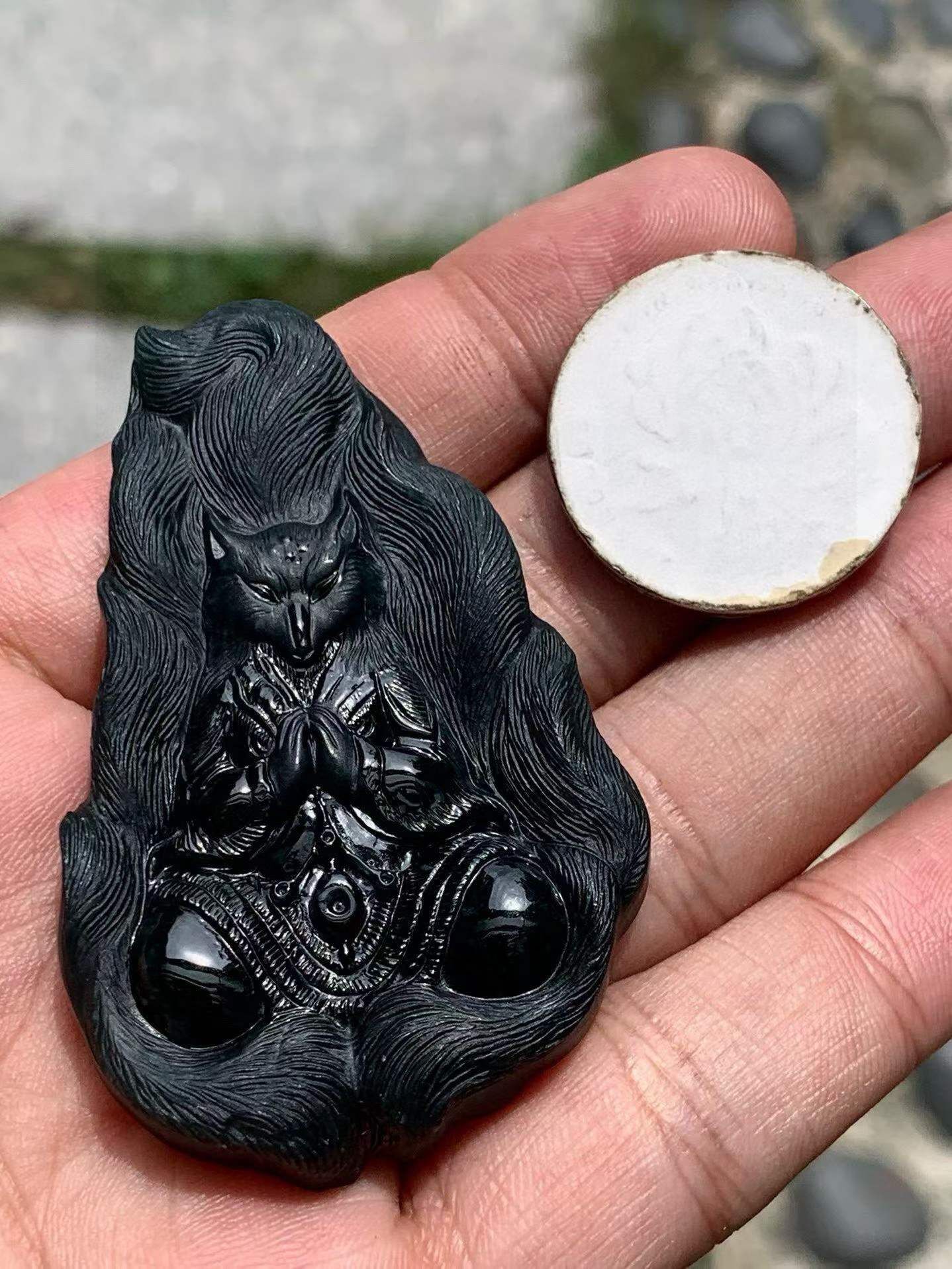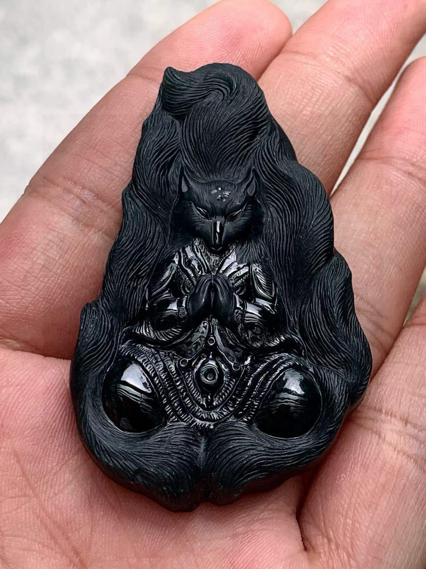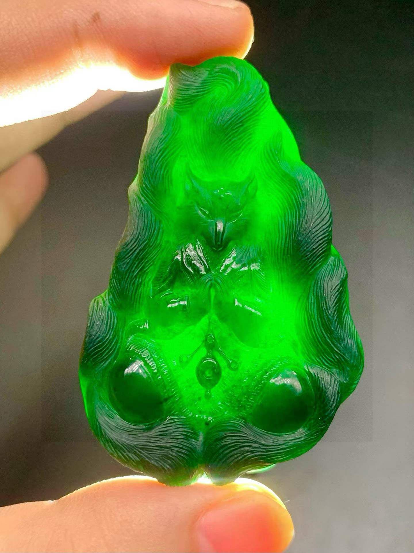 • 翡翠墨翠九尾狐仙,天然翡翠A玉, 緬甸玉, Jade, Jadeite