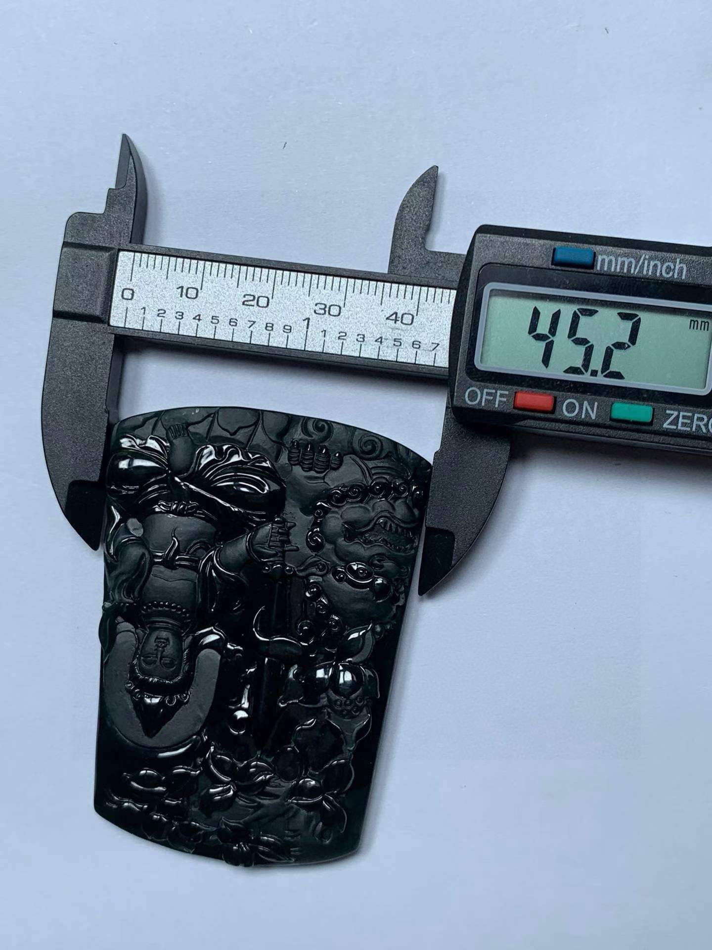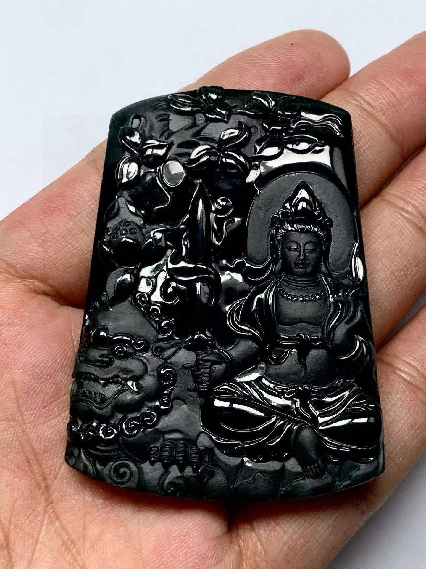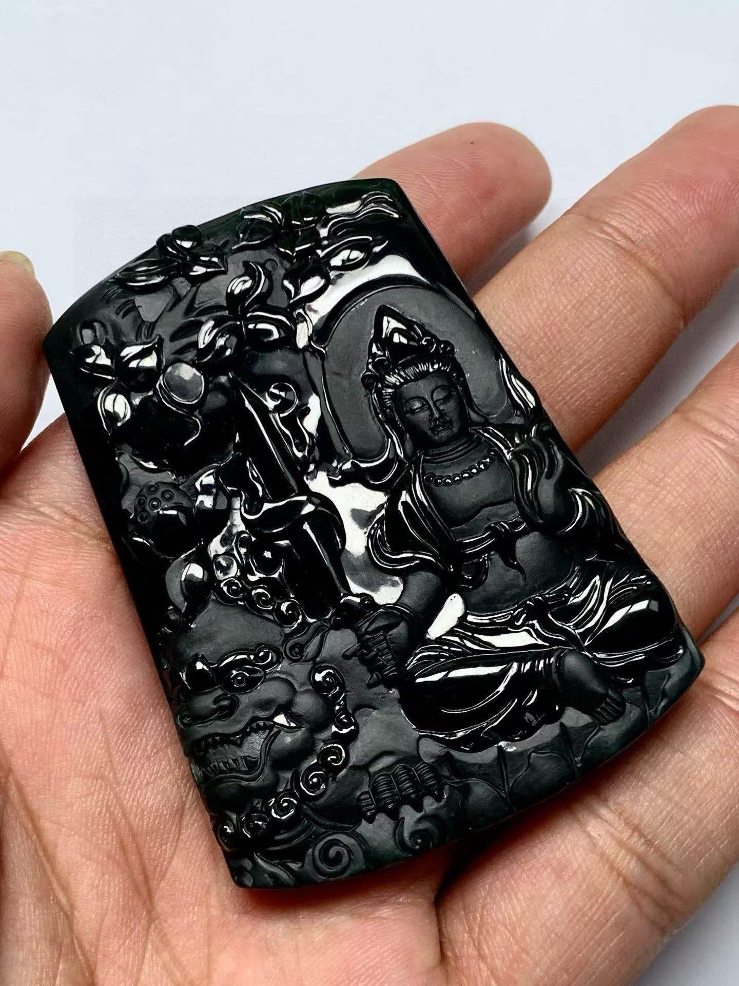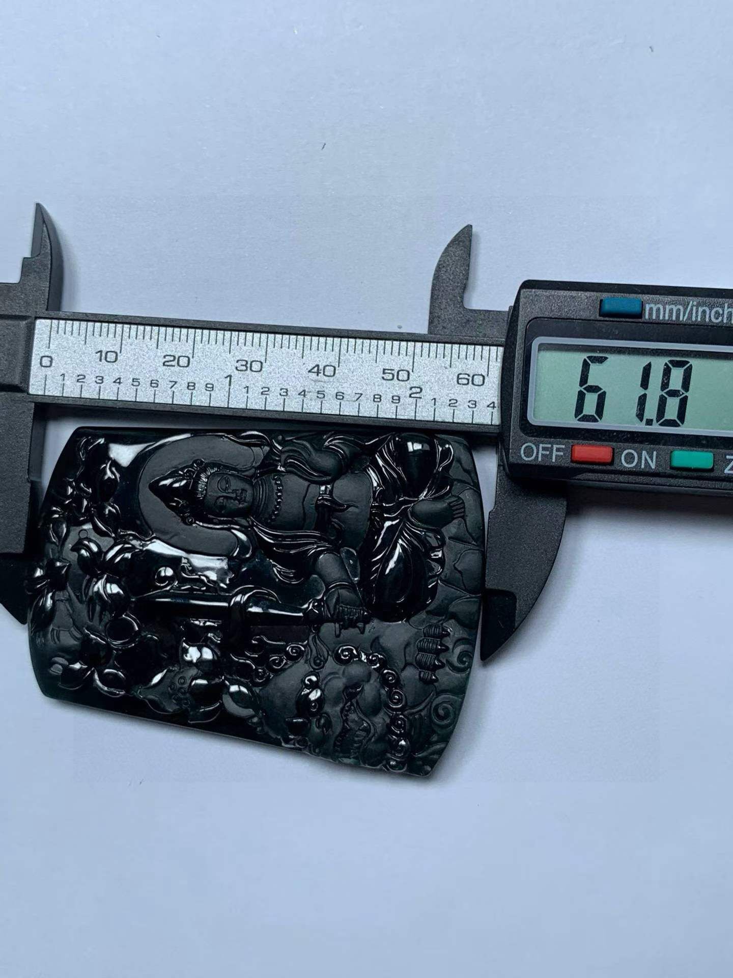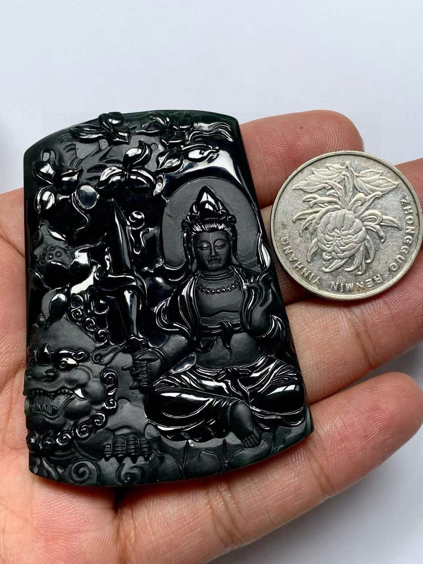 • 翡翠墨翠文殊菩薩,天然翡翠A玉, 緬甸玉, Jade, Jadeite
