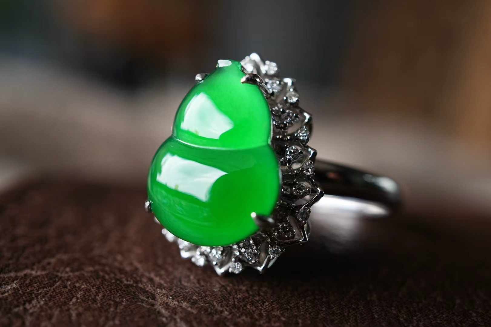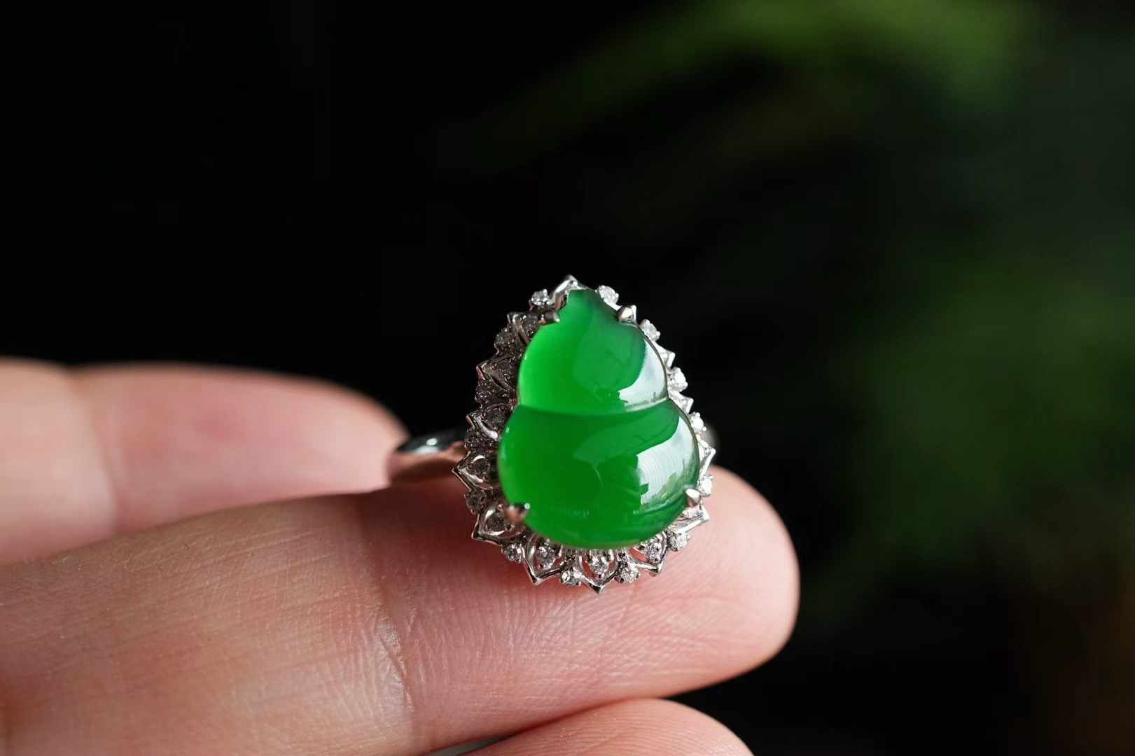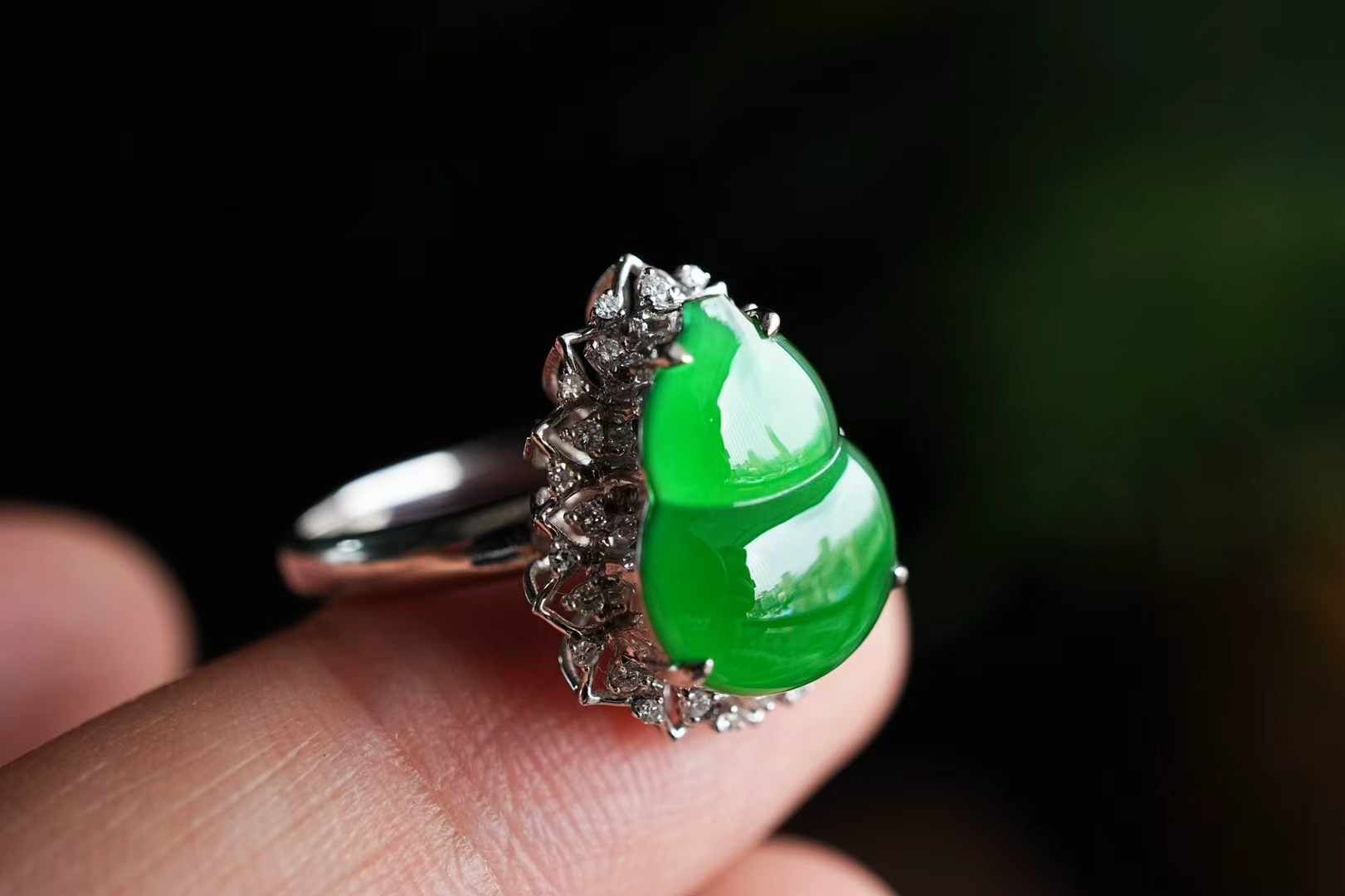 • 翡翠冰辣陽綠葫蘆戒指,天然翡翠A玉, 緬甸玉, Jade, Jadeite