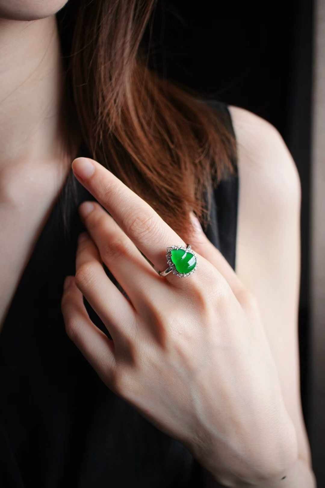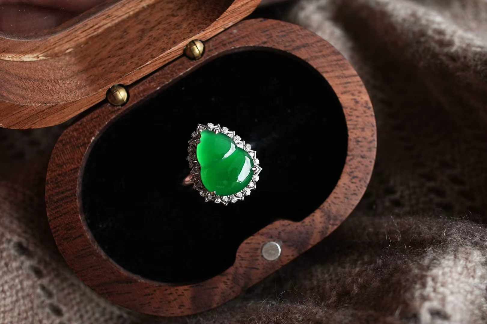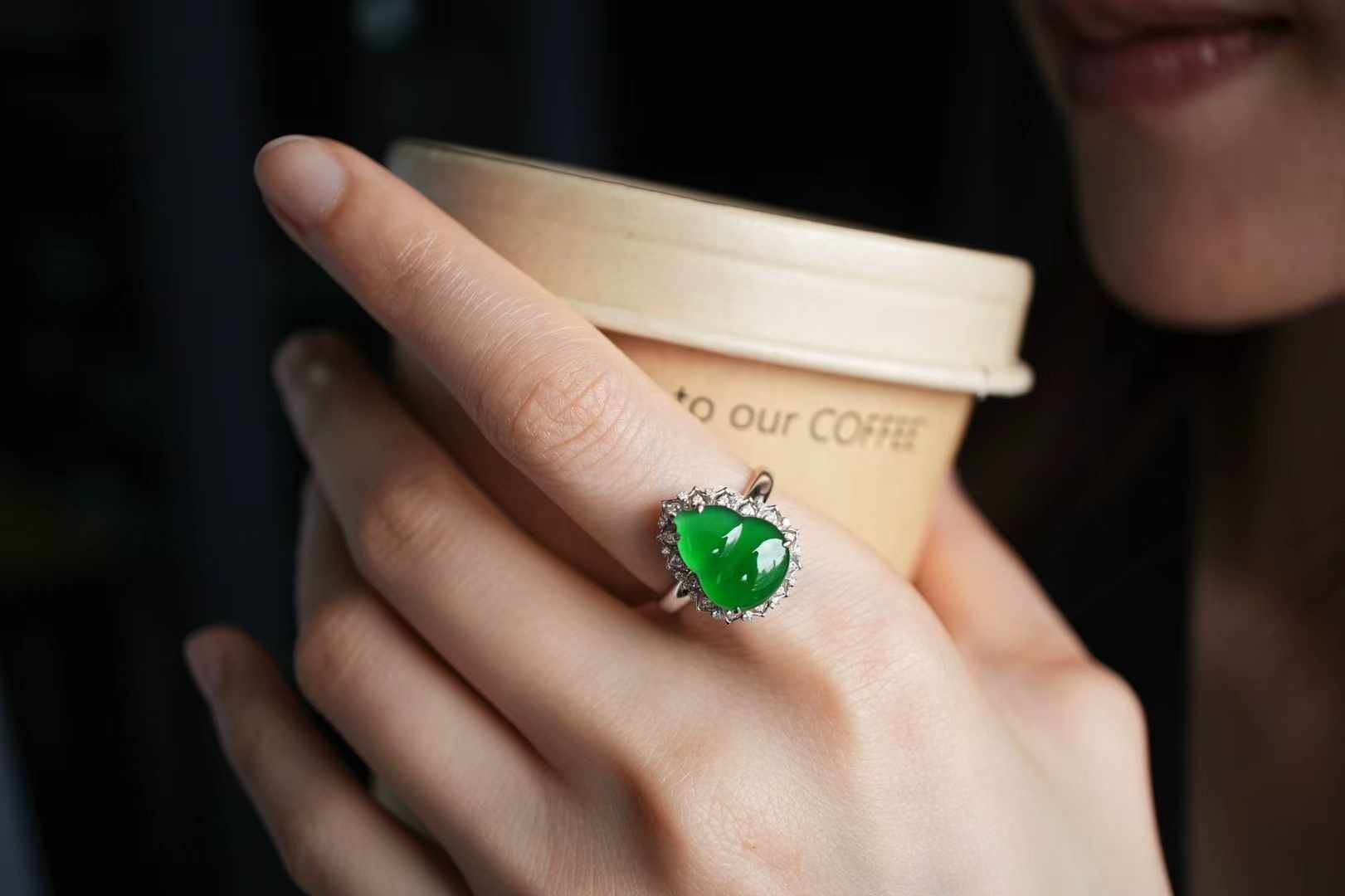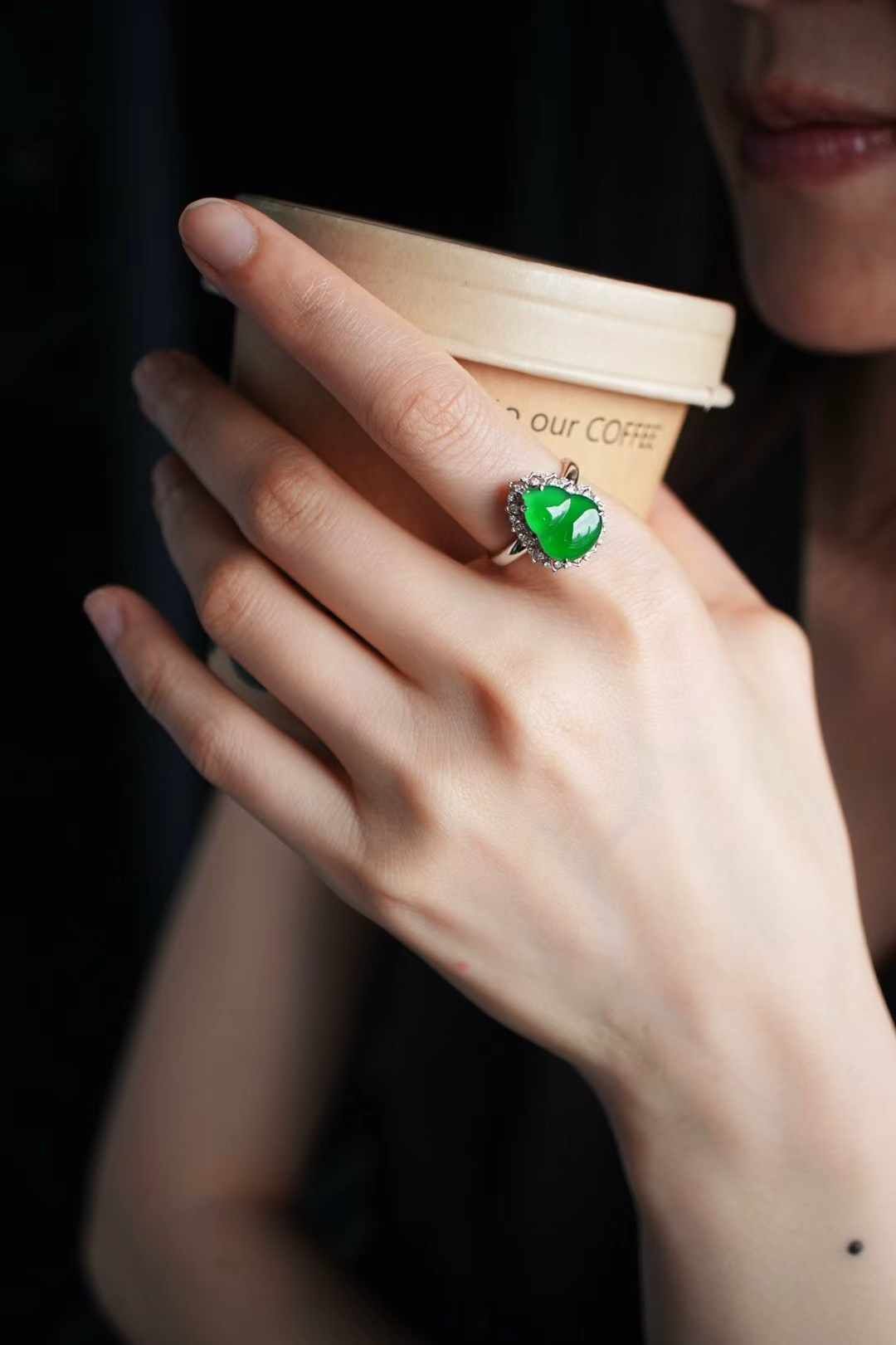 • 翡翠冰辣陽綠葫蘆戒指,天然翡翠A玉, 緬甸玉, Jade, Jadeite