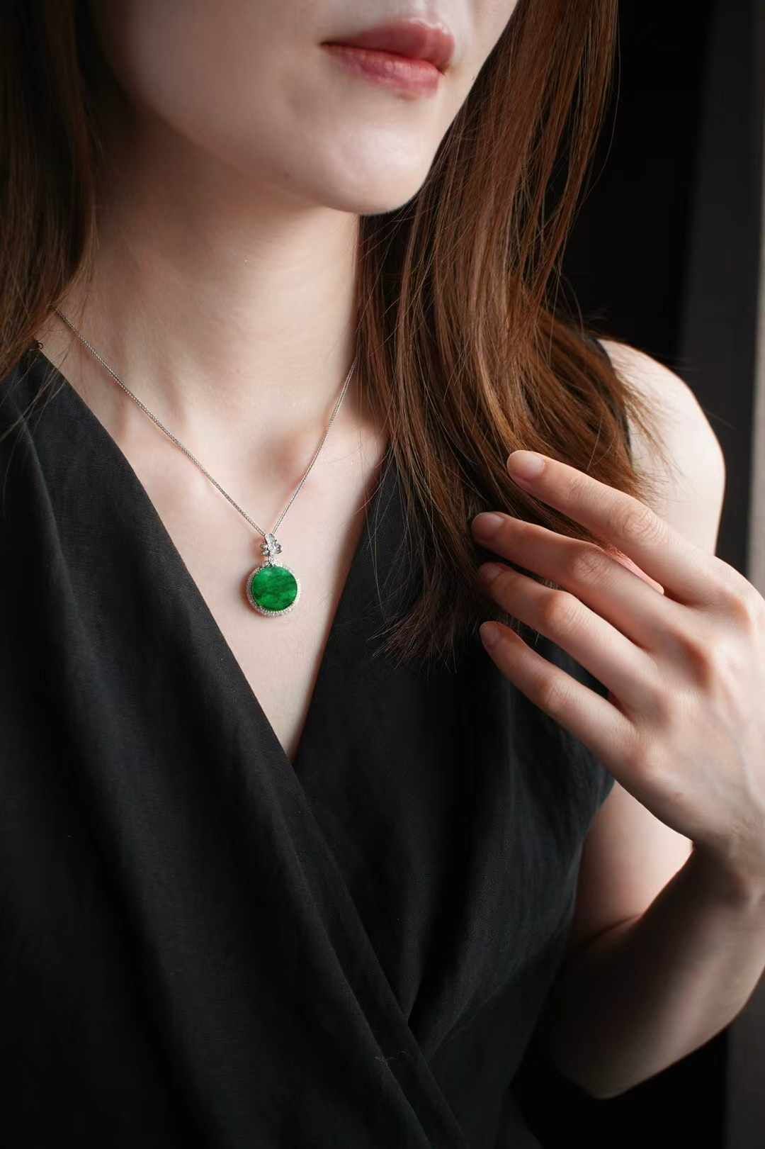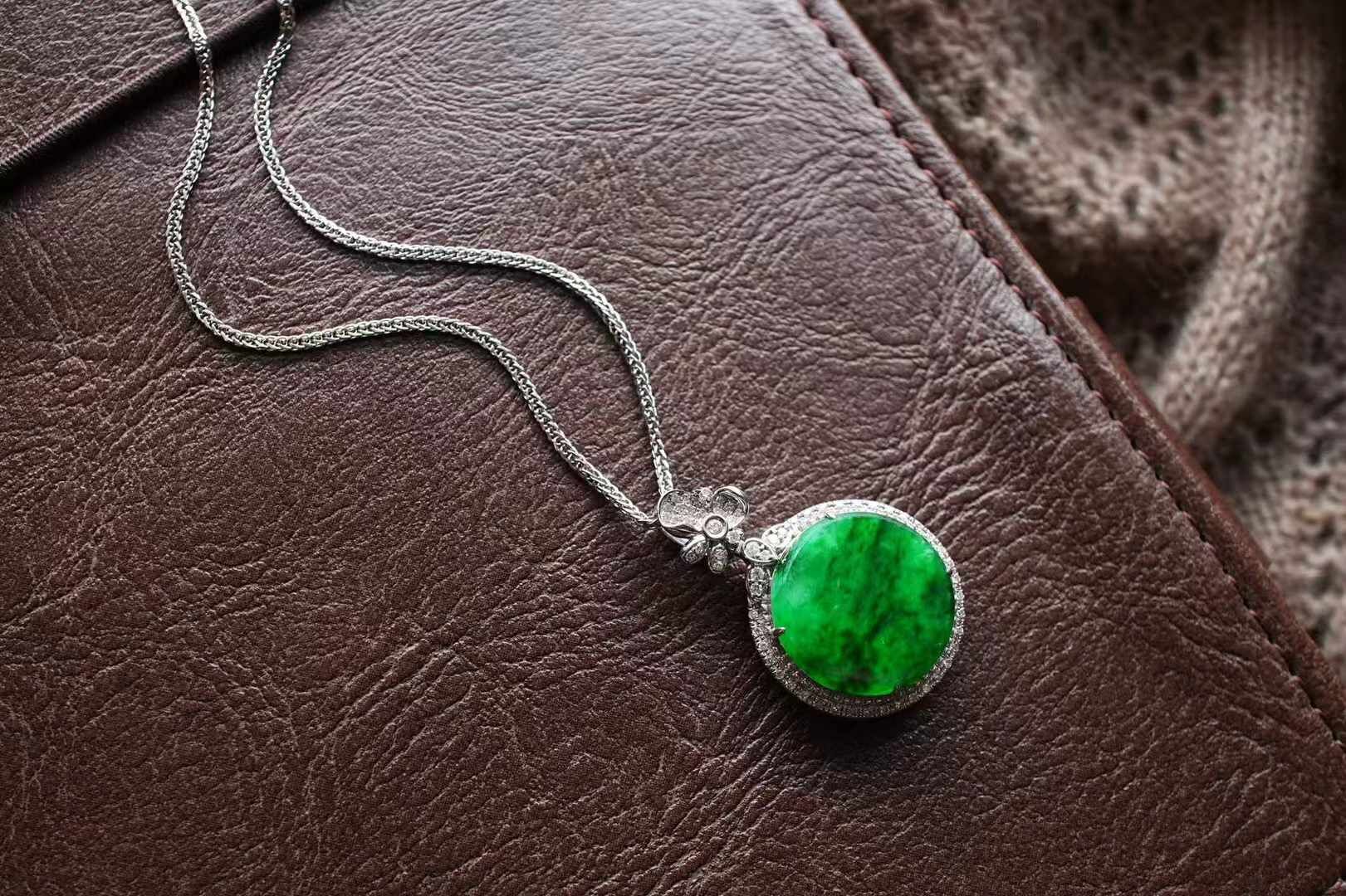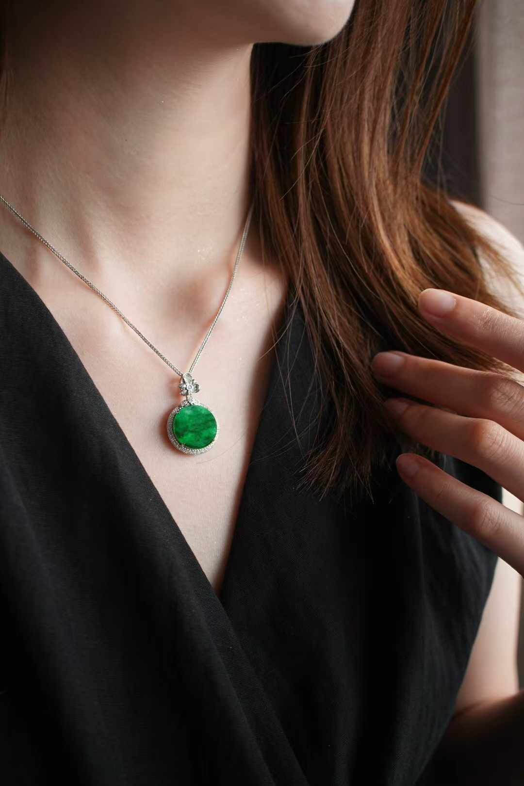 • 翡翠冰辣綠平安圓牌吊墜,天然翡翠A玉, 緬甸玉, Jade, Jadeite