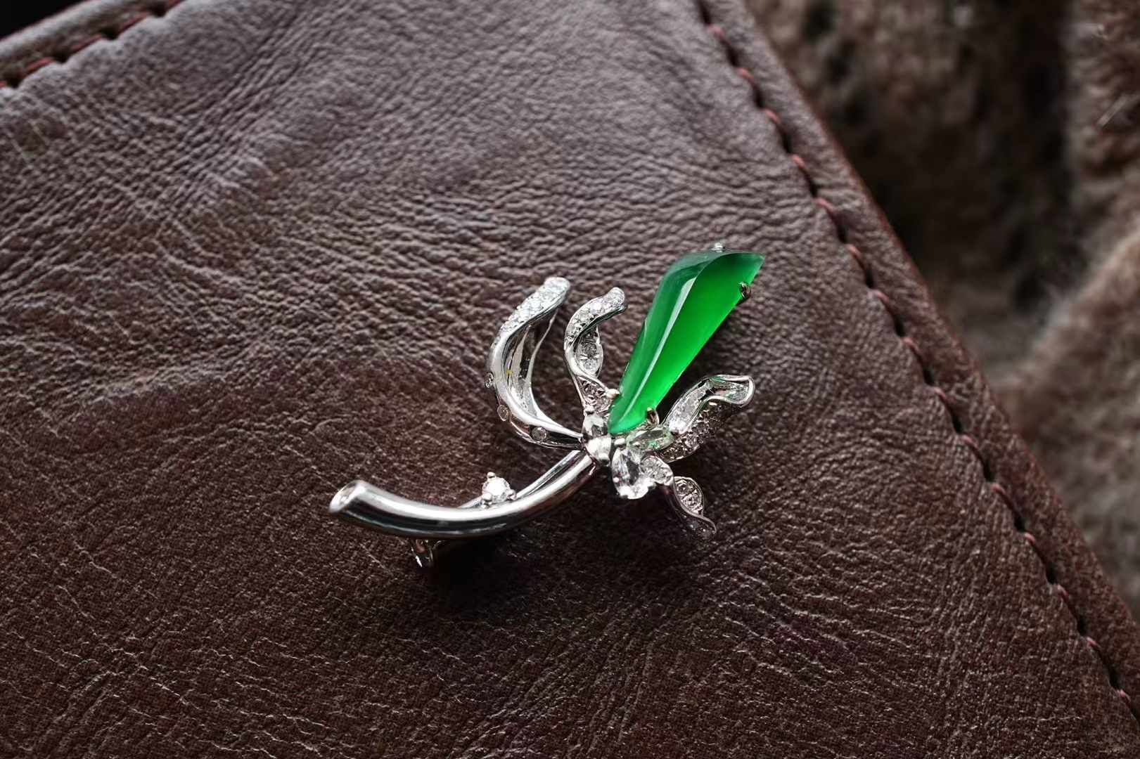 414825 翡翠冰辣陽綠玉蘭胸針吊墜兩用款
