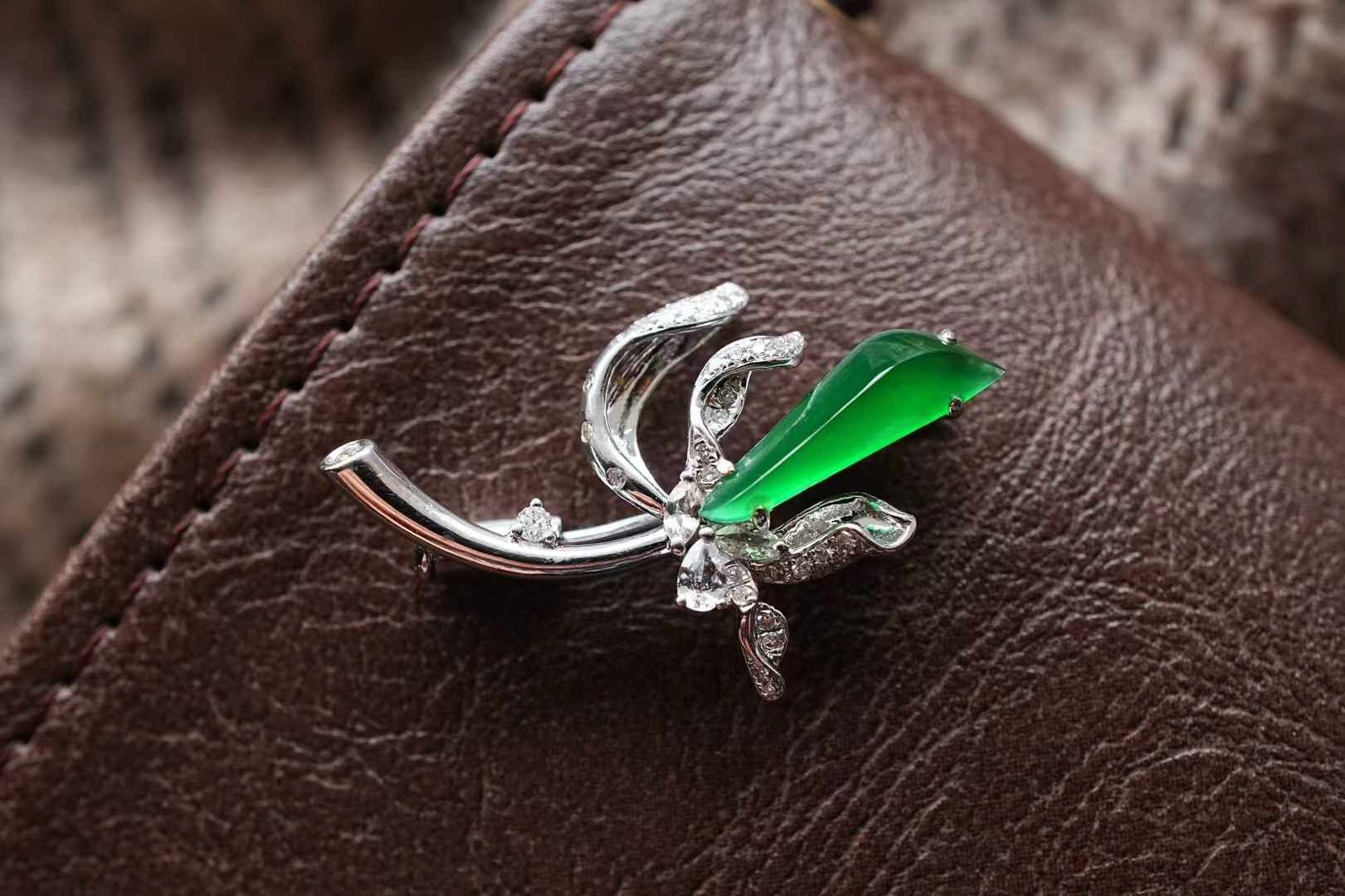 • 翡翠冰辣陽綠玉蘭胸針吊墜兩用款,天然翡翠A玉, 緬甸玉, Jade, Jadeite