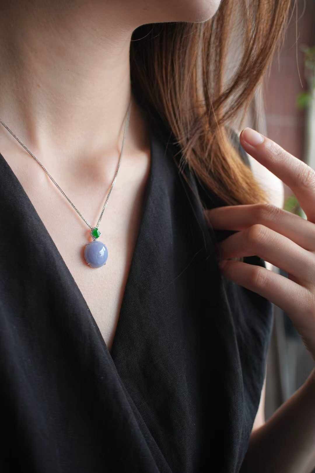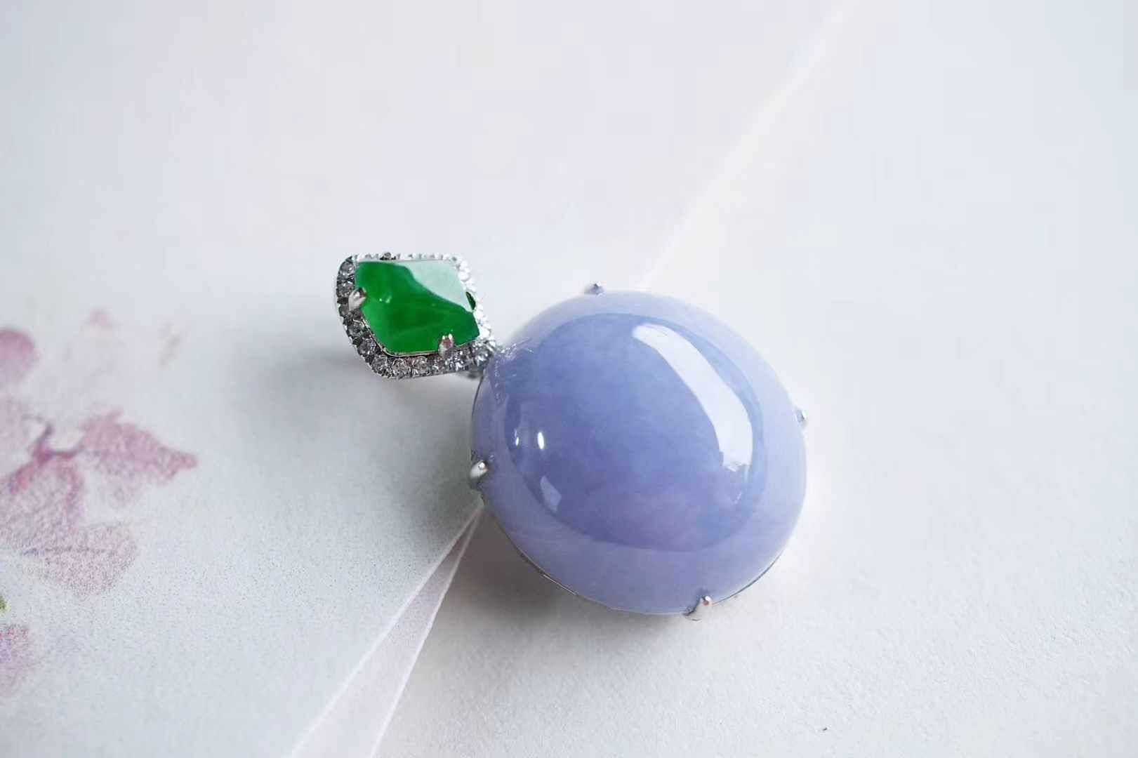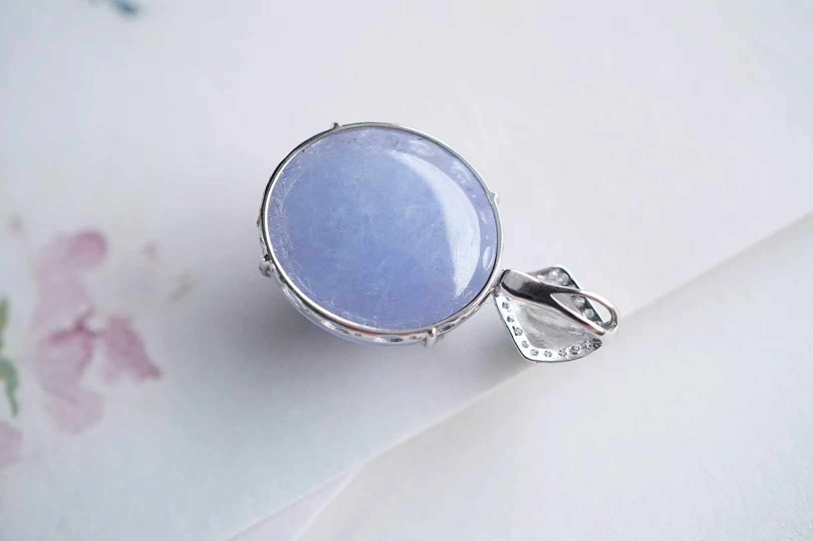 • 翡翠冰糯紫羅蘭蛋面吊墜,天然翡翠A玉, 緬甸玉, Jade, Jadeite