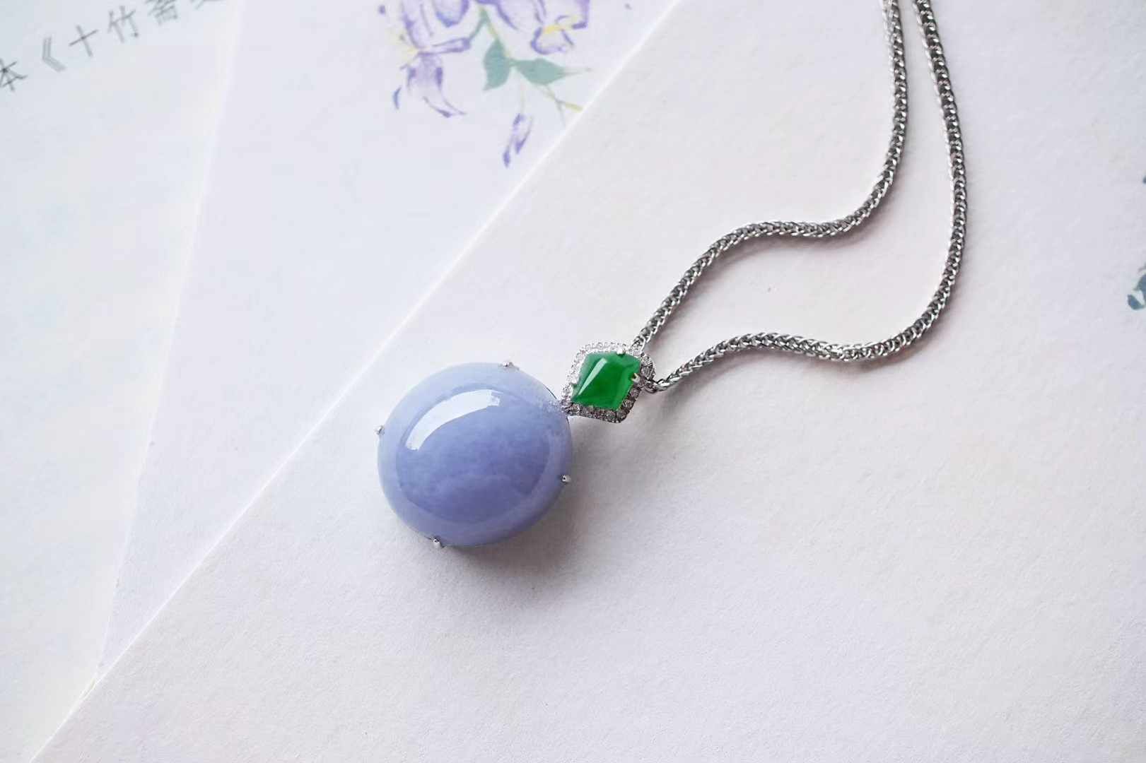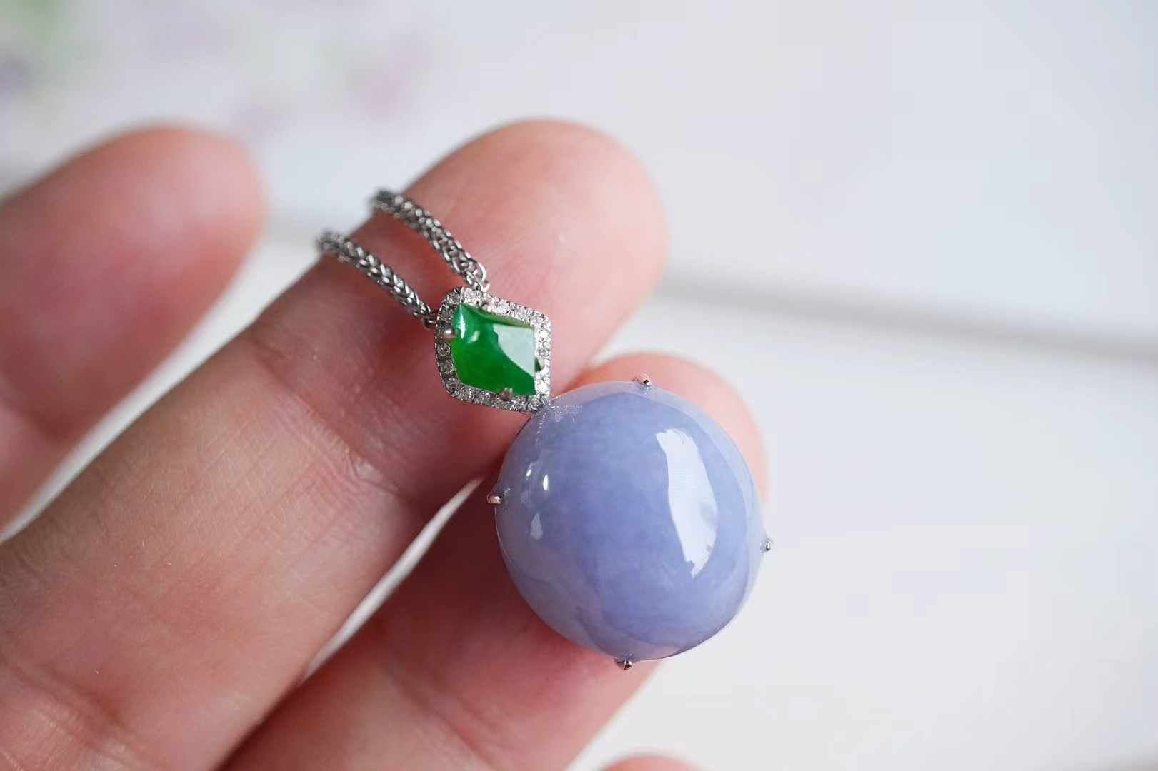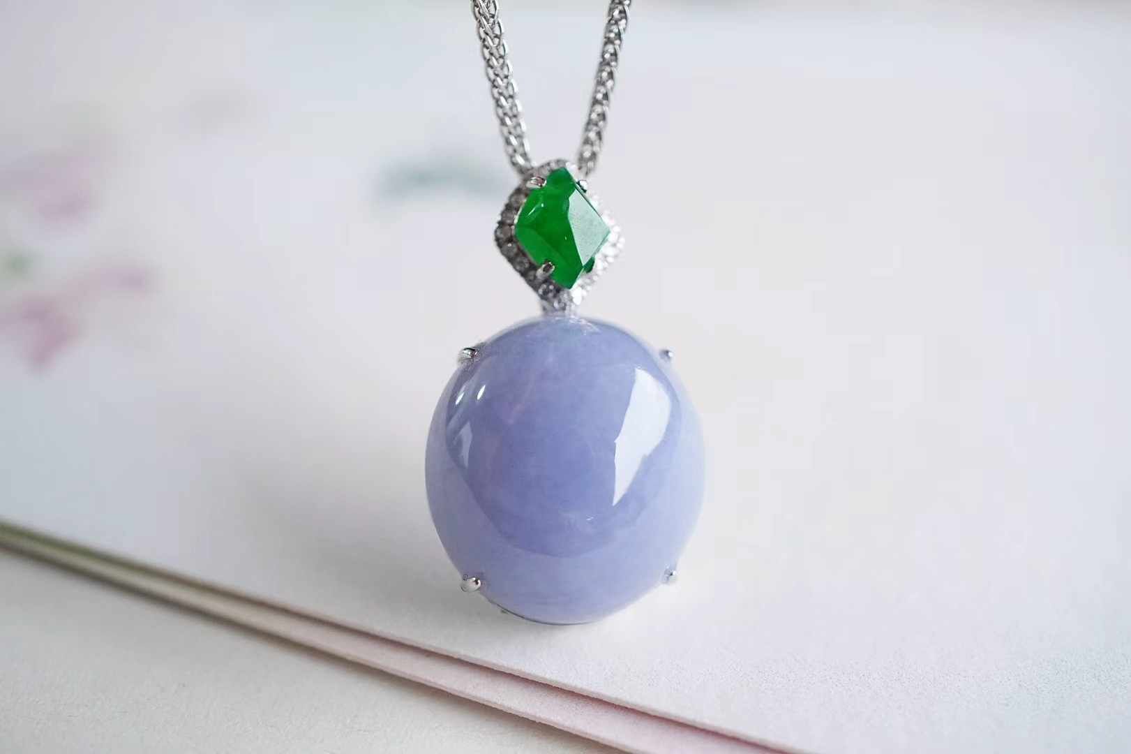 • 翡翠冰糯紫羅蘭蛋面吊墜,天然翡翠A玉, 緬甸玉, Jade, Jadeite