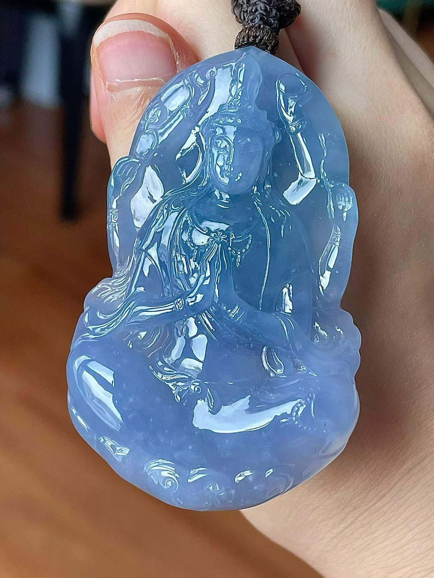 • 翡翠冰紫羅蘭六臂觀音,天然翡翠A玉, 緬甸玉, Jade, Jadeite