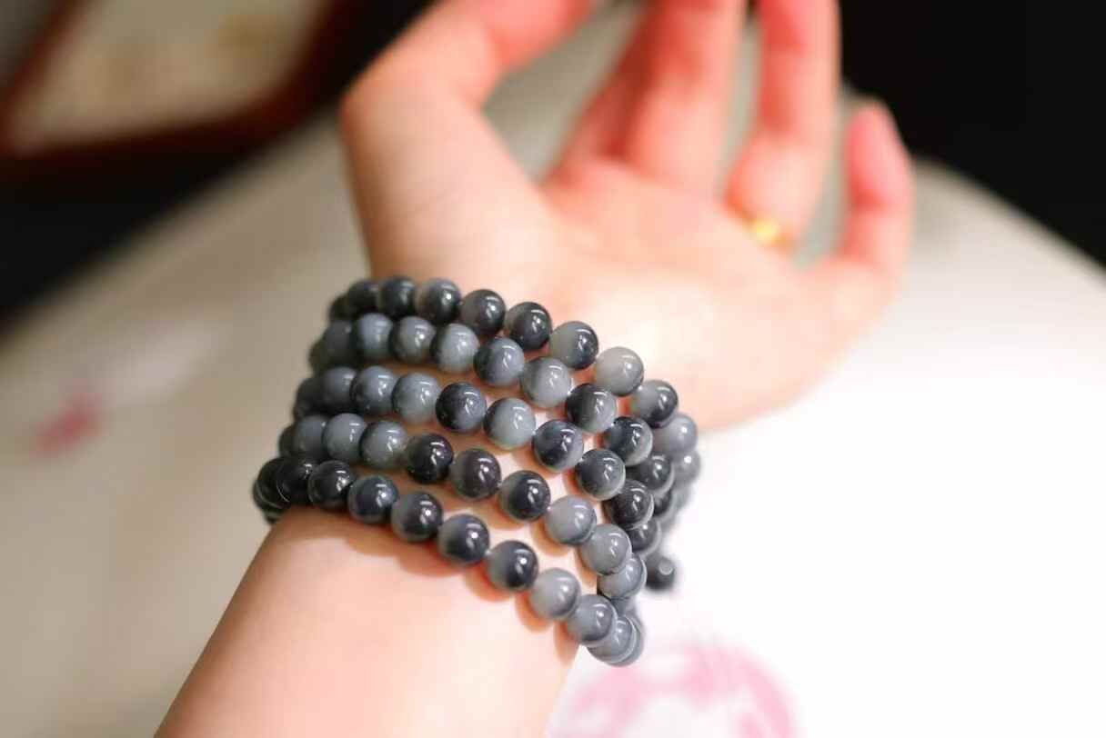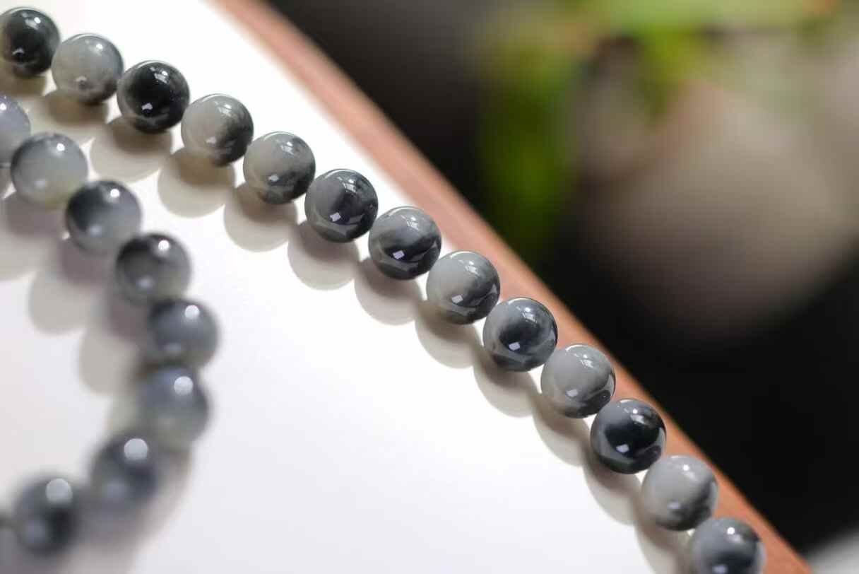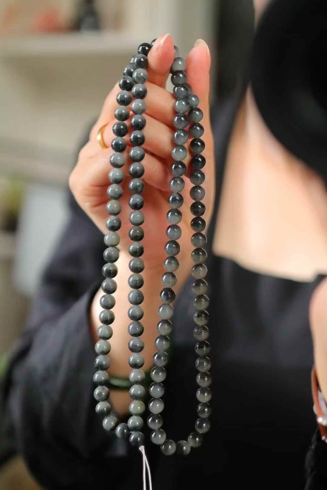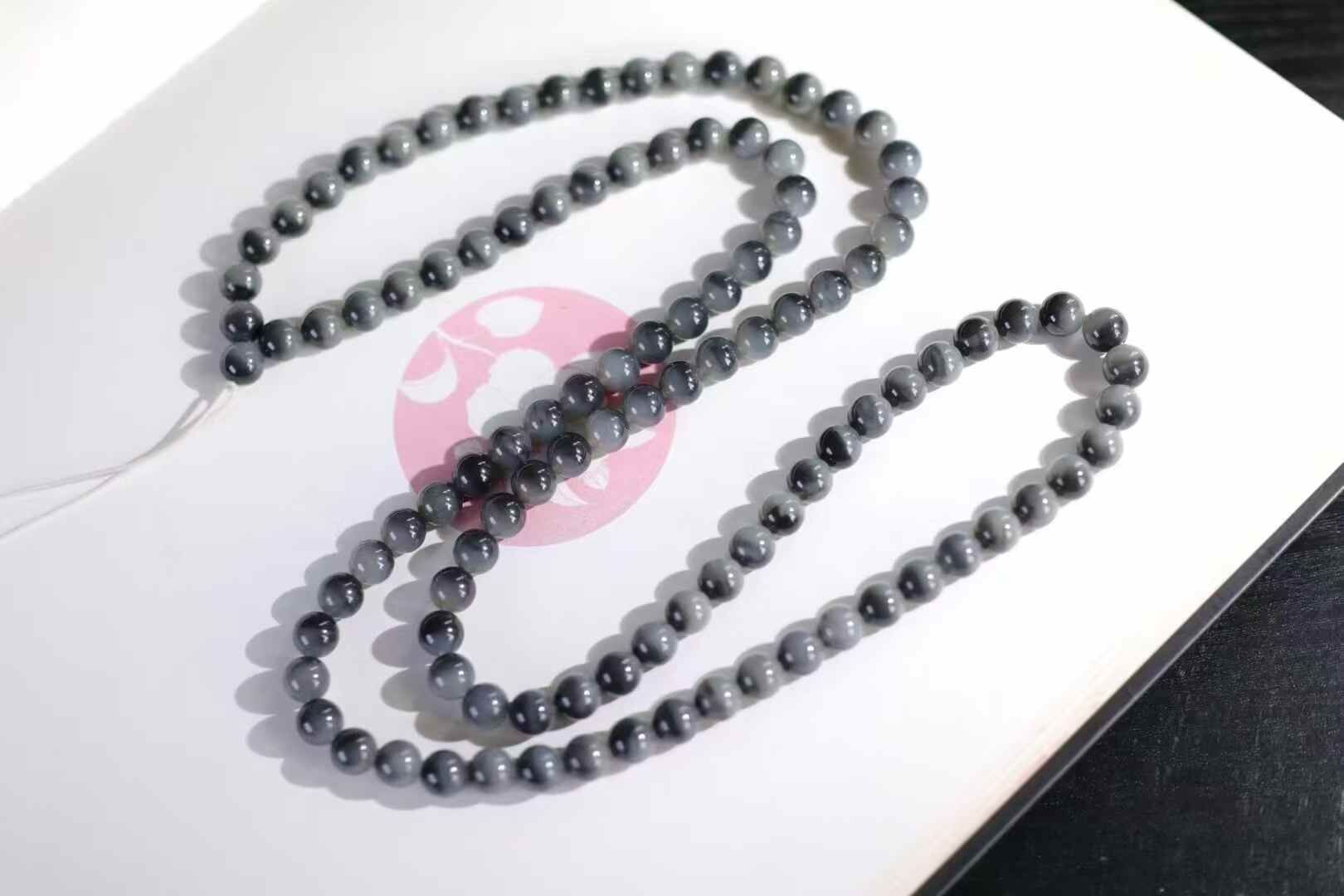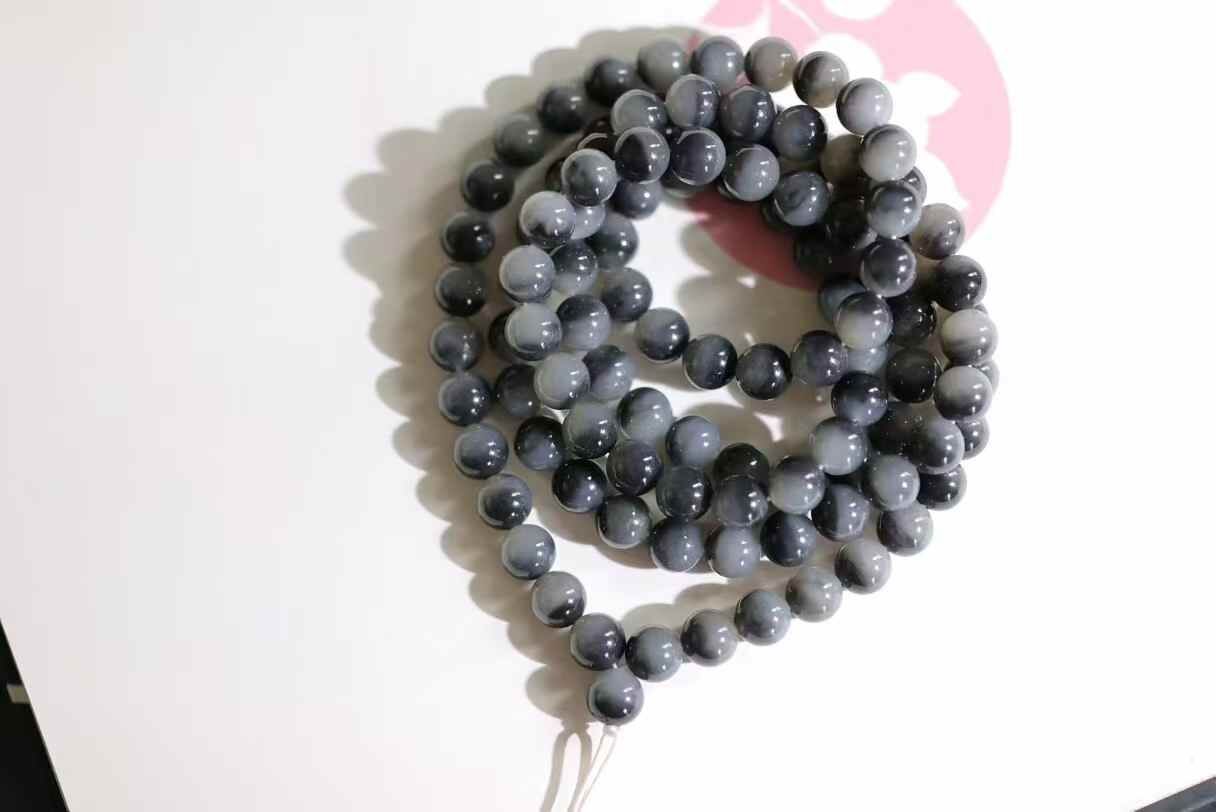 天然和田玉,聚寶盆青花108顆珠串,顆顆“聚寶盆”黑白分明天地珠。