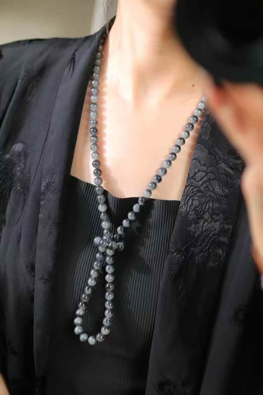 • 和田玉聚寶盆青花珠串 (8mm直徑),天然和田玉軟玉