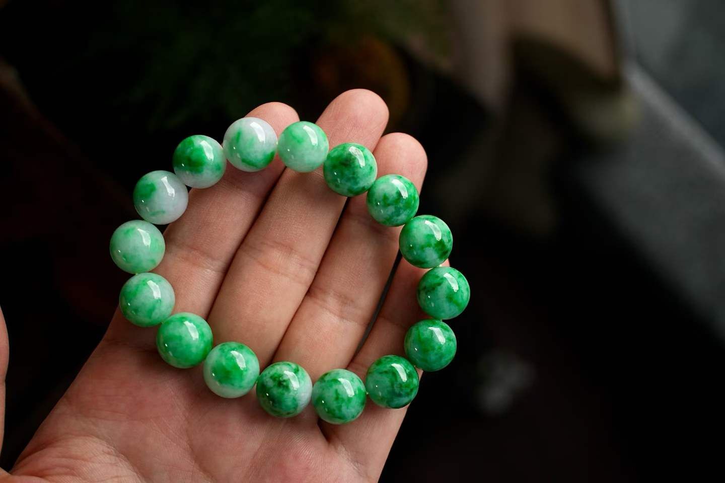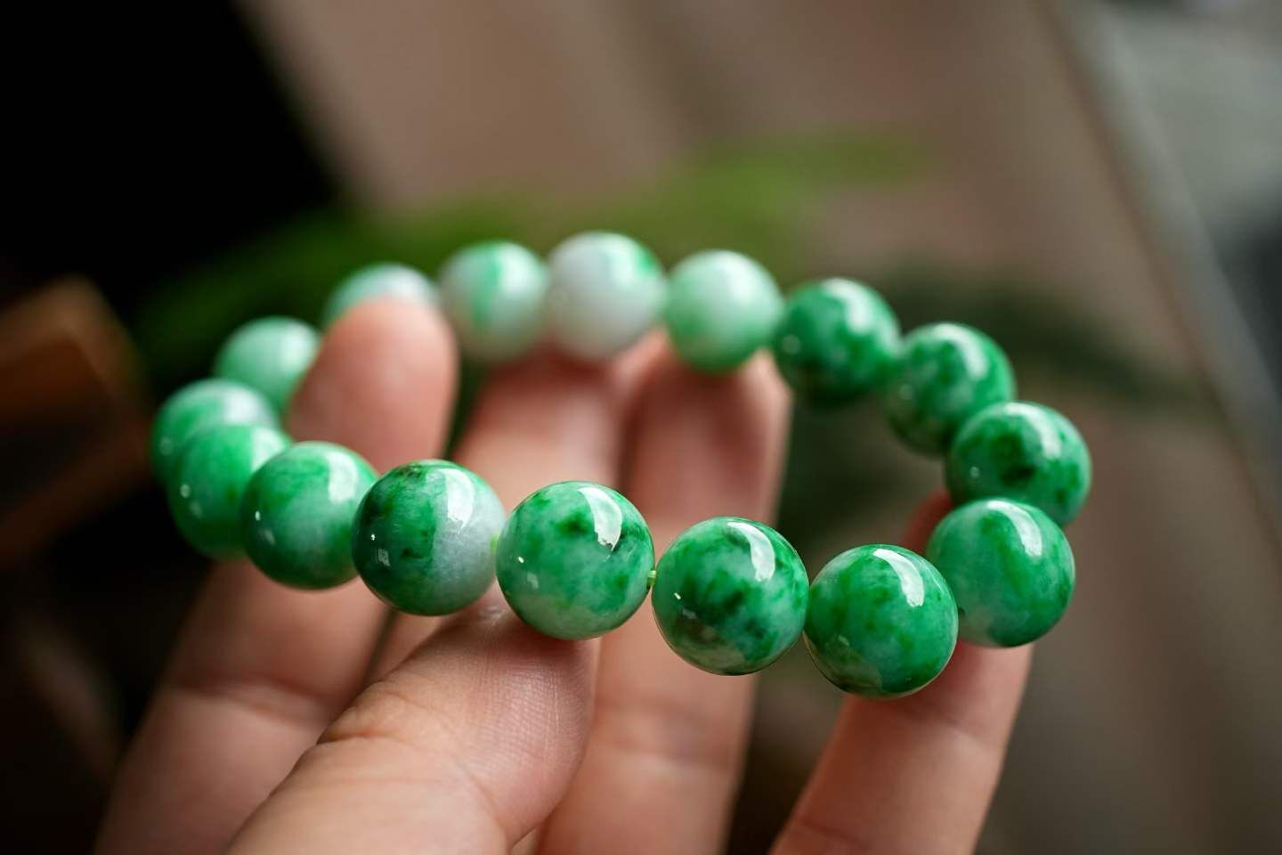 - 天然玉石在不同光線下,會呈現出不同的顏色變化;