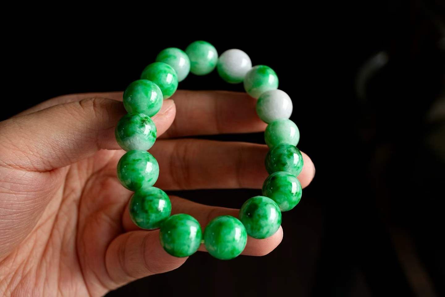 顆顆辣色濃郁,有三顆白底青更顯韻味了,色調明媚,郁郁蔥蔥,是辣陽綠+深綠的組合,整體冰潤潤的。