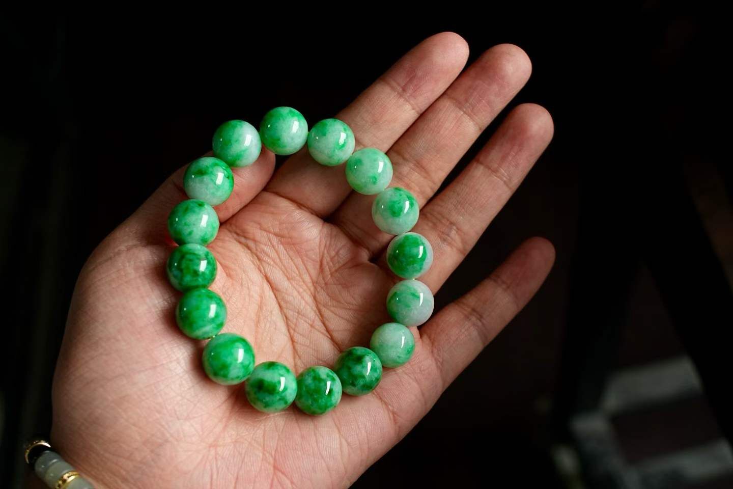 • 翡翠辣陽綠單圈手串 (12mm直徑),天然翡翠A玉, 緬甸玉, Jade, Jadeite
