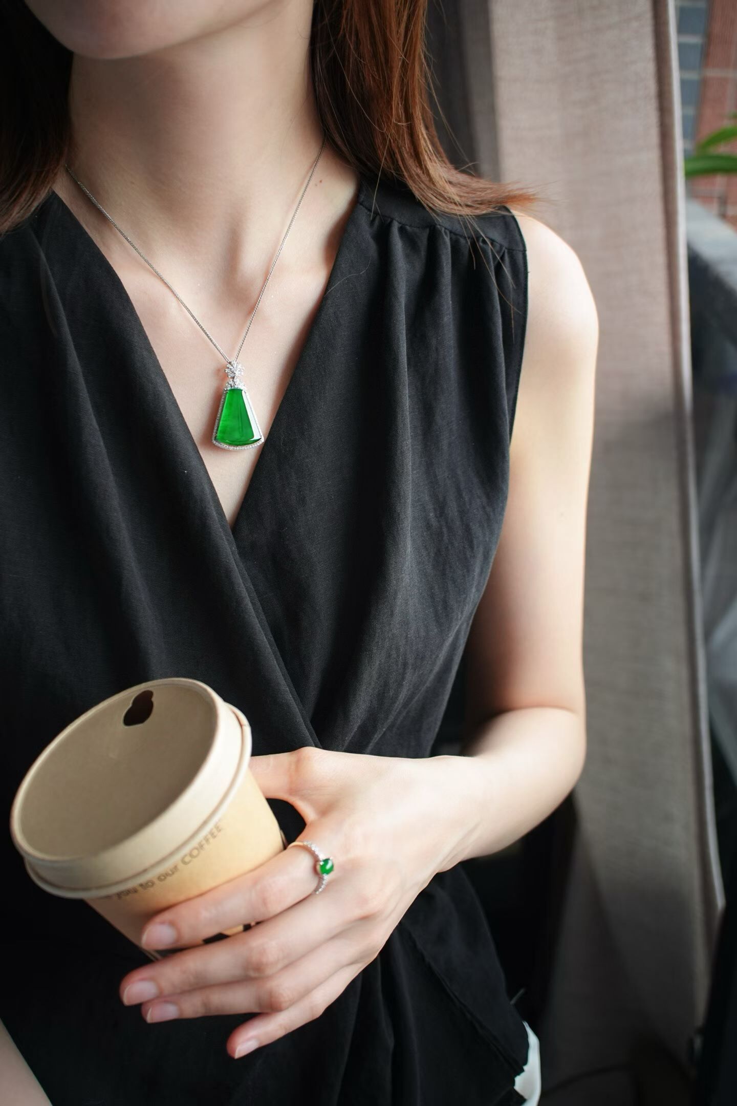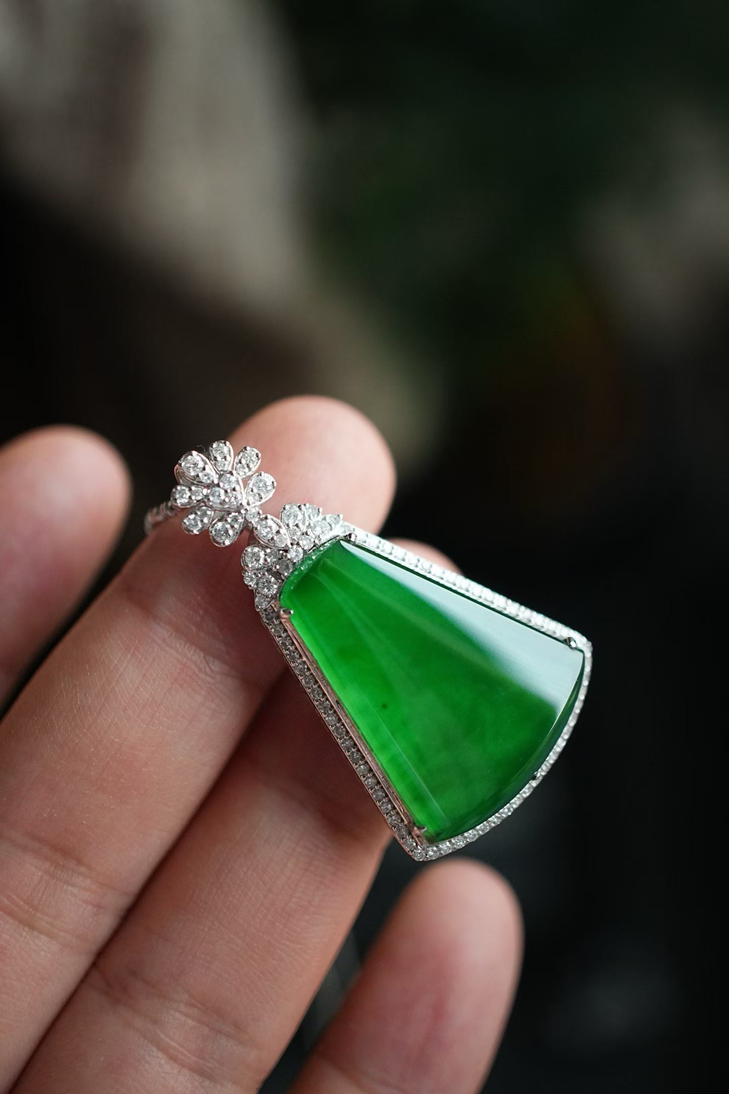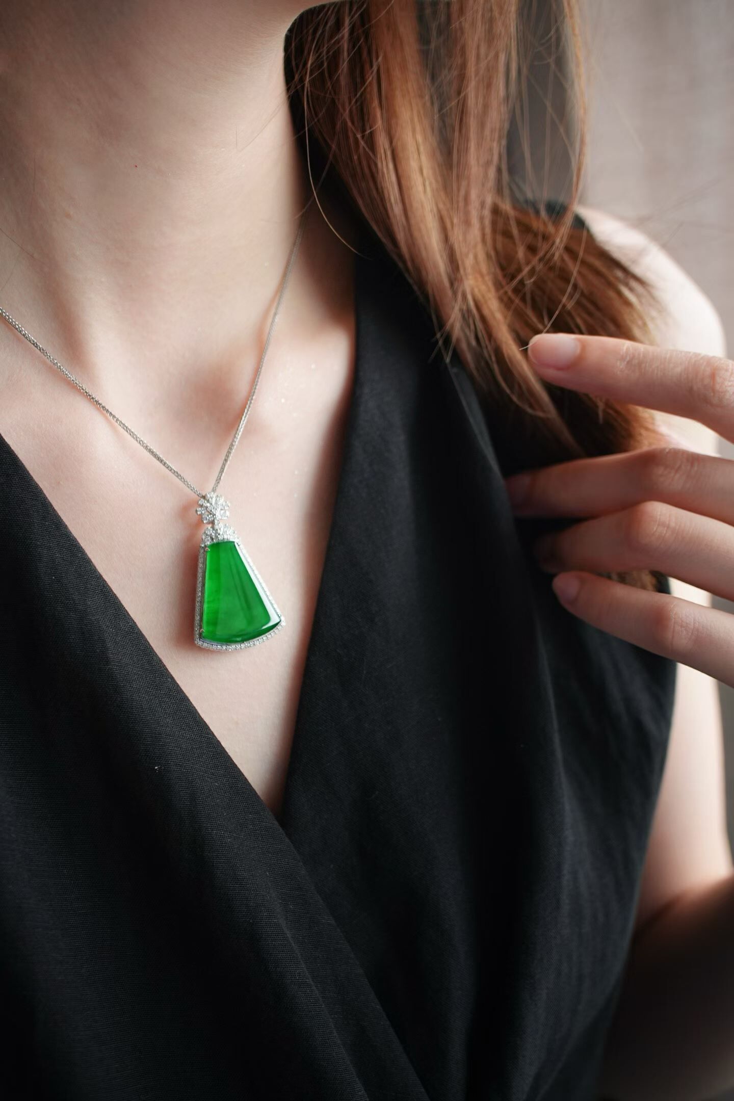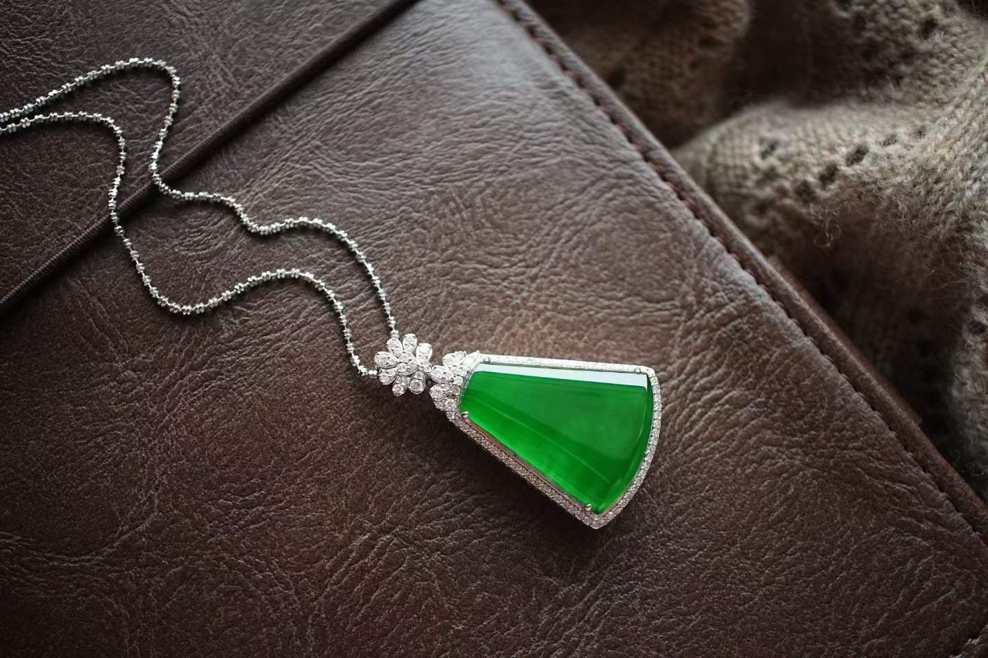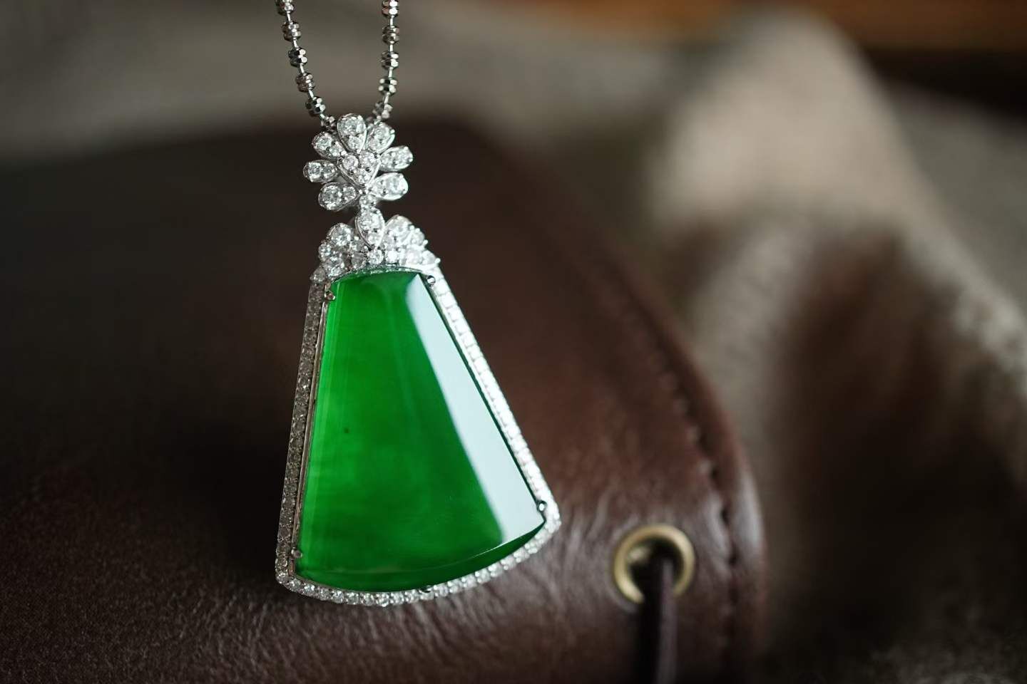 • 翡翠冰辣陽綠無事牌吊墜,天然翡翠A玉, 緬甸玉, Jade, Jadeite