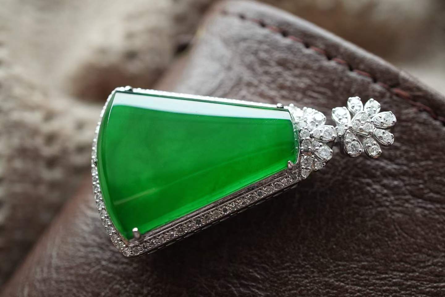 天然翡翠A玉,極簡時尚,無事牌是翡翠的終極表達。無事牌是無法進行後期修飾的,所以對料子的要求極高!這塊品質很好,種質冰透,起光感,色澤辣陽濃郁,個頭大,行家貨品質,