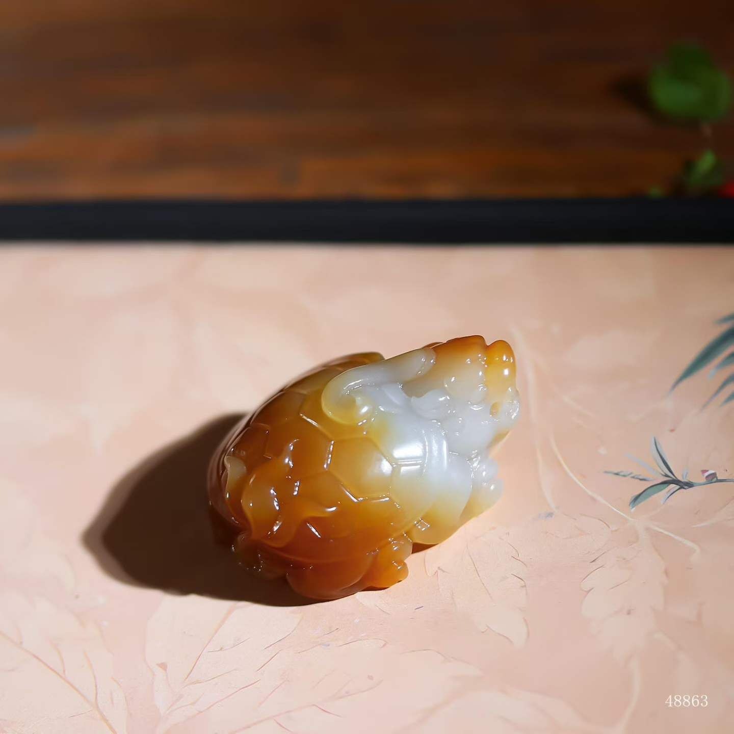 精工雕磅礴神韻,糖白流轉間暗湧洪荒偉力,托山海之勢,負乾坤瑞氣。