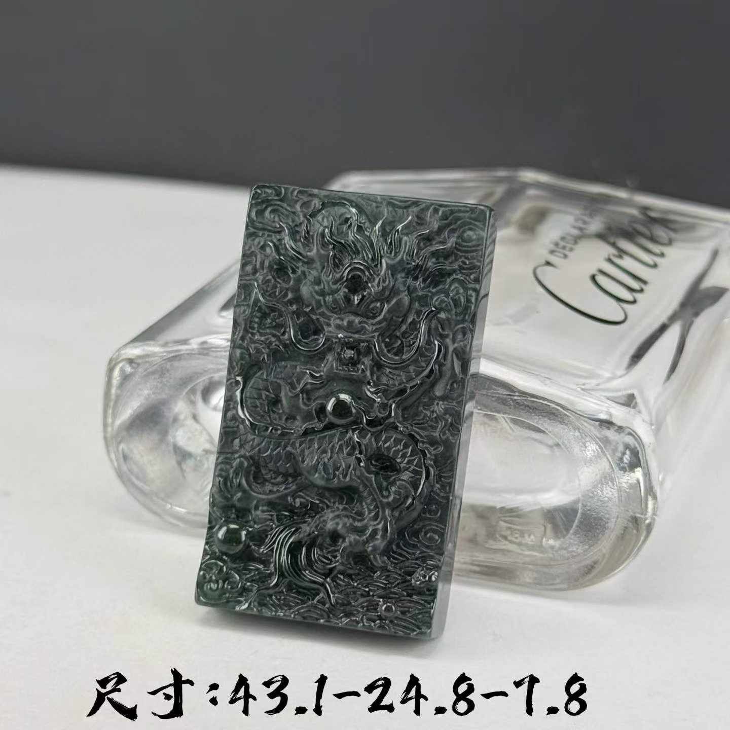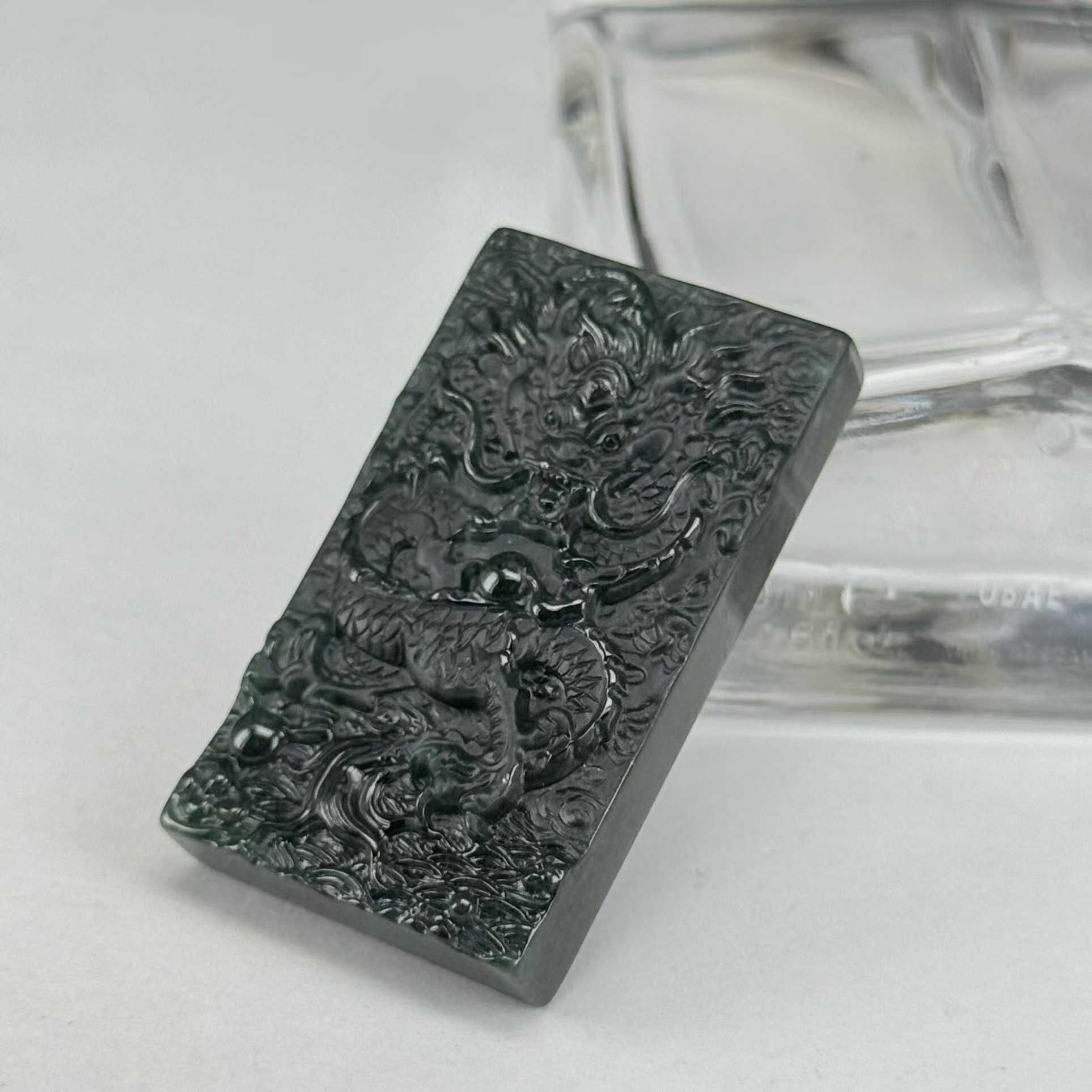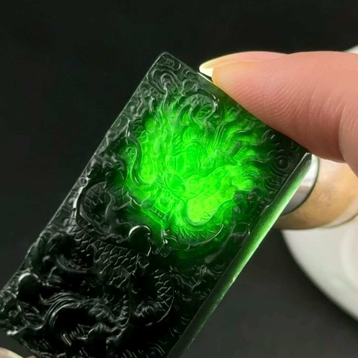 • 翡翠墨翠龍牌,天然翡翠A玉, 緬甸玉, Jade, Jadeite