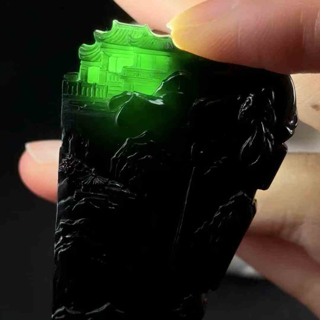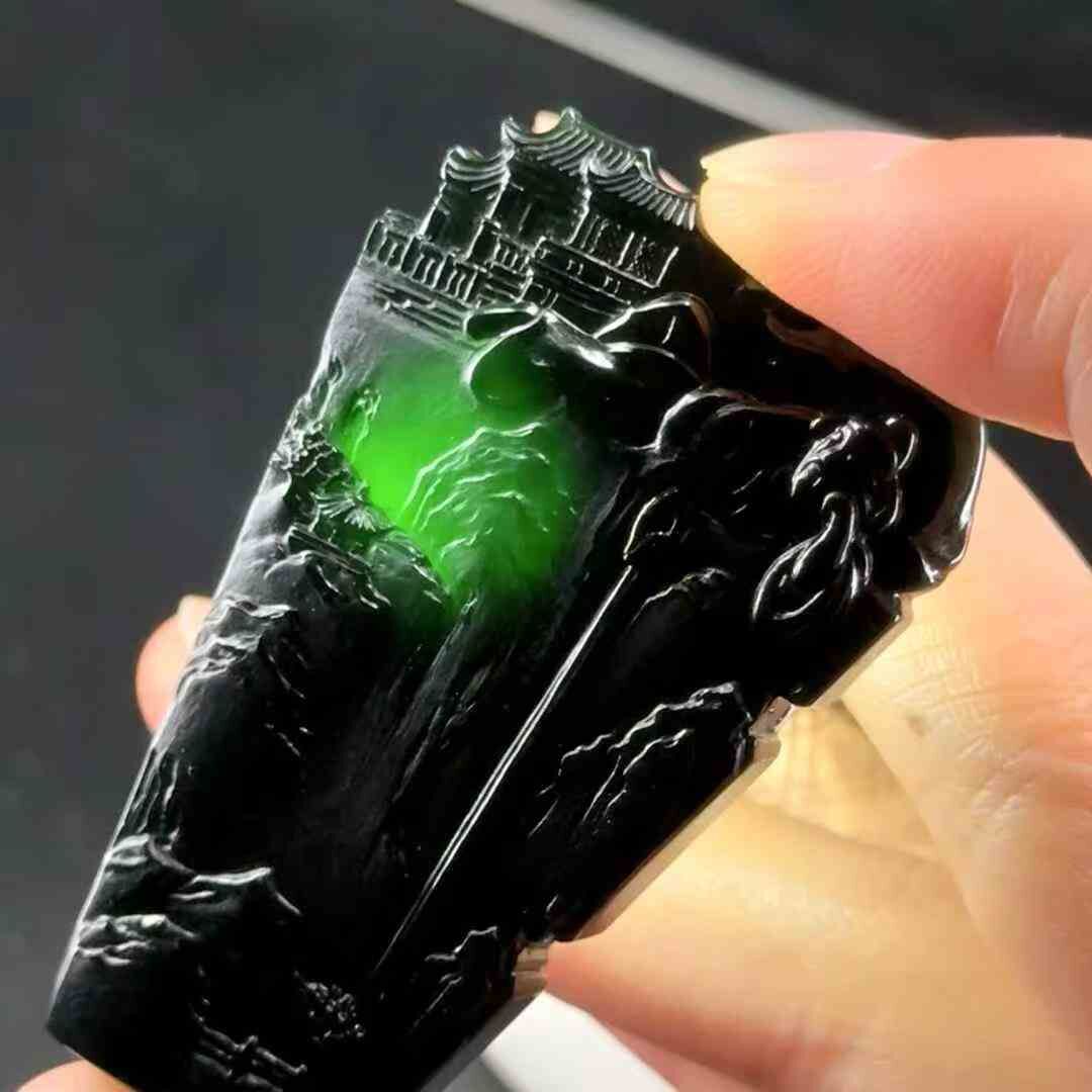 天然翡翠A玉,燈照透綠,雕工精美。