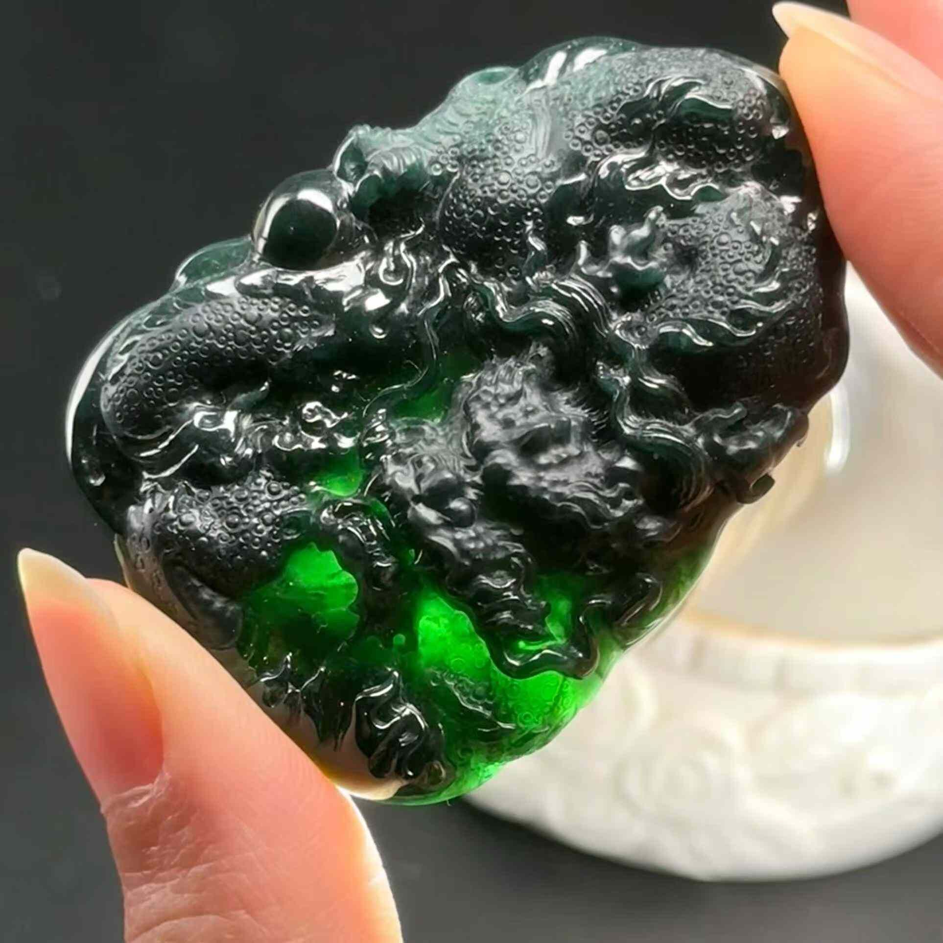 • 翡翠墨翠龍牌,天然翡翠A玉, 緬甸玉, Jade, Jadeite