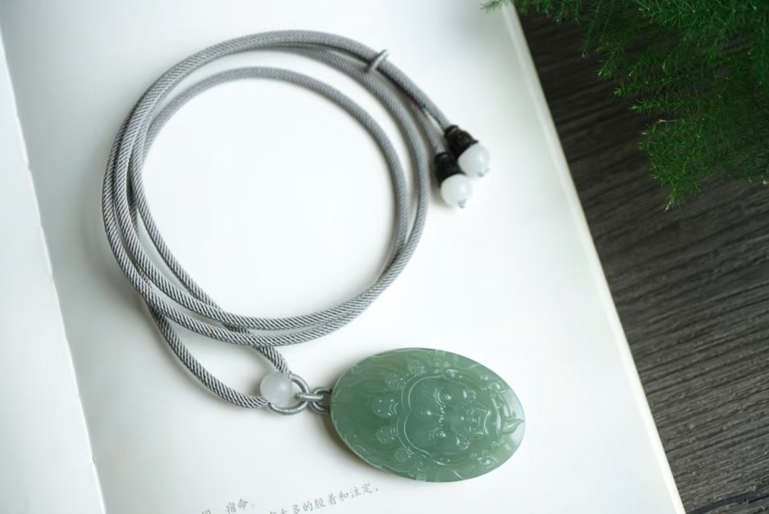 • 和田玉粉青“大黑天守護神”掛件, 天然和田玉軟玉