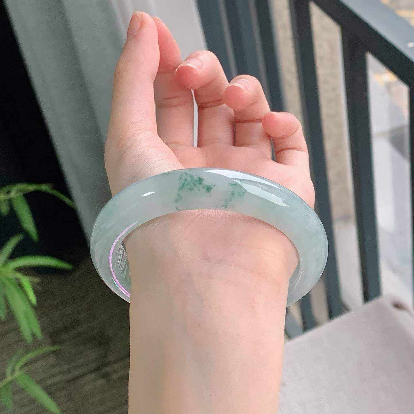 • 飄花翡翠手鐲,天然翡翠A玉, 緬甸玉, Jade, Jadeite
