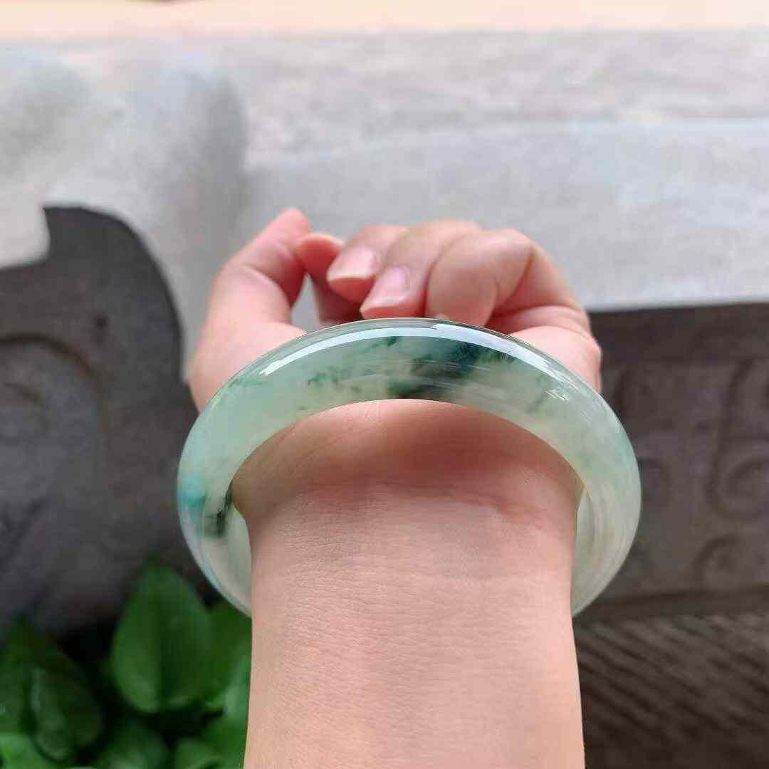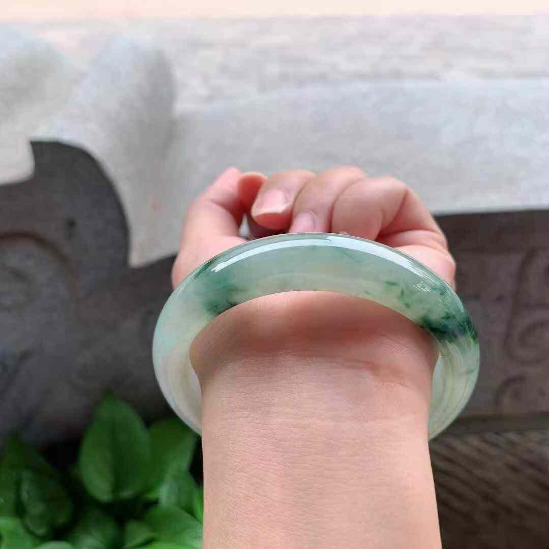 • 冰飄花翡翠正圈手鐲,天然翡翠A玉, 緬甸玉, Jade, Jadeite