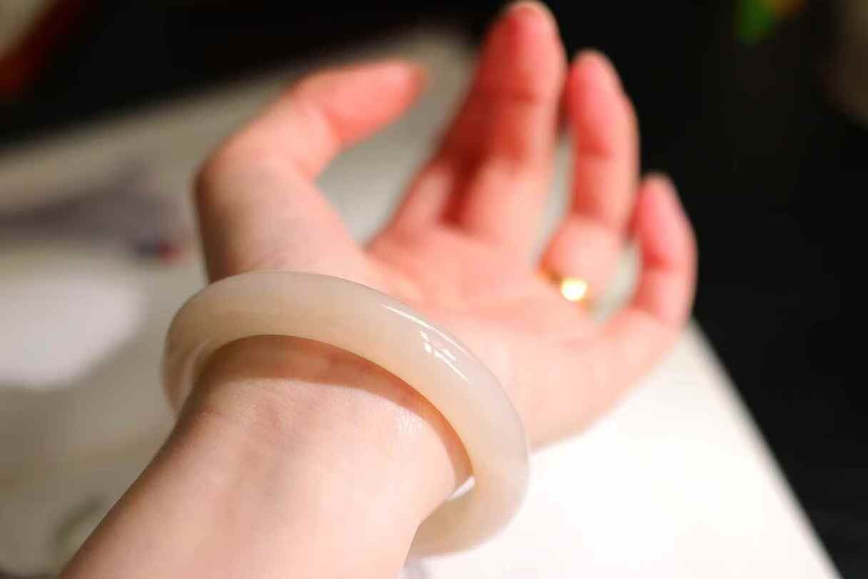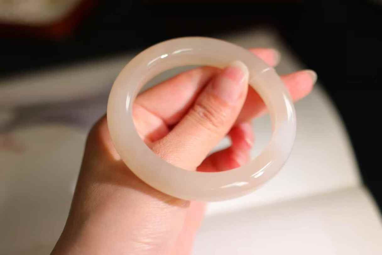 • 和田玉冰藕粉手鐲,天然和田玉軟玉