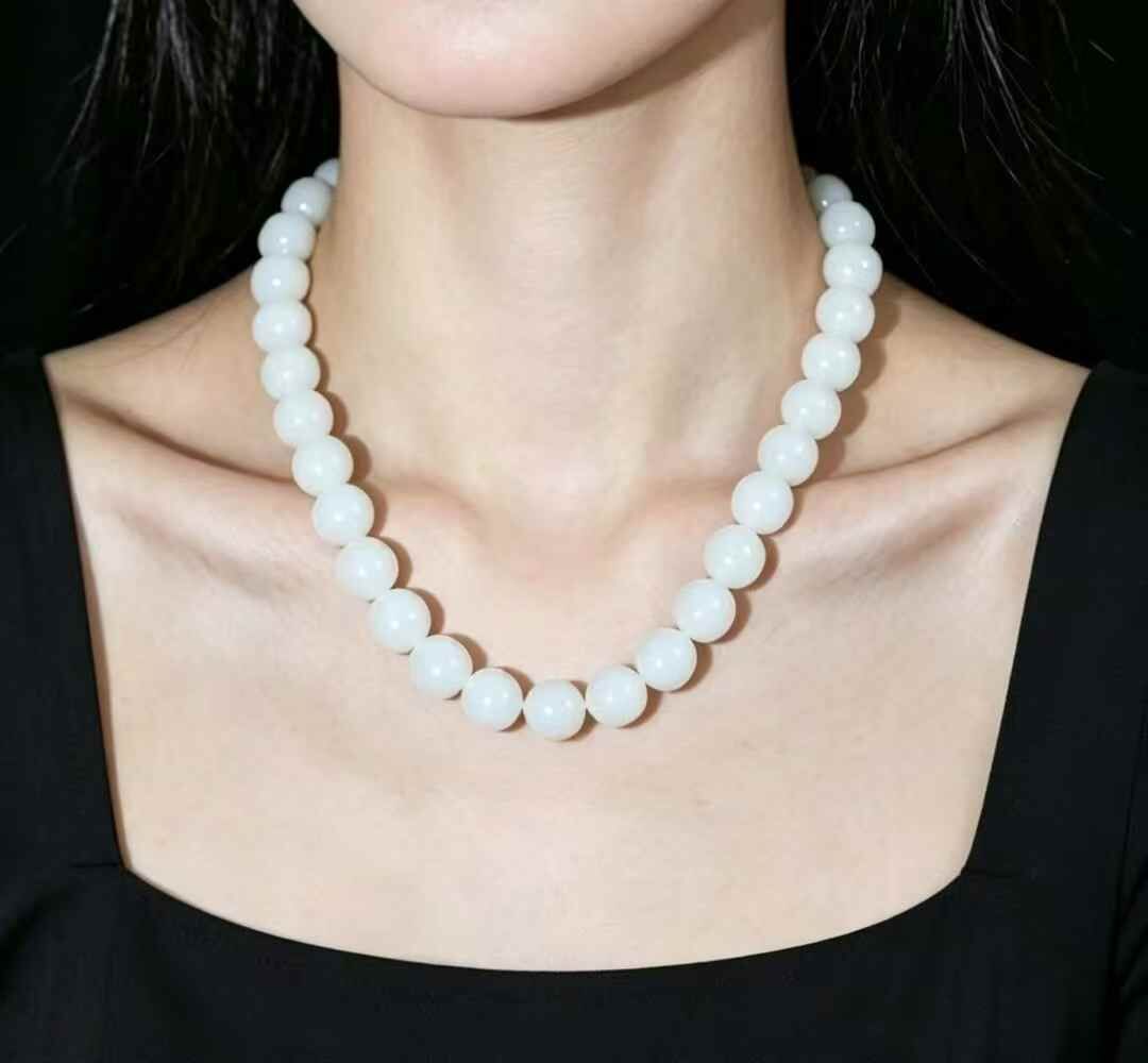 • 和田玉羊脂白項鏈 (12mm直徑),天然和田玉軟玉