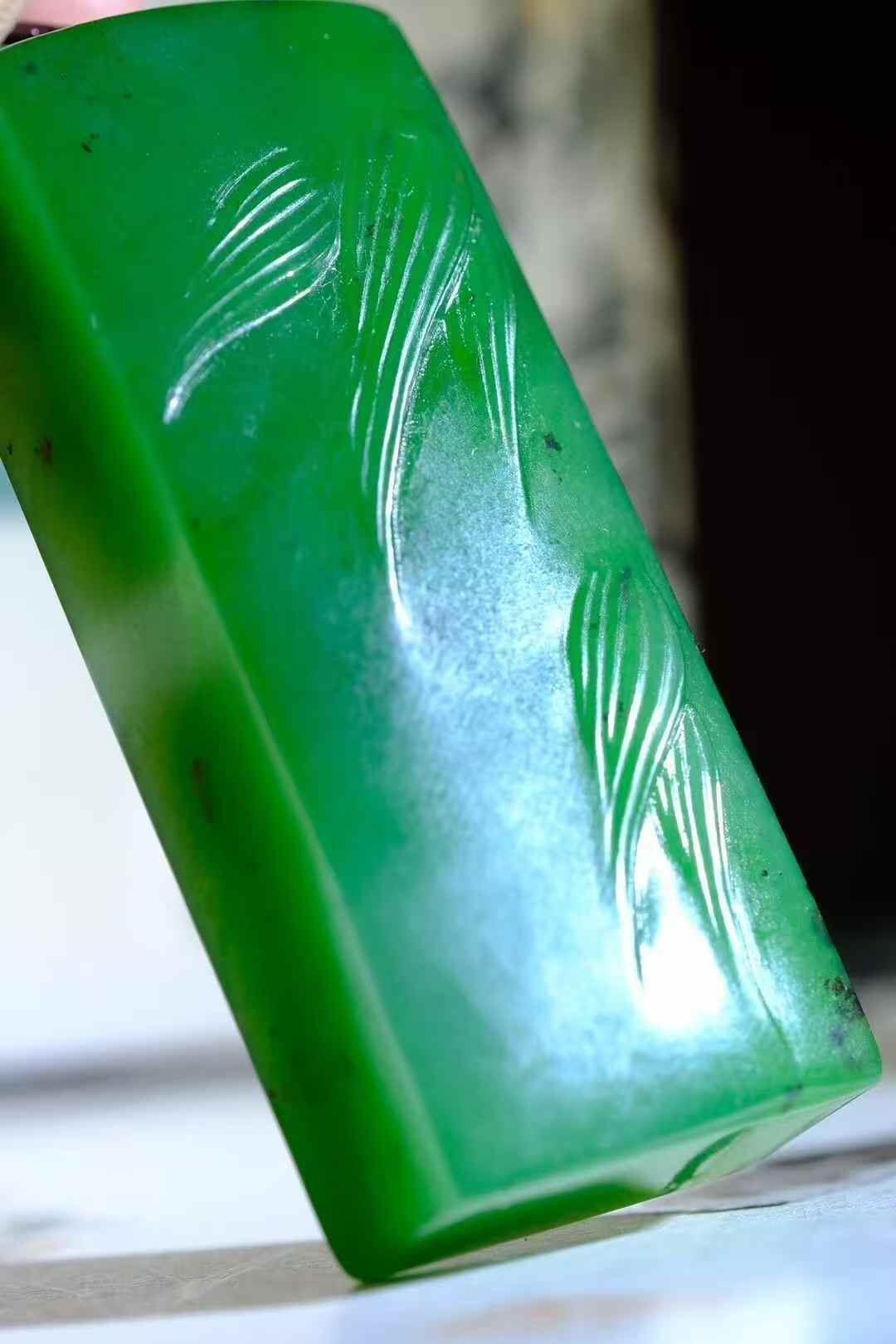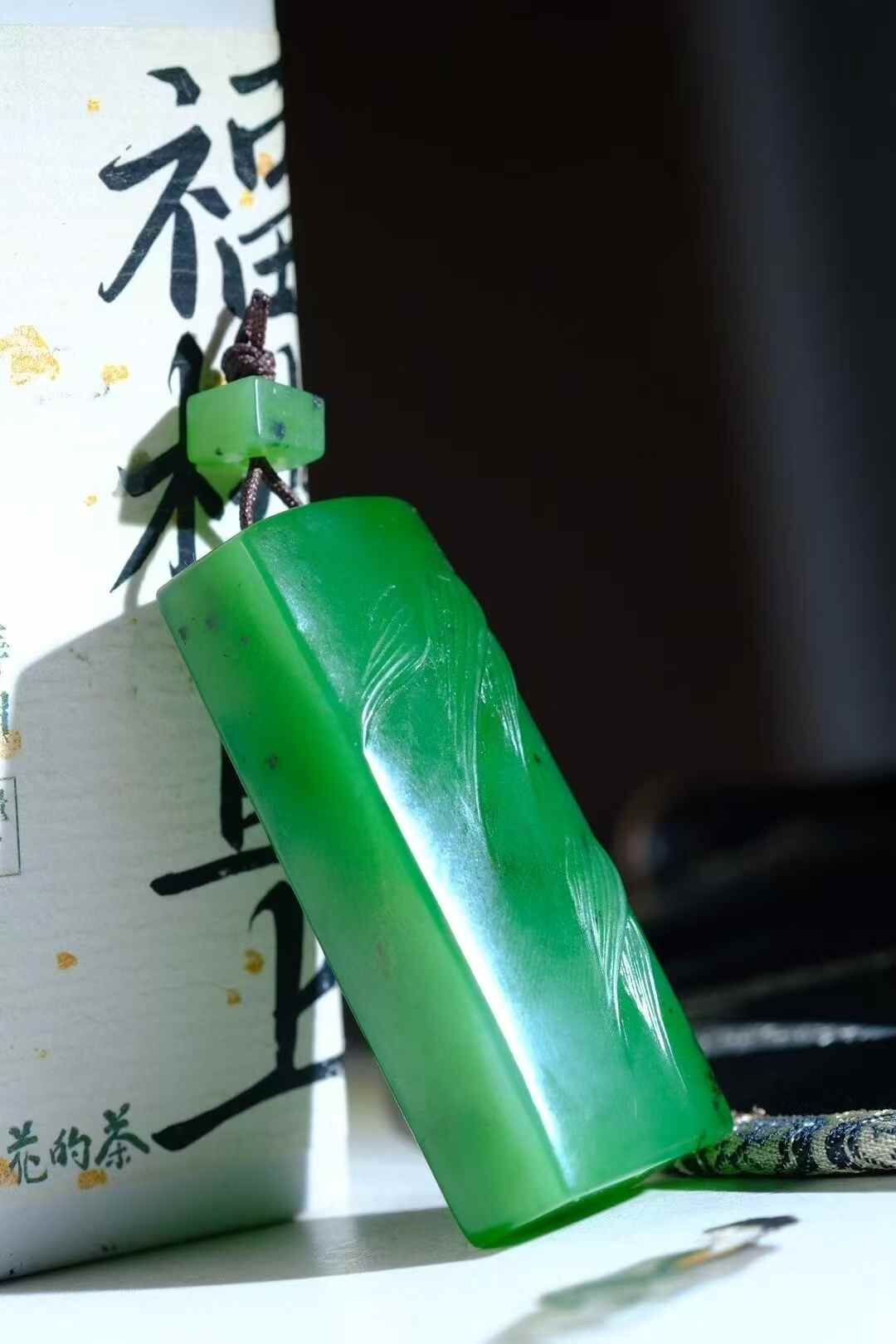 天然和田玉,幾葉棱棱似探幽,極致的東方美學,“清風撫竹影,幽篁靜我心。” 紅皮料辣綠牌,雅致美物。