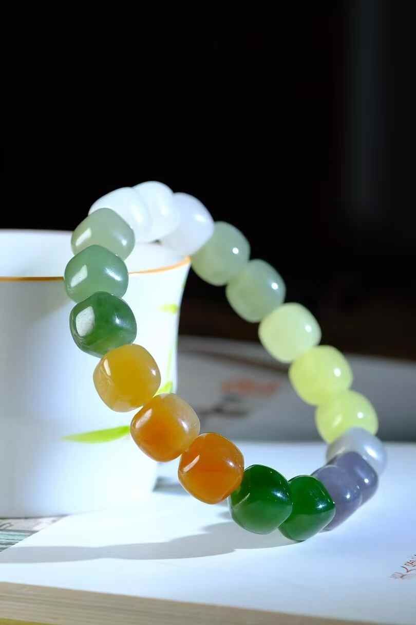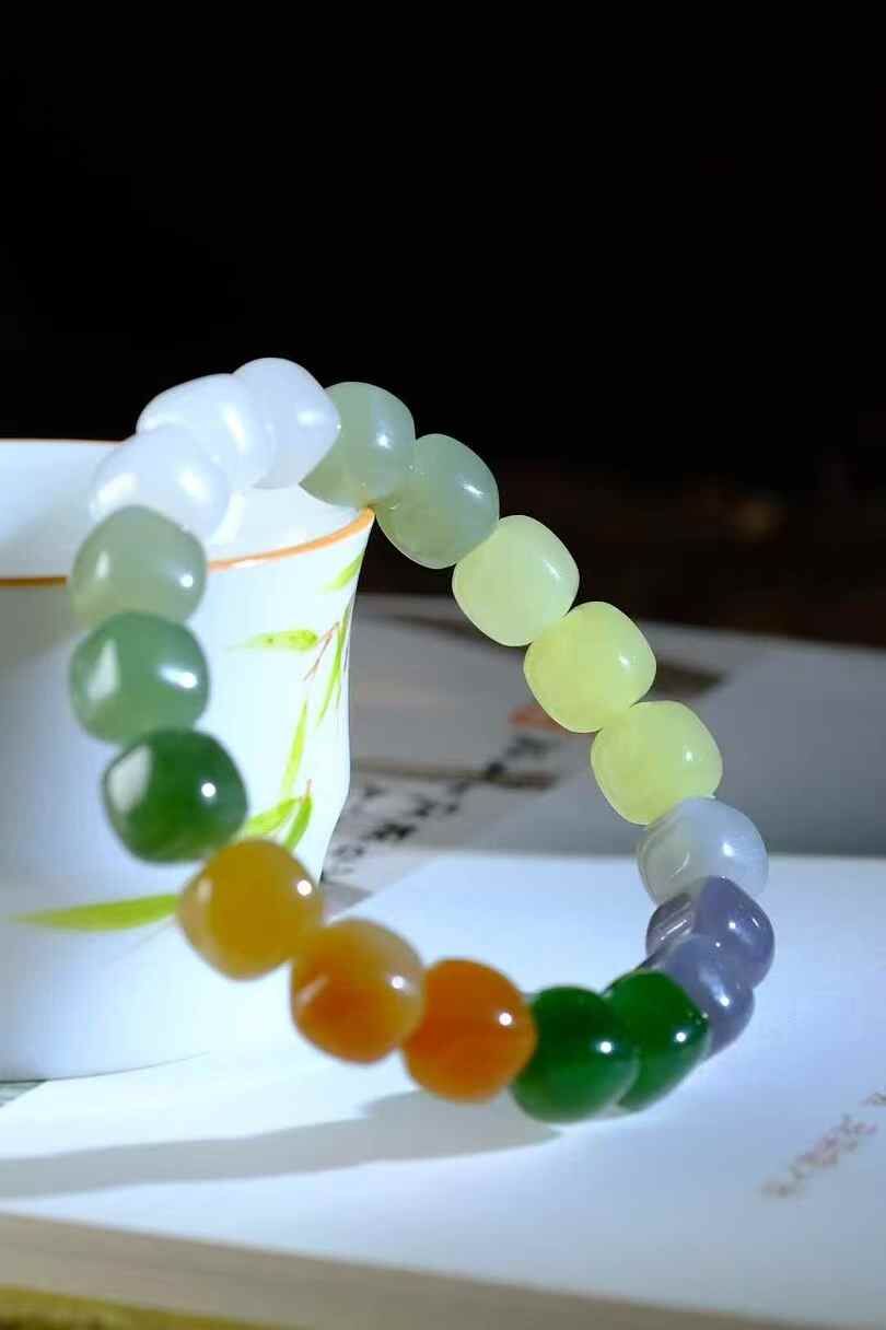 天然和田玉,臨江之畔璞石無光,千年磨礪溫潤有方,天上彩虹,人間多寶方珠,手腕上的虹光璀璨。