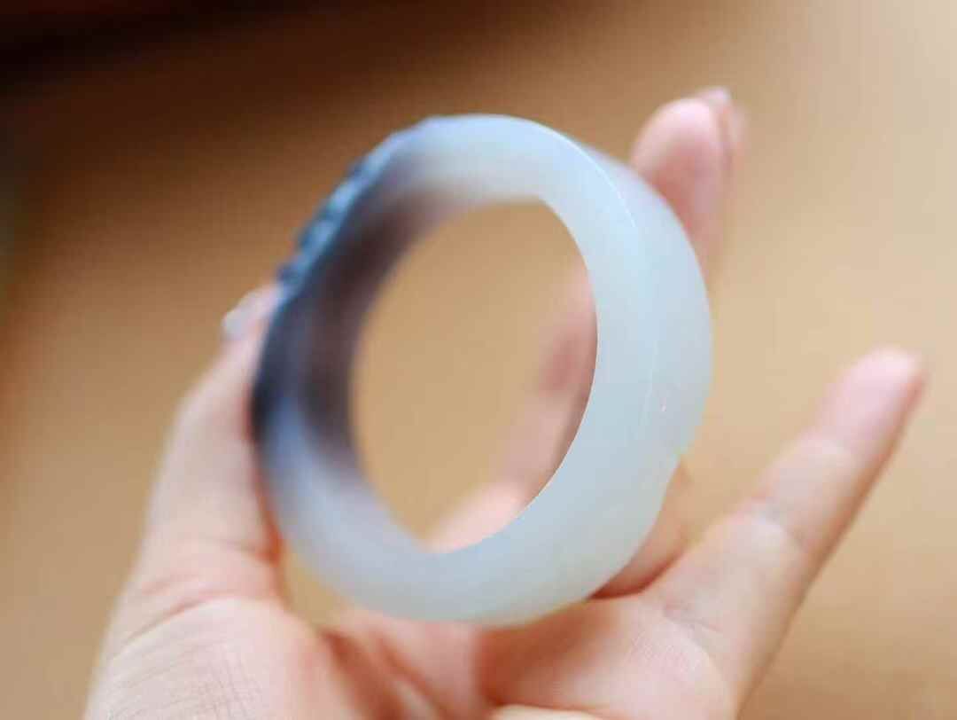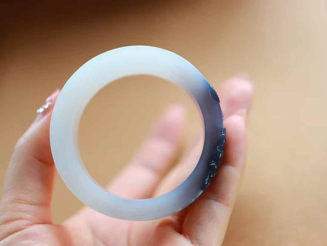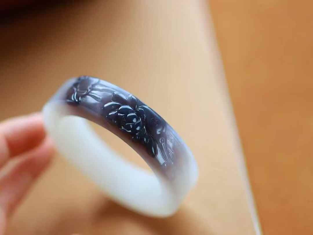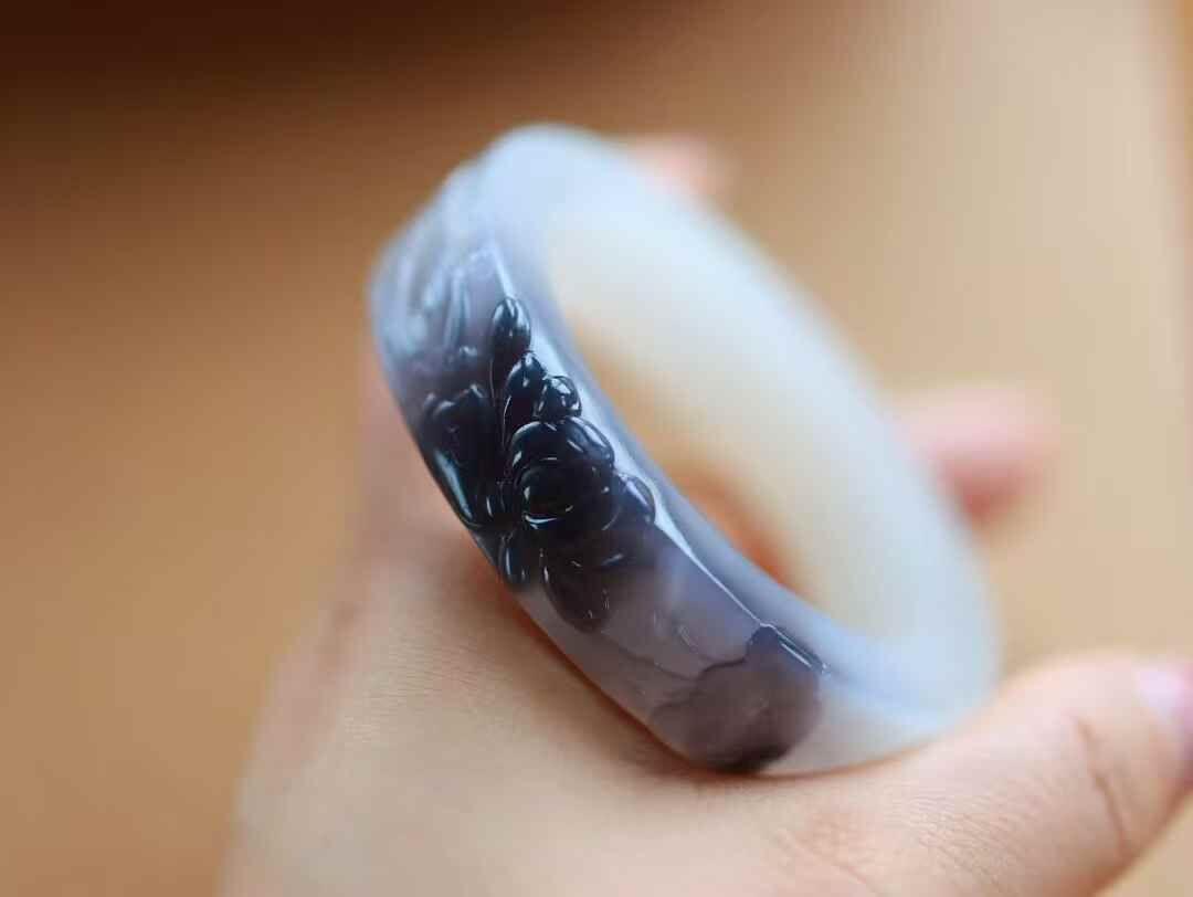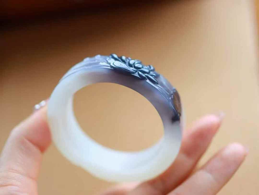 • 和田玉煙紫白蓮花手鐲,天然和田玉軟玉