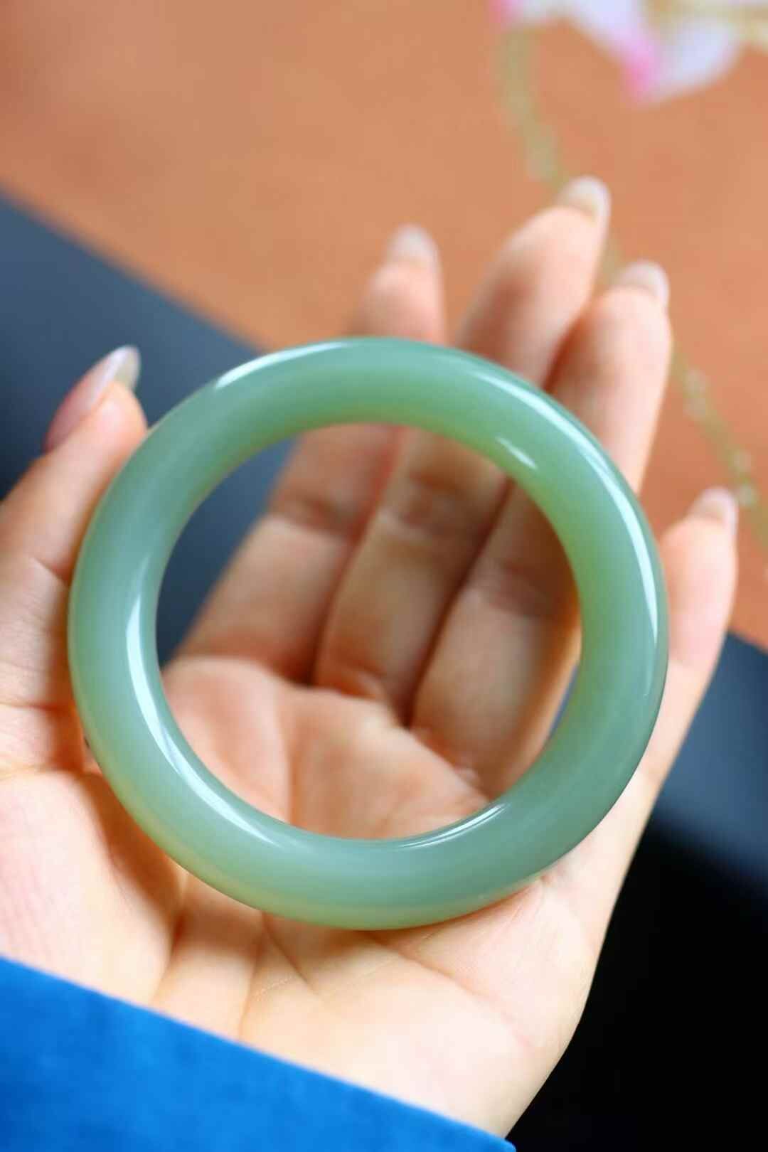417720 55mm和田玉冰底晴水圓條手鐲