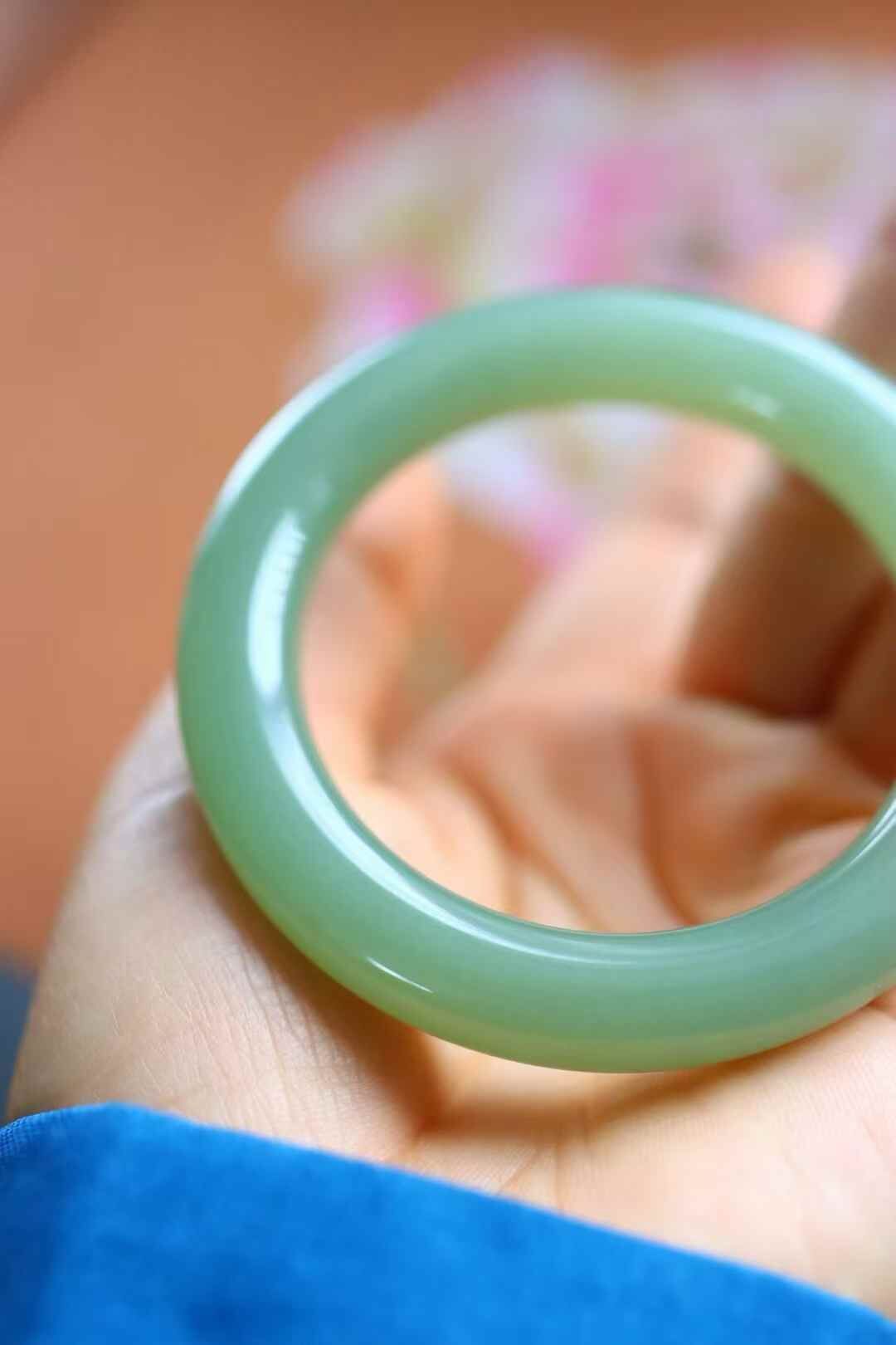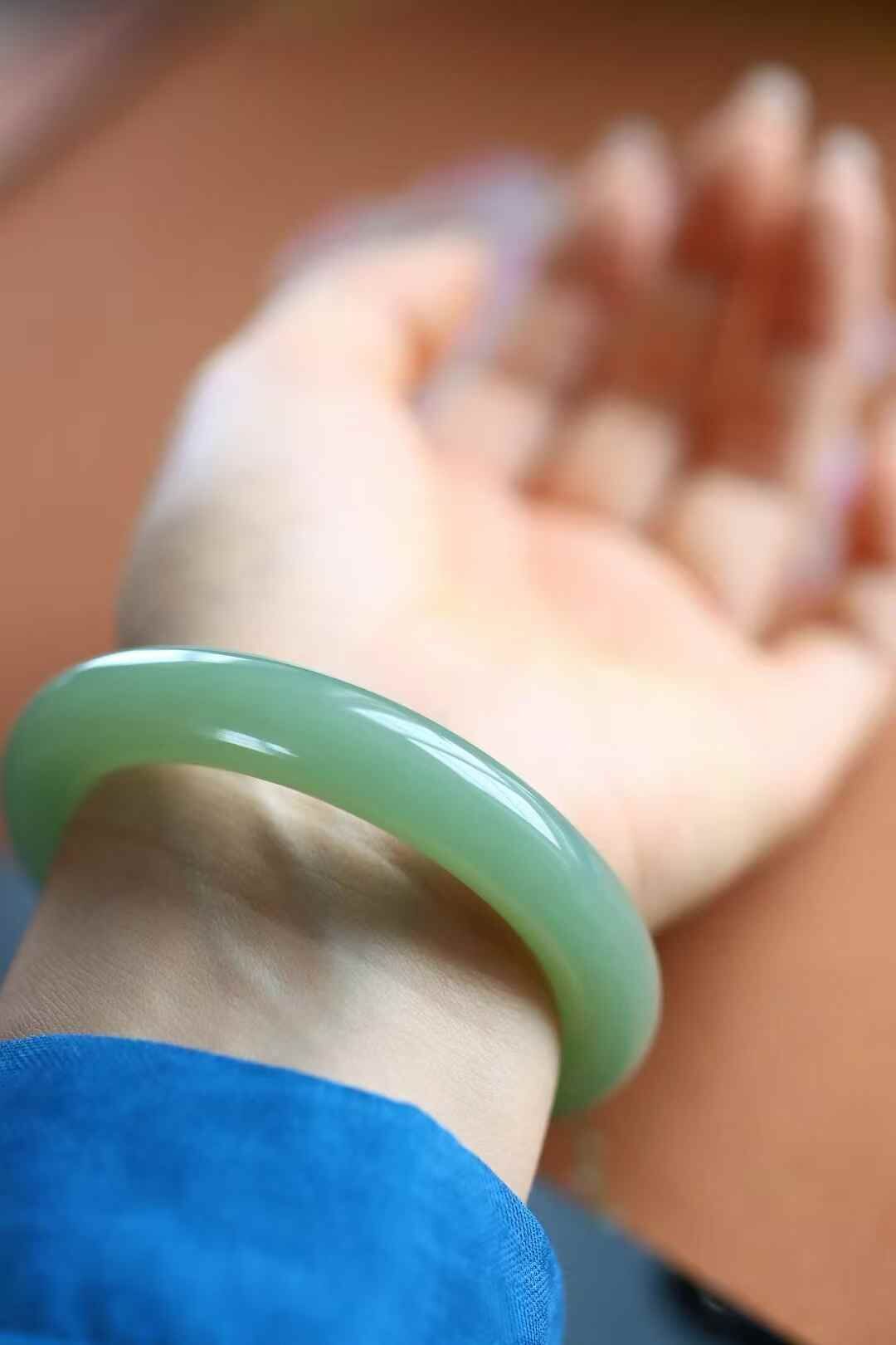 • 和田玉冰底晴水圓條手鐲,天然和田玉軟玉