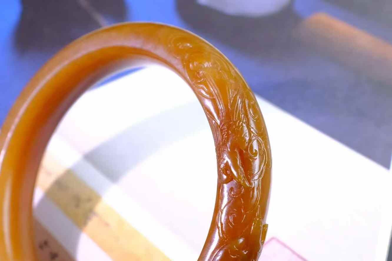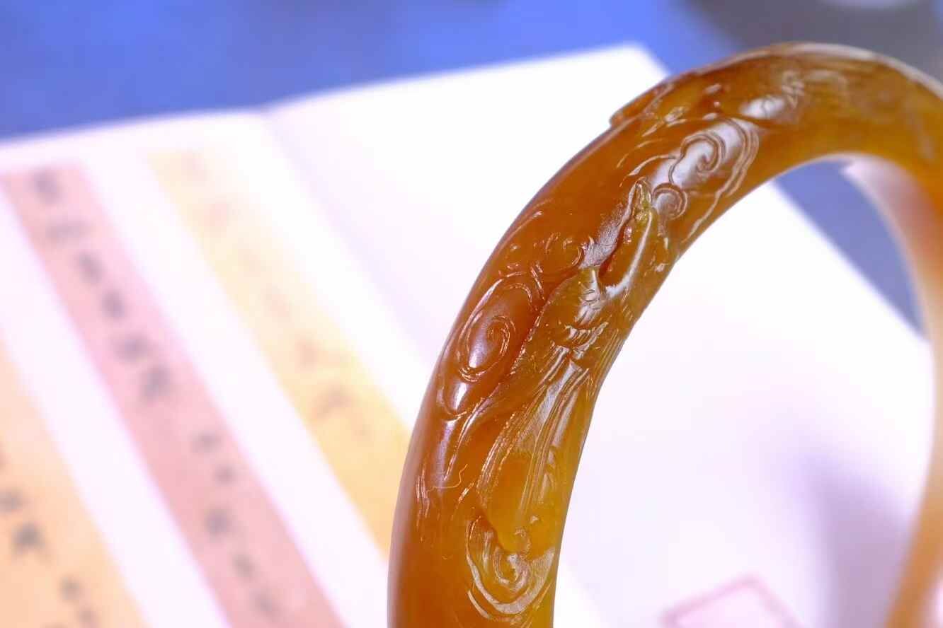 天然和田玉,臻品柔光新疆且末糖白手鐲,原創手工淺浮雕報喜鳥,油潤細膩,勾勒祥雲,動靜相宜。
