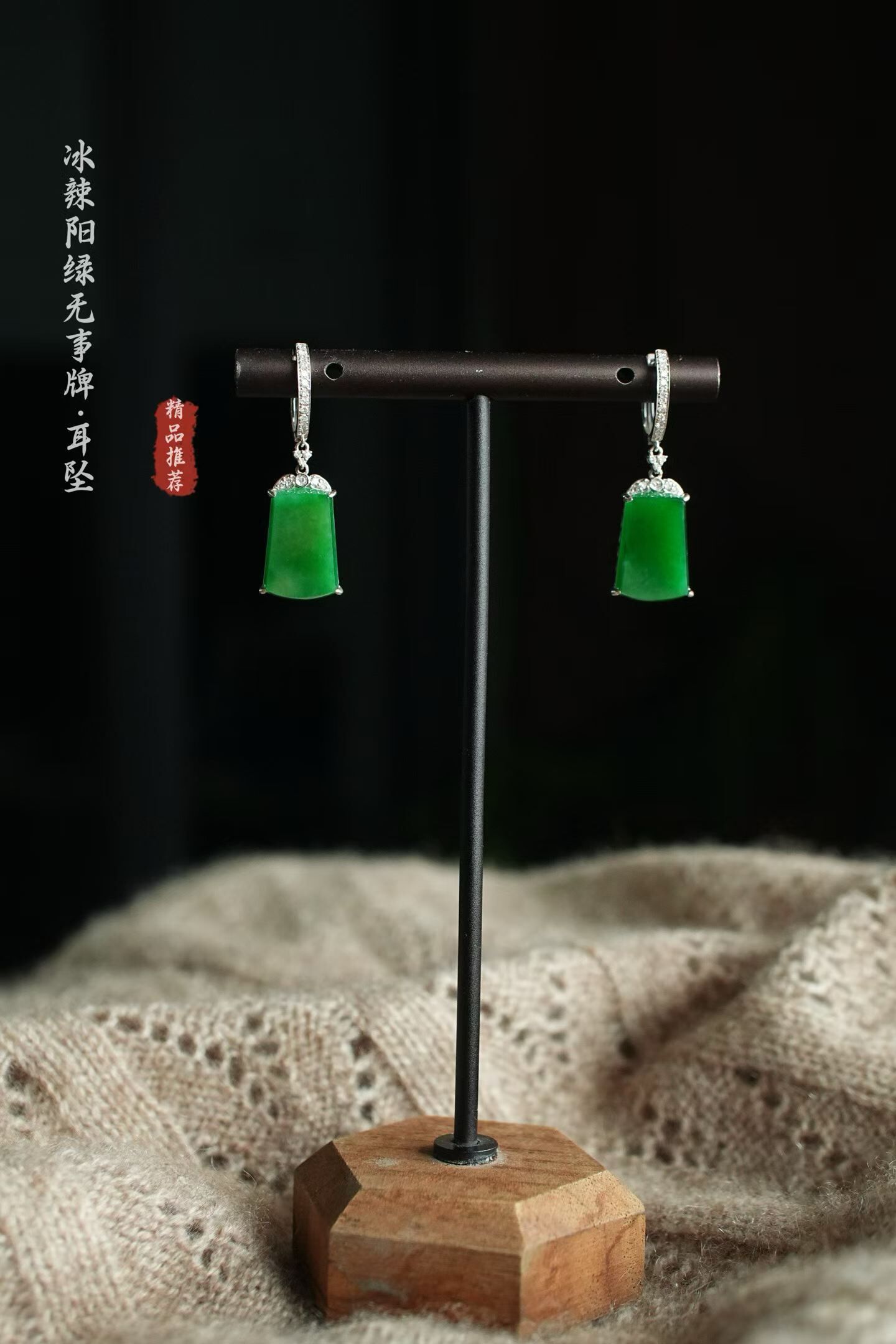 417833 翡翠冰辣綠無事牌耳墜