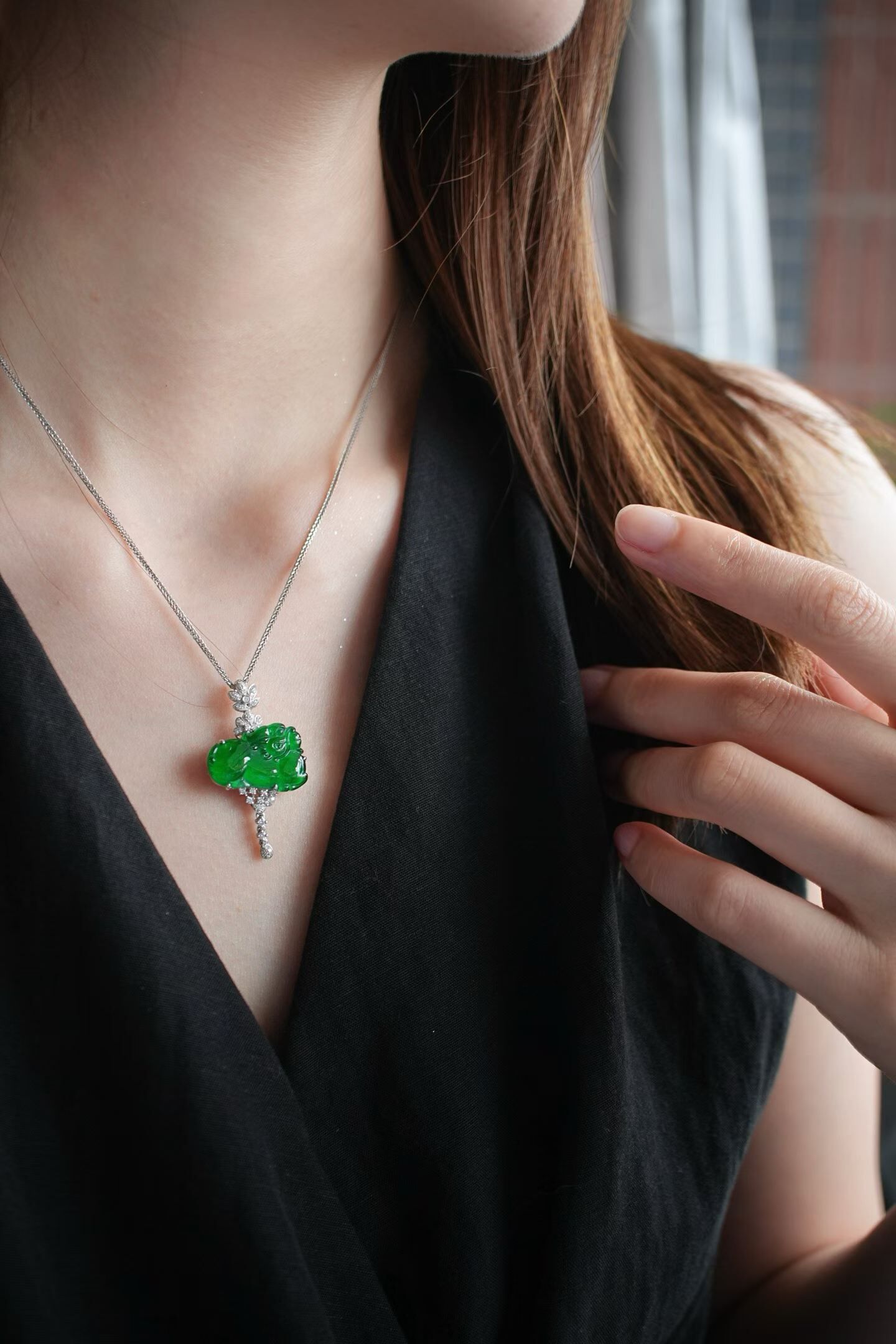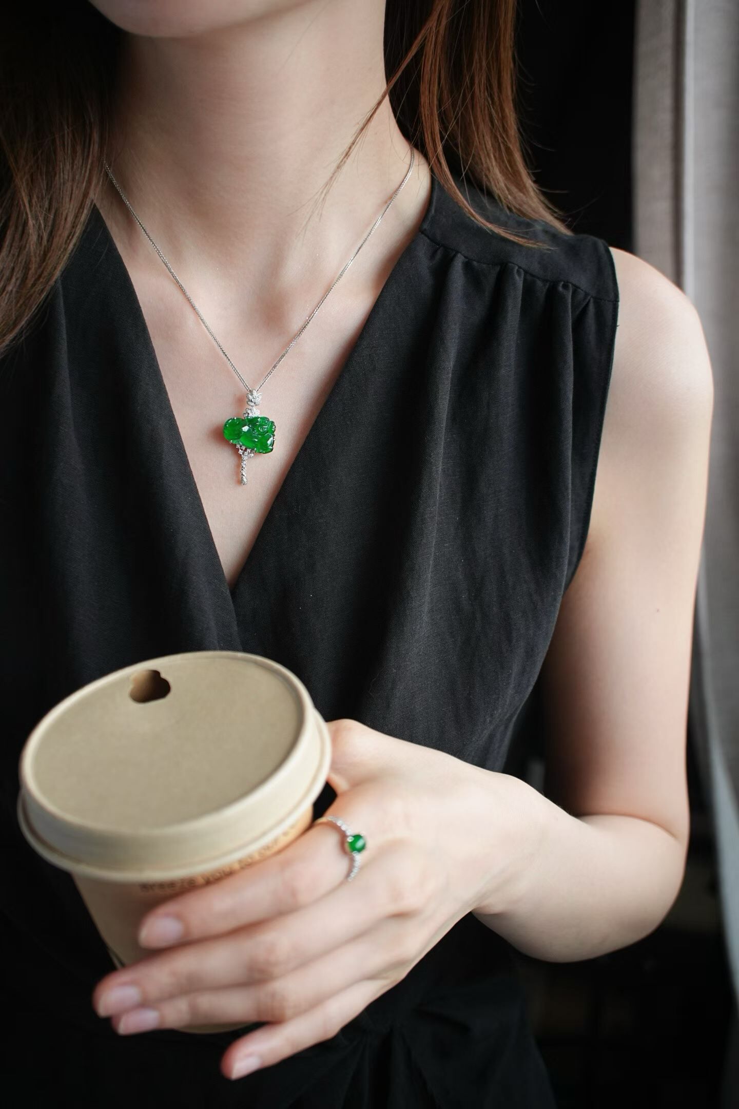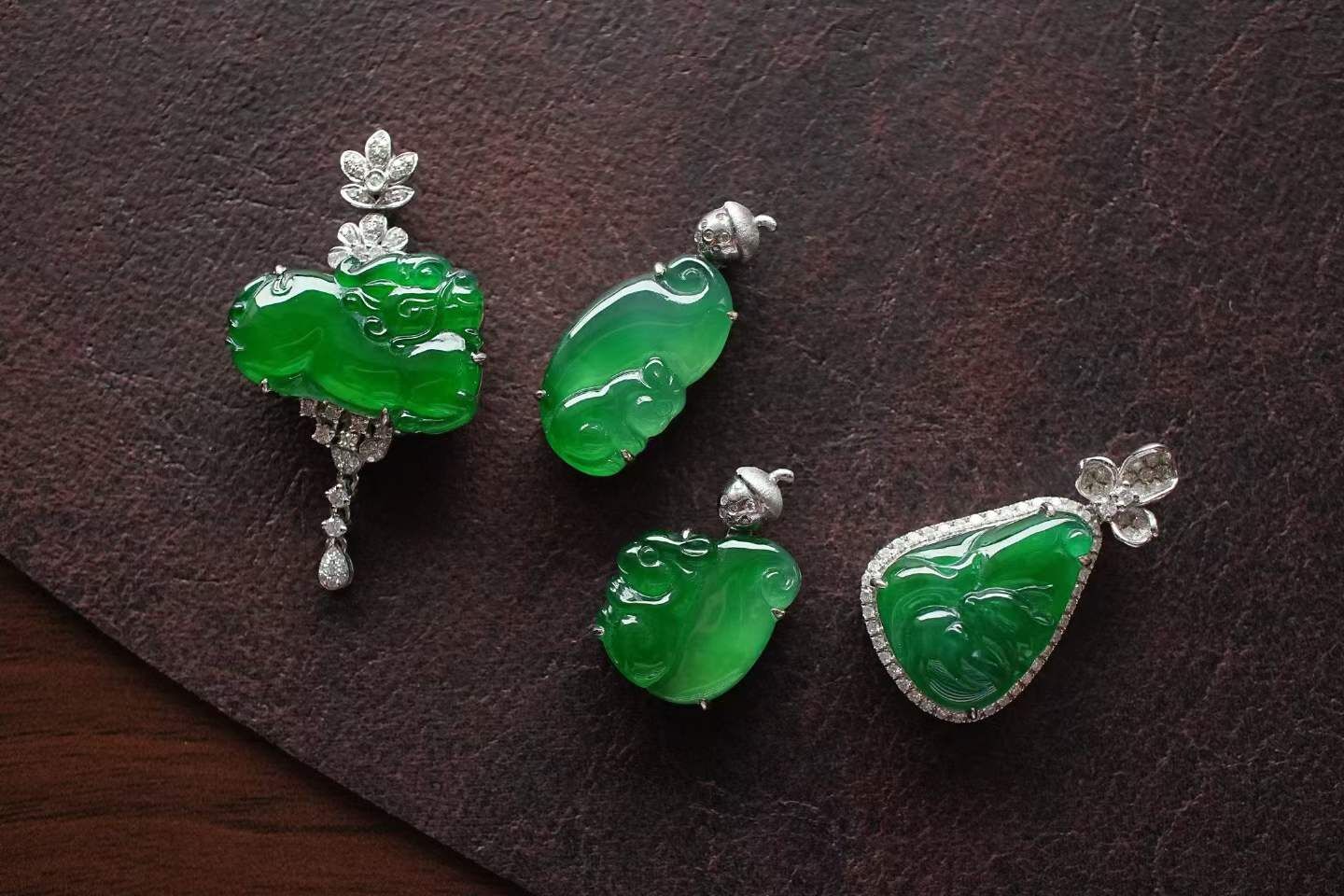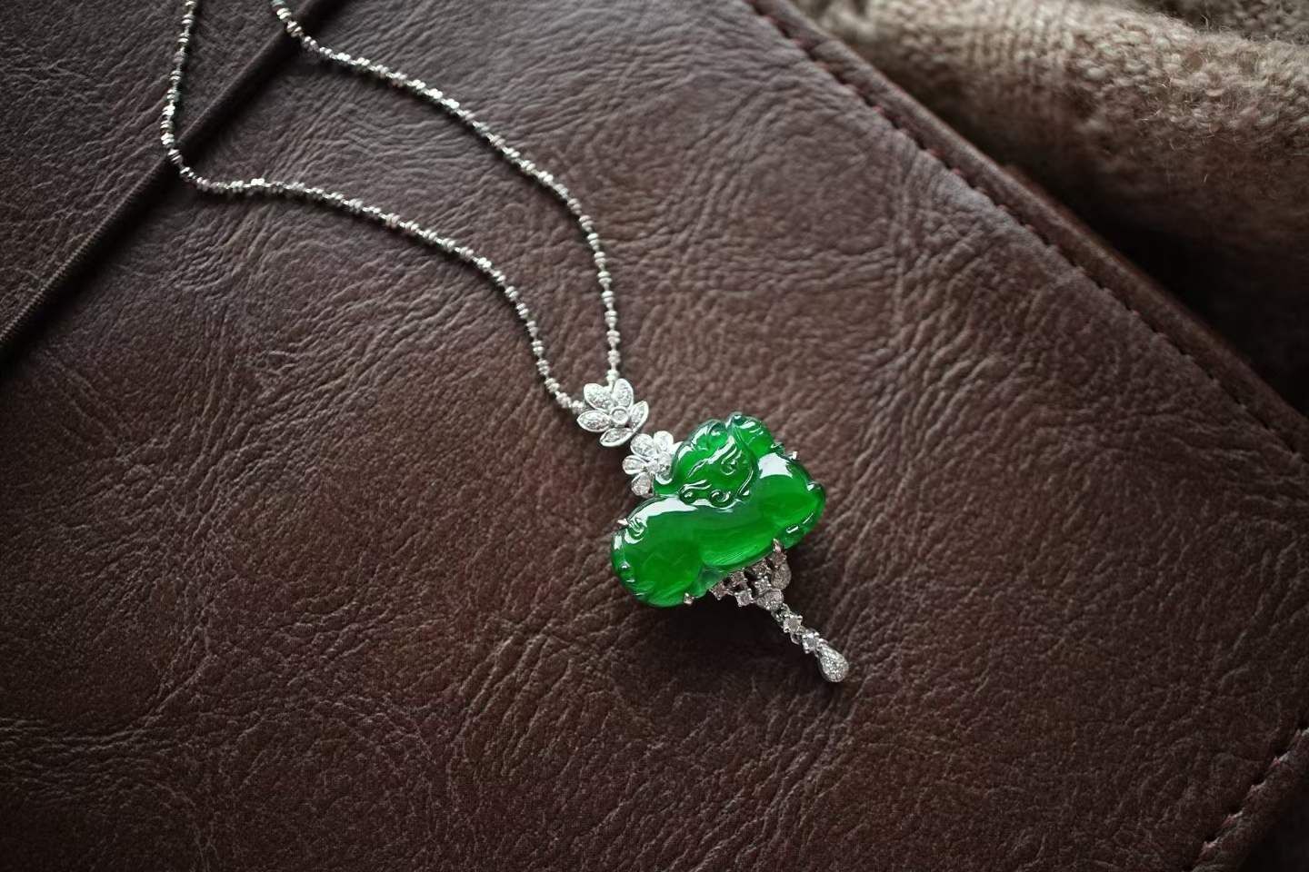 天然翡翠A玉,高冰種辣陽綠,種色俱佳,色濃郁辣陽,水潤冰透,整體呈現青翠欲滴的感覺,不愧是吸金招財,逢兇化吉的小神獸!