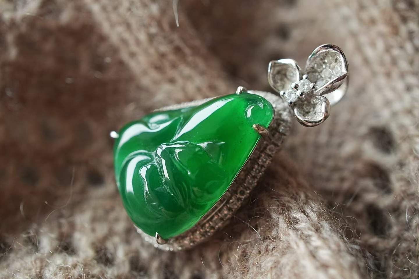 • 翡翠冰辣陽綠松鼠吊墜,天然翡翠A玉, 緬甸玉, Jade, Jadeite