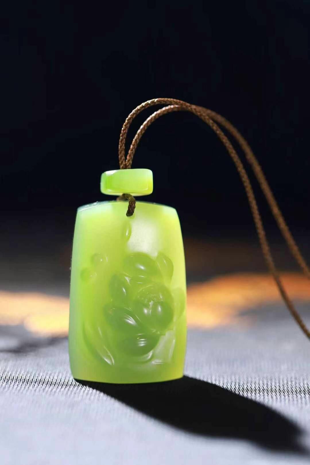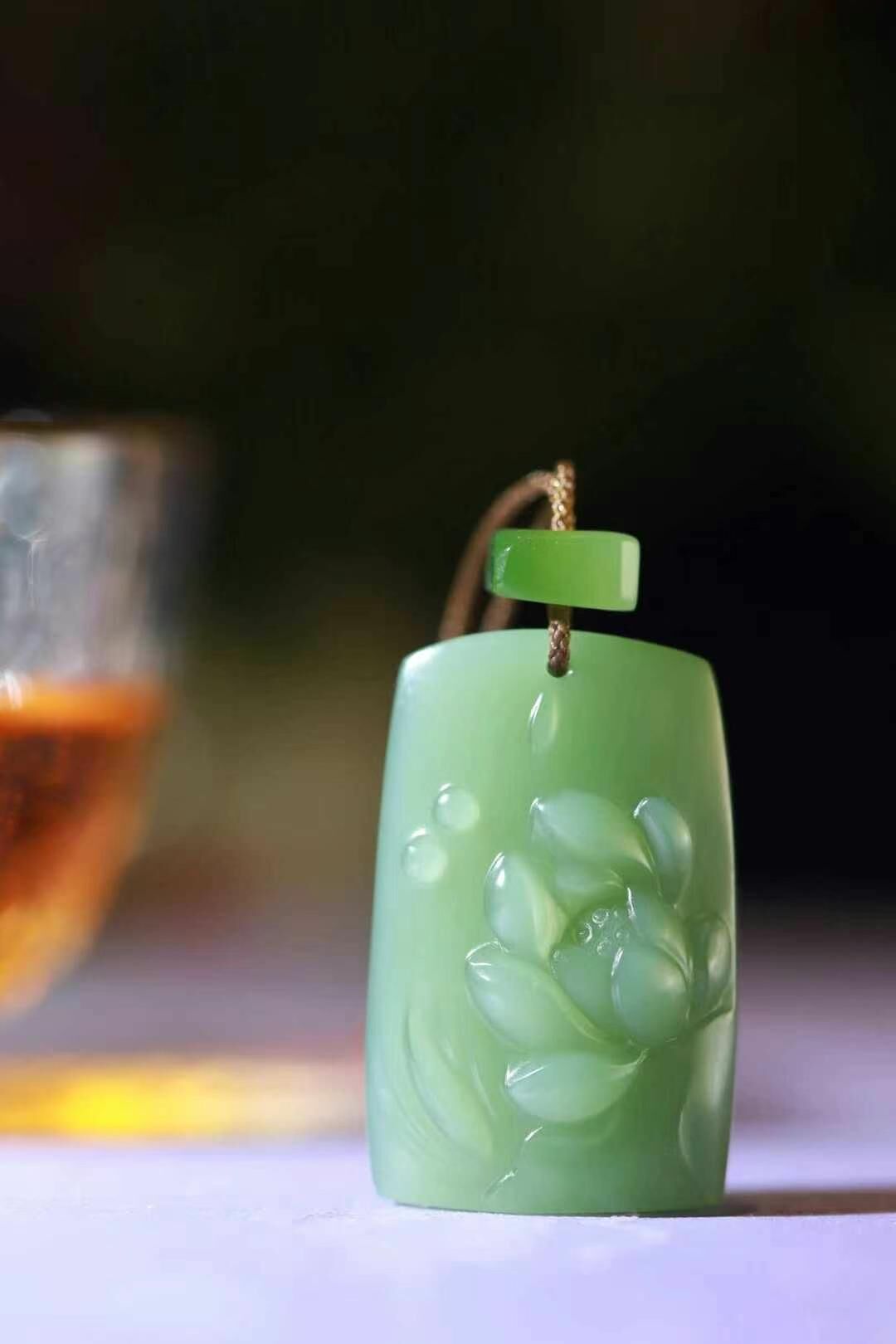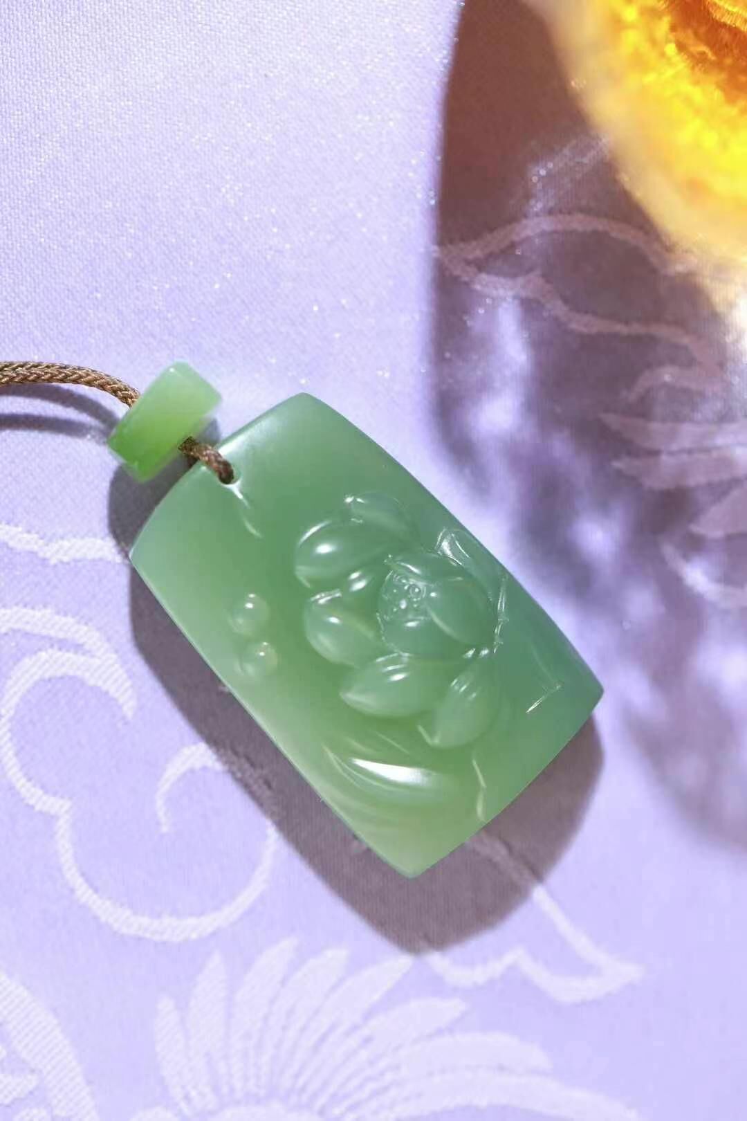 和田玉粉綠冰底碧玉荷花魚牌,一玉成詩,冰底映荷,魚躍清波間,玉質如凝脂,雕工似天成,戴上是溫柔仙氣,收藏是歲月靜好。