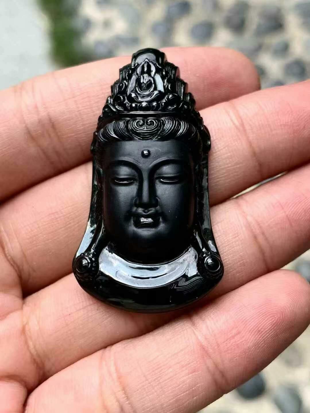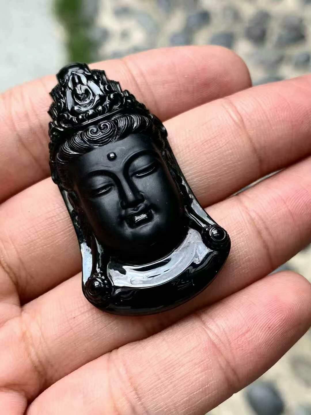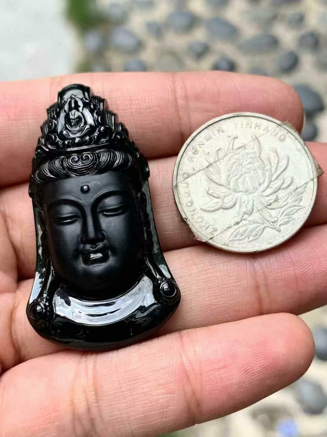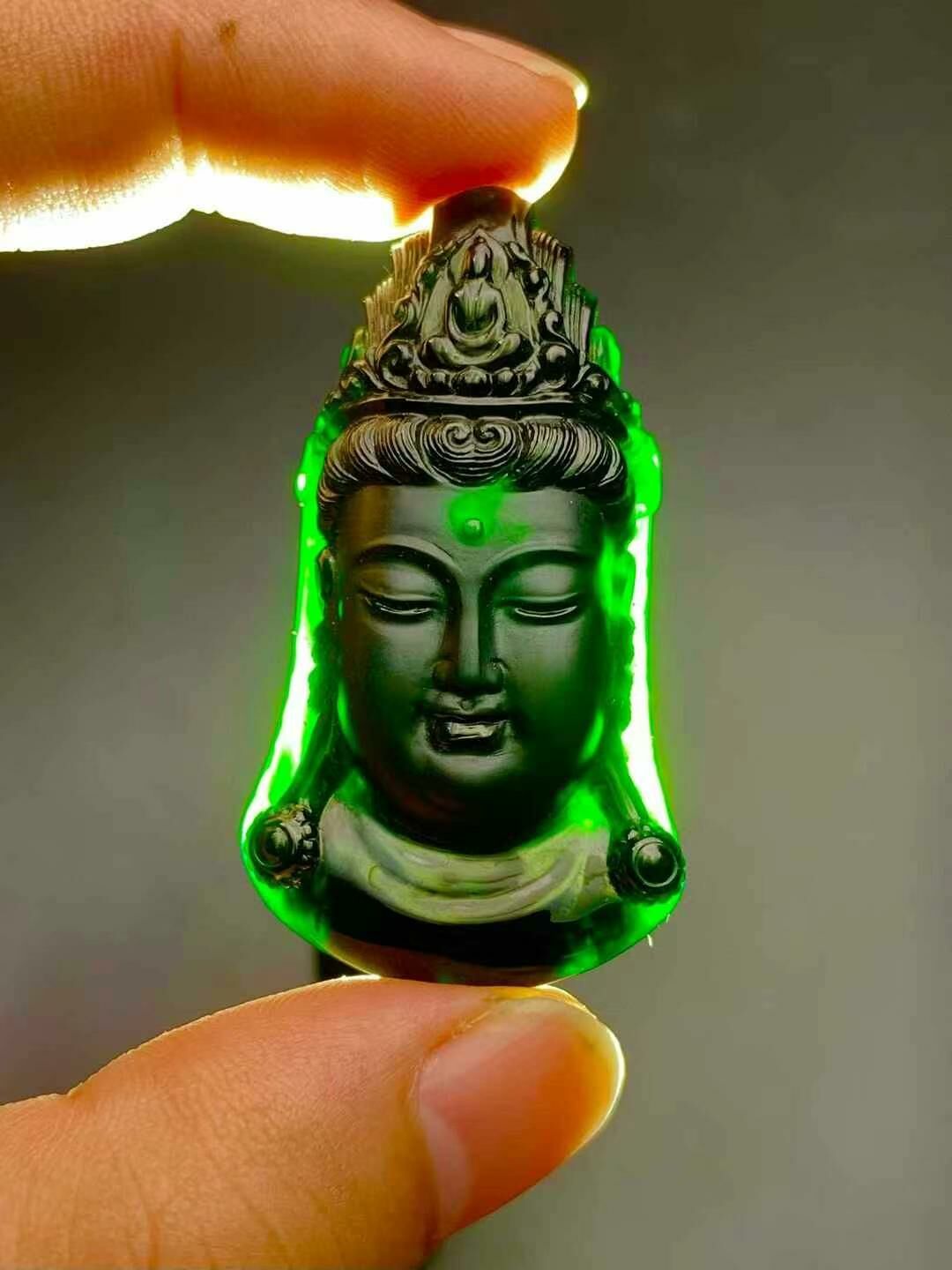 • 翡翠墨翠觀音首,天然翡翠A玉, 緬甸玉, Jade, Jadeite