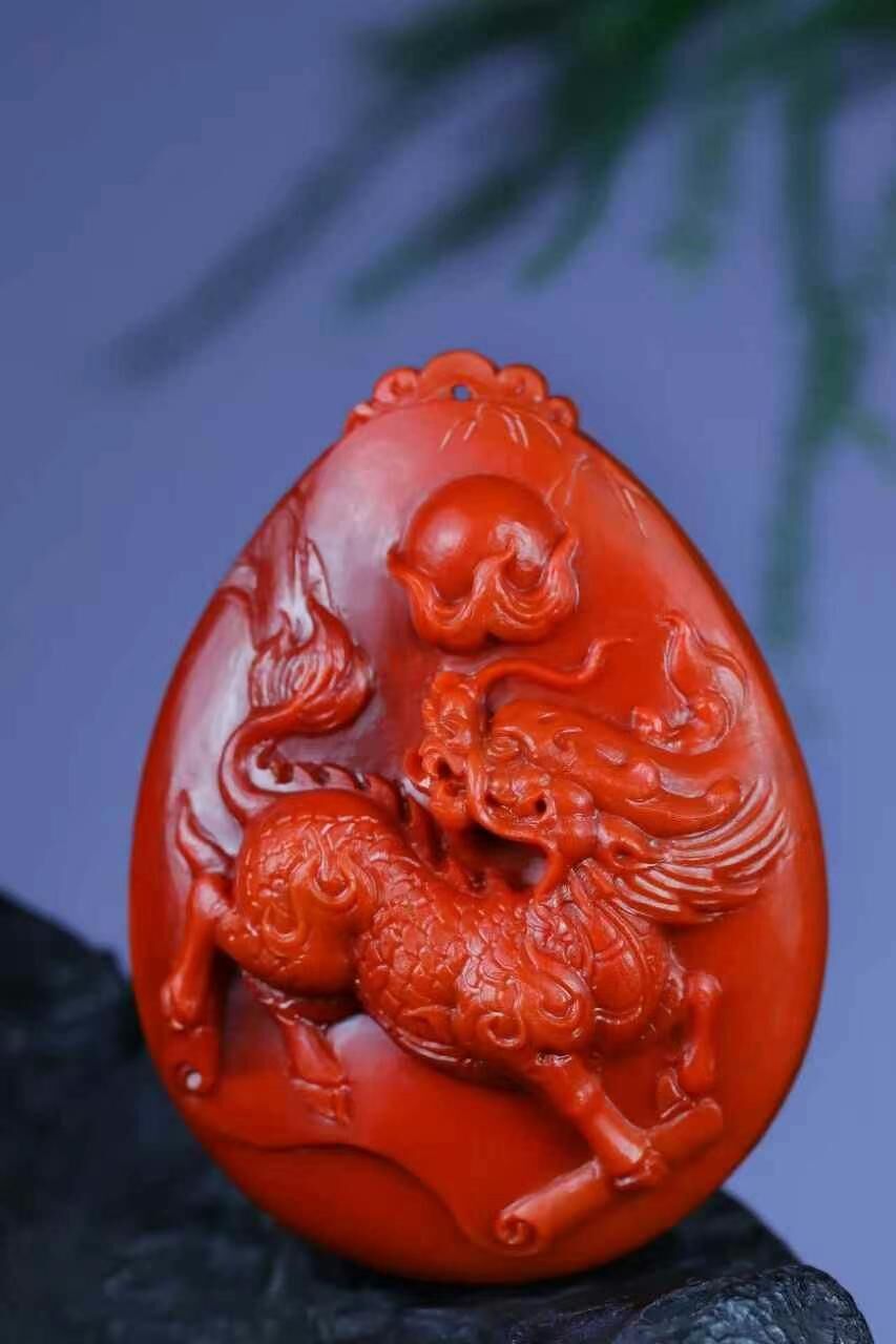 • 南紅麒麟獻瑞,天然南紅瑪瑙