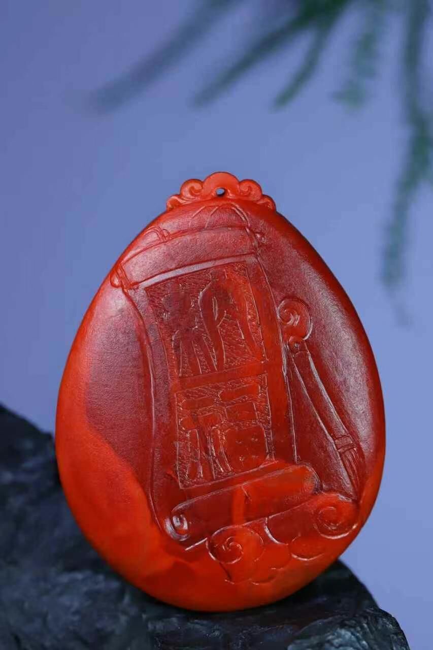 天然南紅瑪瑙,收藏級佳作,極品瓦西老料牌子,🈵️色🈵️肉柿子紅玫瑰紅,色澤紅潤,玉質溫潤細膩,牌型規整大氣,工藝精湛,名師親刀,雕工精湛,技藝超群,線條遊走流暢自然。