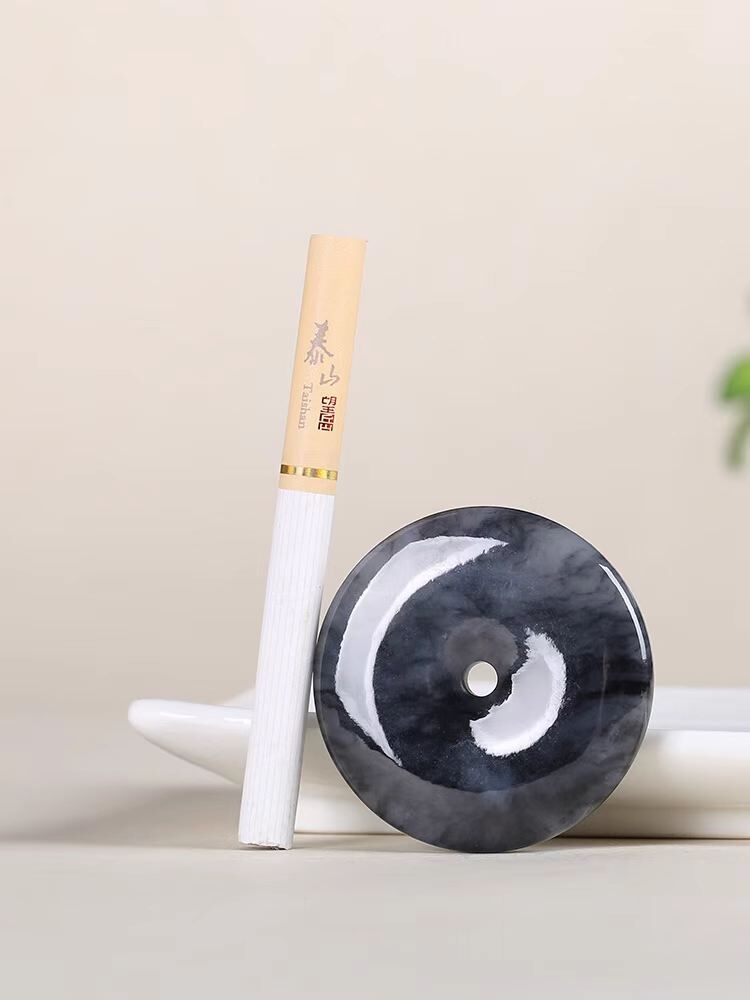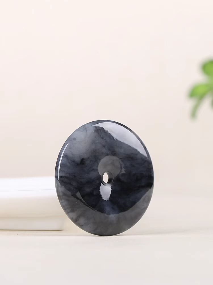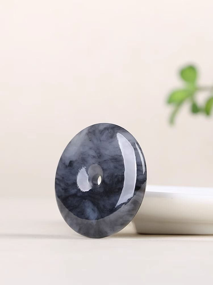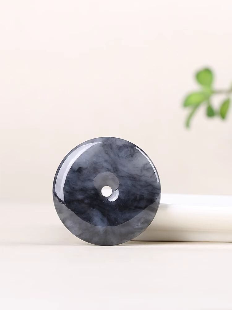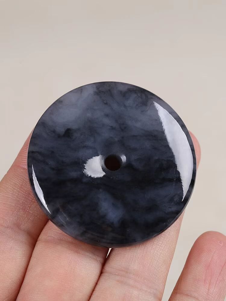 和田玉青花平安扣掛件,玉質瑩潤亮澤,器型圓潤順滑,整器簡潔大方,小小的一枚平安扣,蘊含了整個天地,外圈的圓,象徵著遼闊天地混沌;