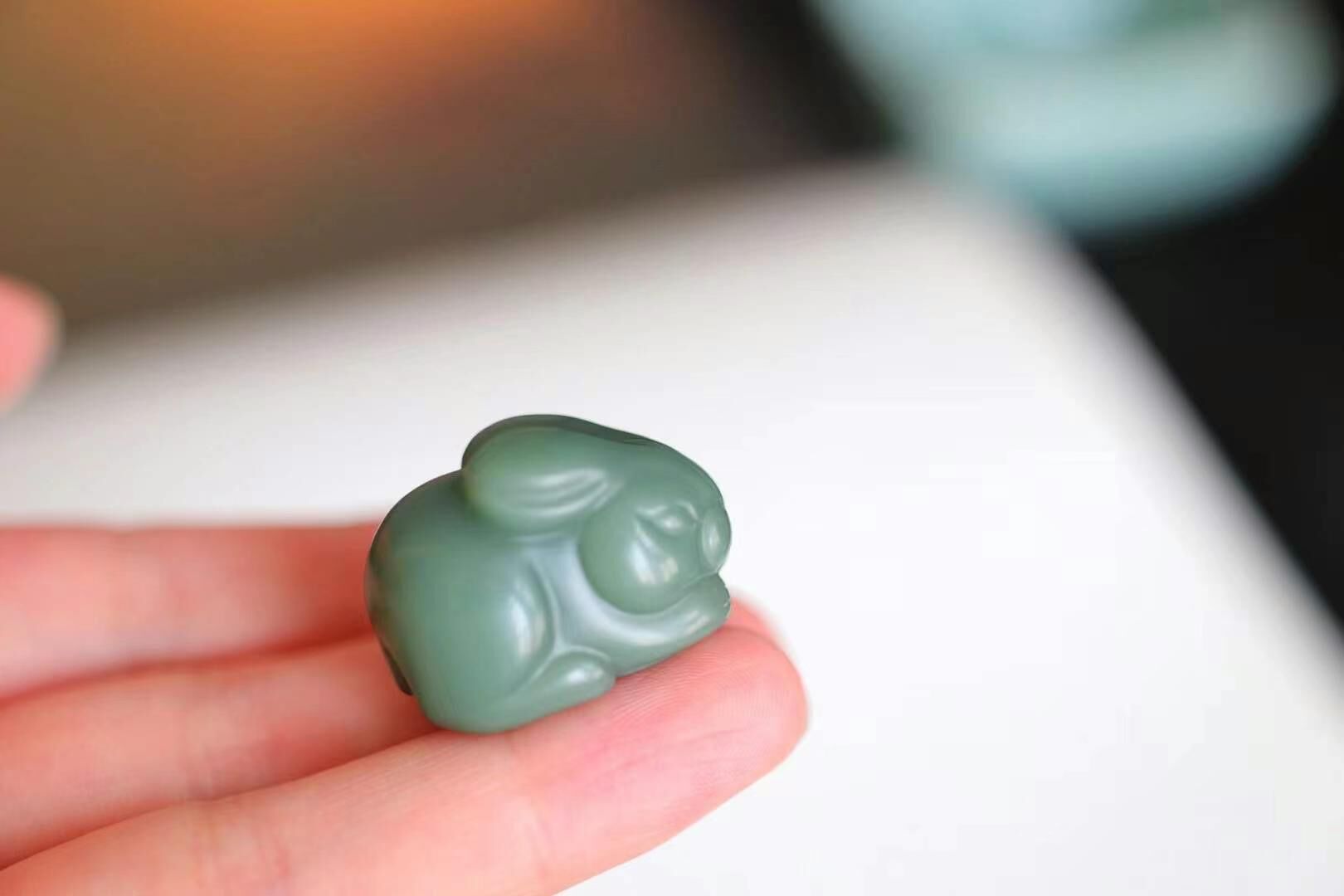 • 和田玉碧玉兔子,天然和田玉軟玉
