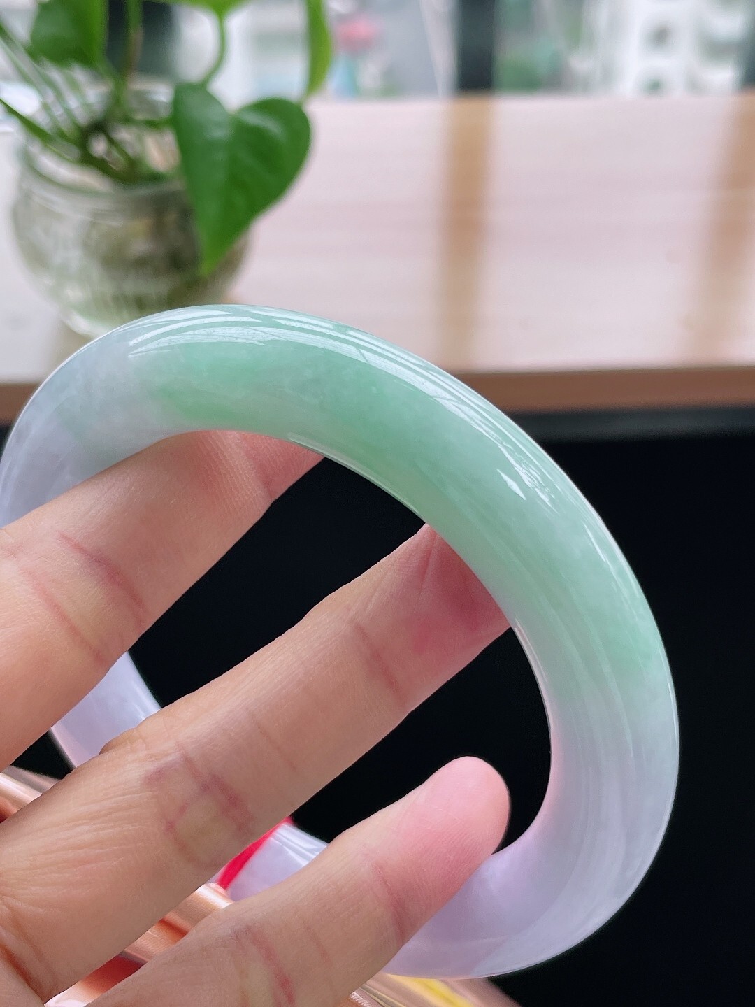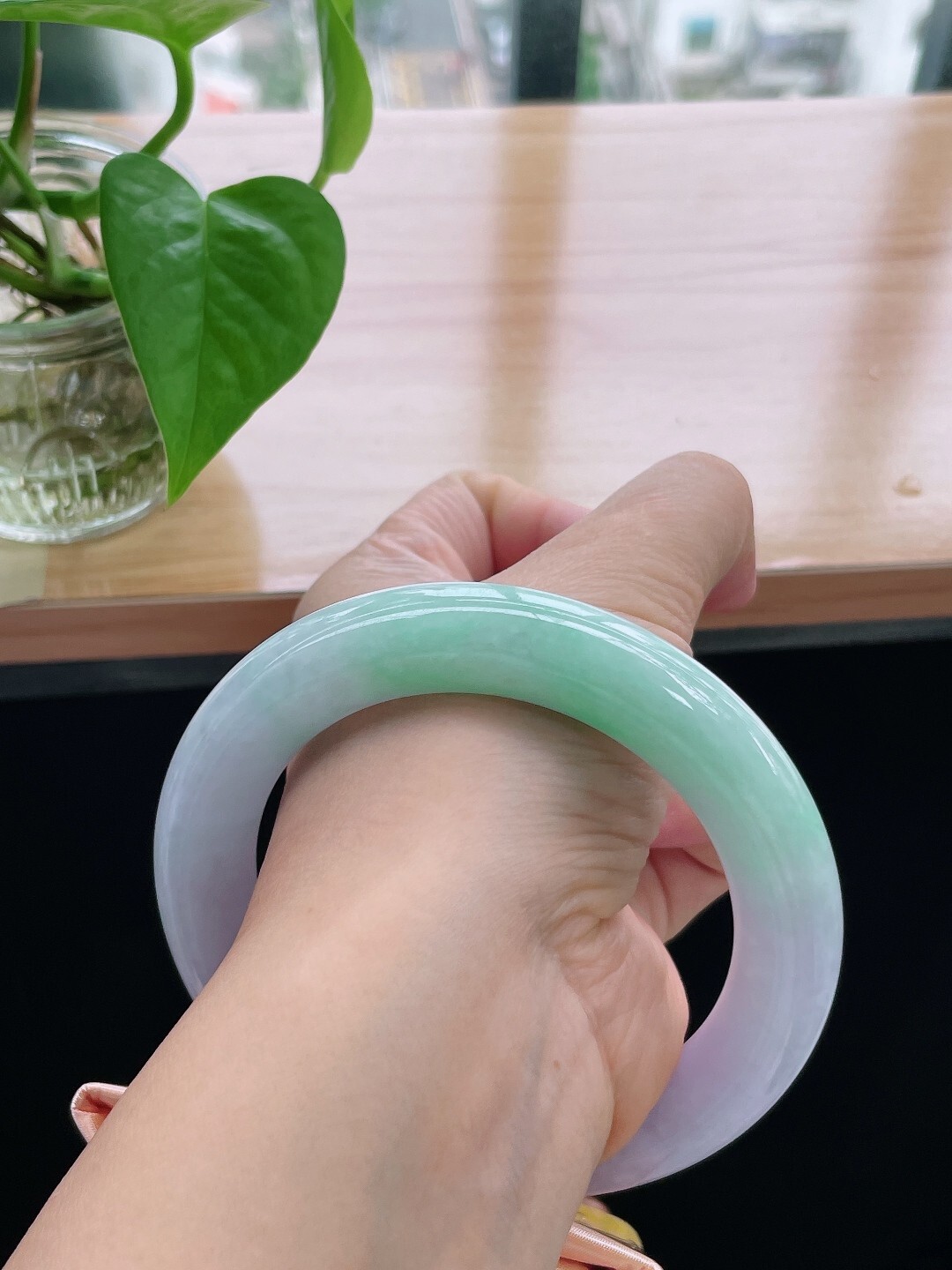 519158 61mm春彩翡翠圓條手鐲 (60-62)
