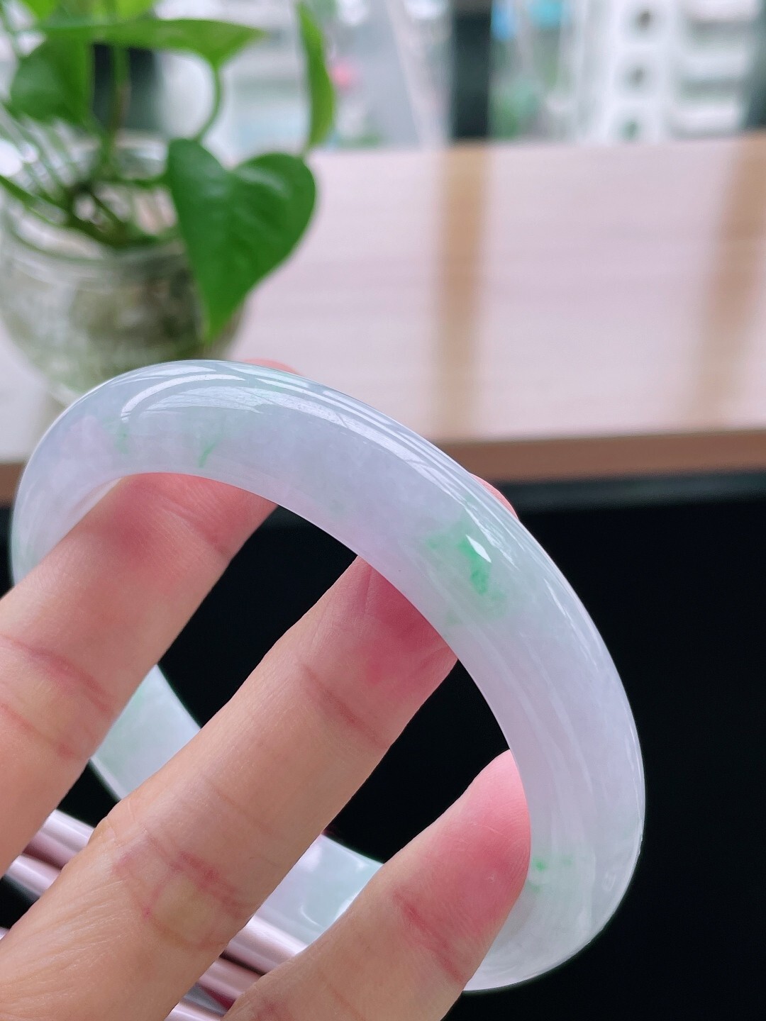 天然翡翠A玉,手圈61/60戴,老坑種,完美,冰潤起光。