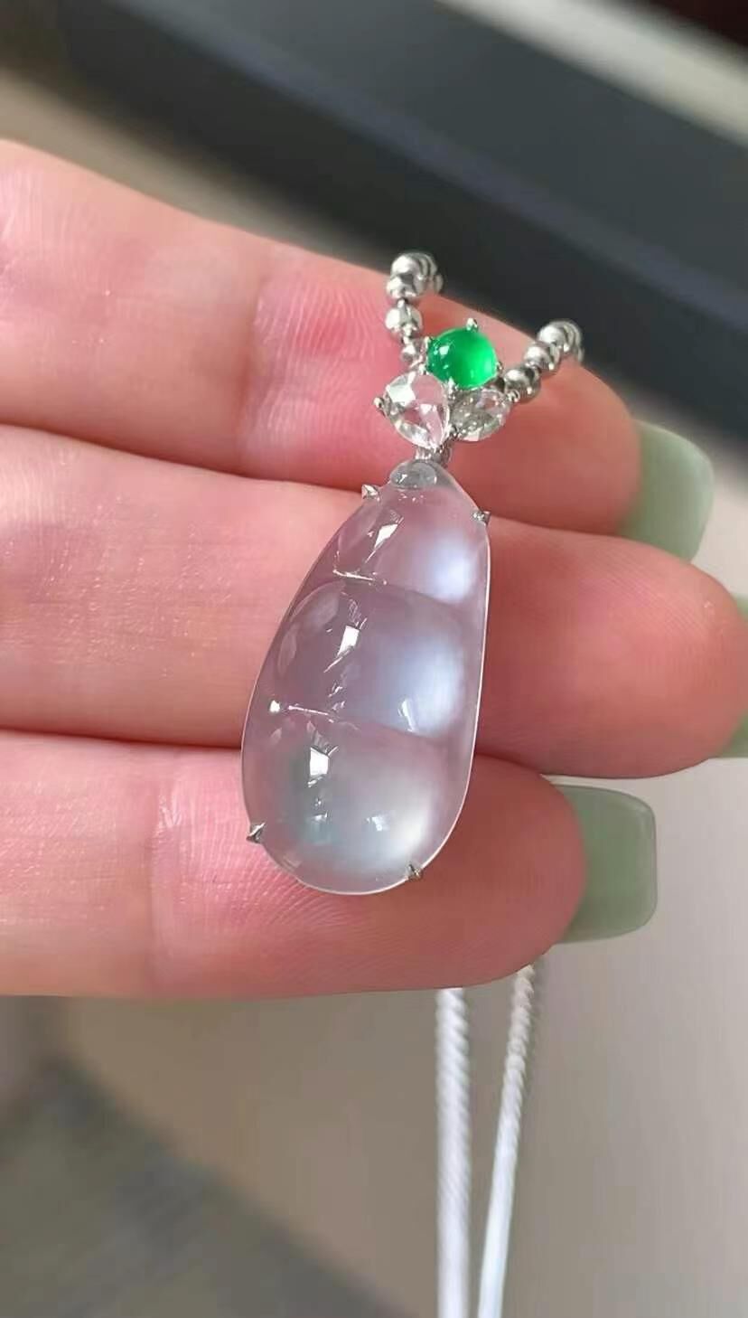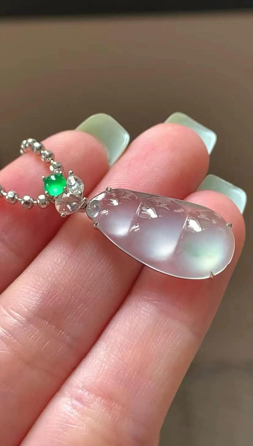 • 翡翠福豆吊墜,天然翡翠A玉, 緬甸玉, Jade, Jadeite
