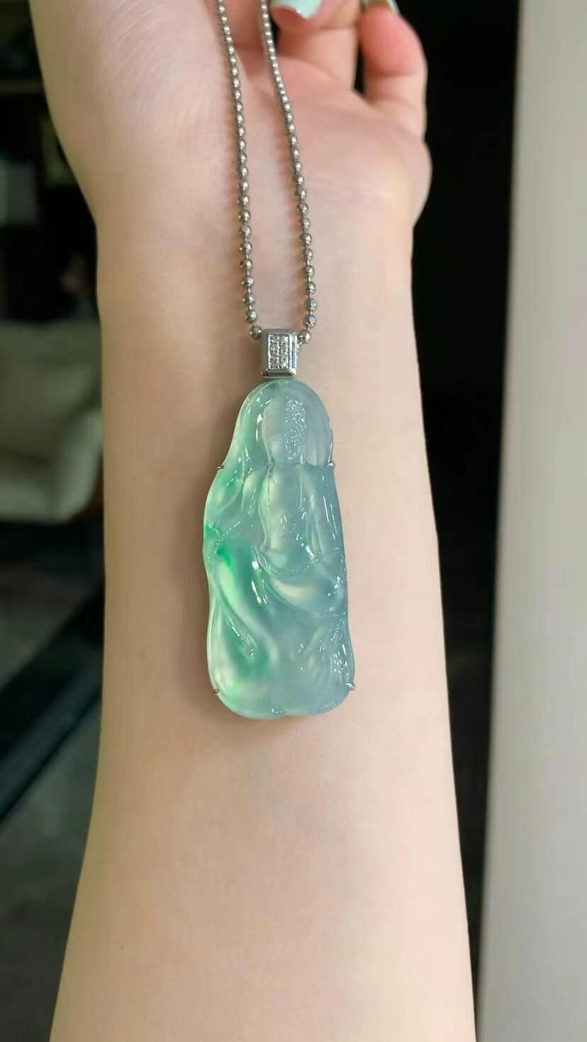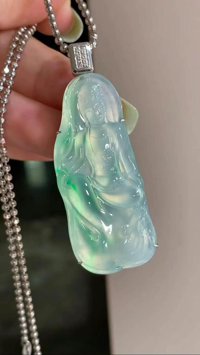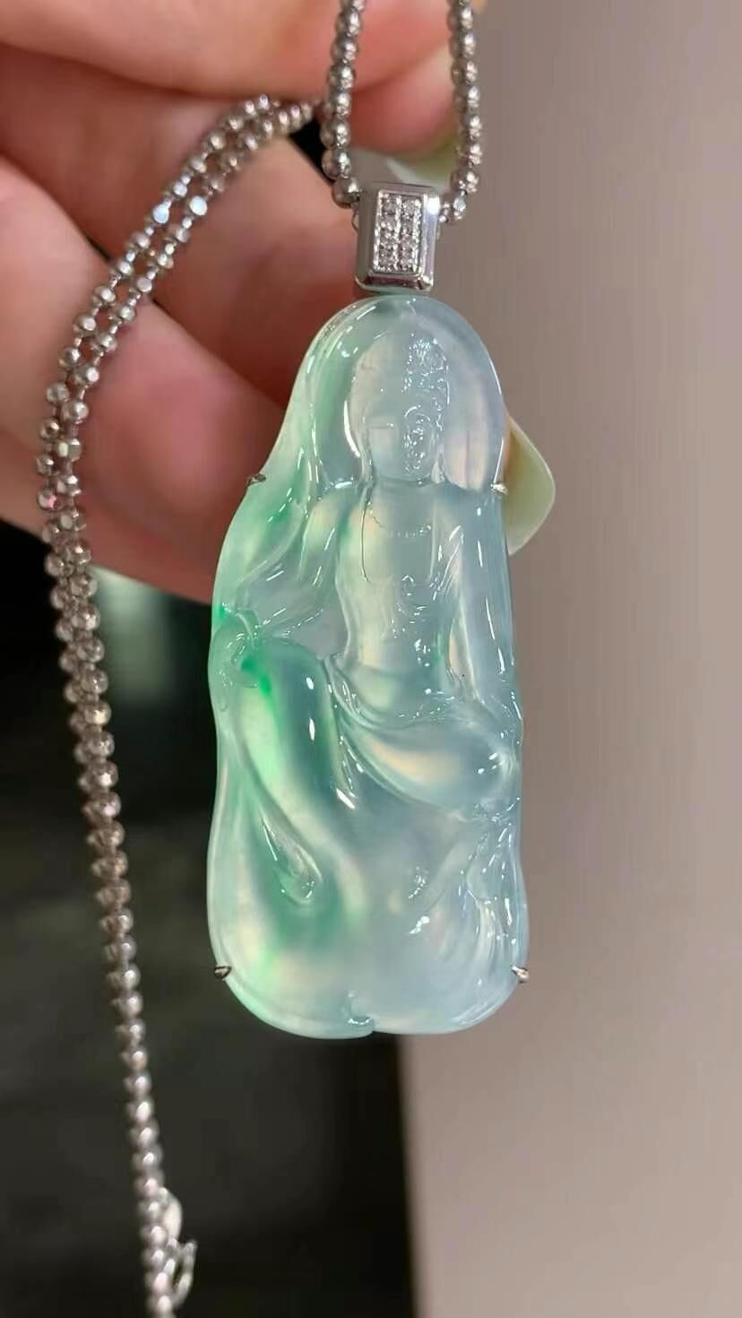 • 翡翠觀音吊墜,天然翡翠A玉, 緬甸玉, Jade, Jadeite